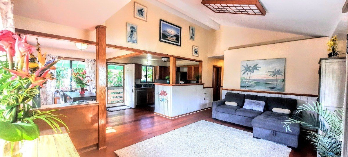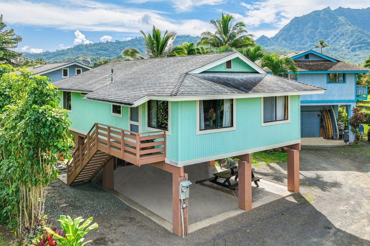 This pretty 3/2 home is nestled in the heart of Hanalei, amidst the epic mountains and waterfalls that the North shore of Kauai is renowned for.