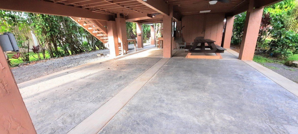 Beneath the raised home, there is a carport, or you could use portions of this space as a breezy, covered lanai for additional outdoor living. (see virtually staged photos).