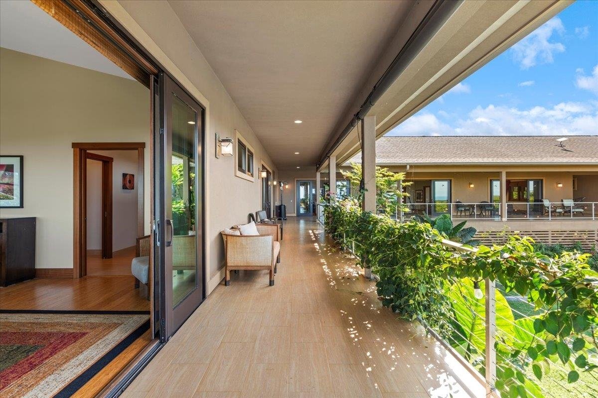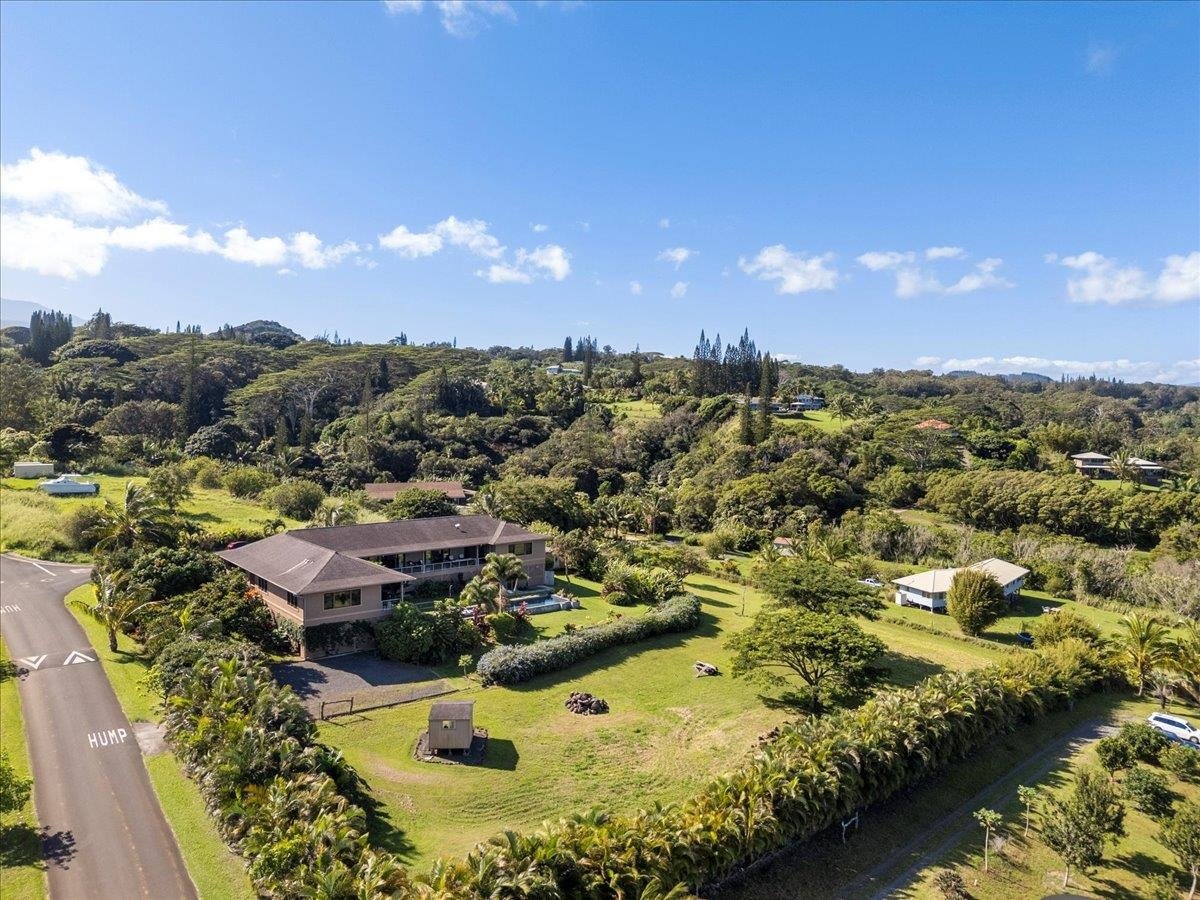 Exceptional Ocean Vistas amidst your tropical paradise estate on Maui's famed North Shore. Affectionately coined, "Hale O Peahi" this expansive custom crafted estate offers unlimited potential on a seamless level on an open facing lanai that flows out to the like-new saline pool and spa. Nestled in the highly desirable and exclusive Peahi Hui Land Subdivision on Maui's breathtaking North Shore. This expansive single-family residence offers a tranquil, elevated retreat on a generous 2-acre estate blessed with stunning ocean and mountain views from this exceptional gated estate.Hale O Peahi offers sophisticated single-level living with exceptional privacy and views. Boasting 3,576 sq ft of living space, the home features 4 bedrooms, 2.5 baths, and “pod” style architecture interconnected by covered breezeways and an expansive covered 1576 sq ft lanai. The center pod includes the open-concept gourmet kitchen, dining, and living areas — all flowing seamlessly to the outside lanai. Plus a versatile room ideal for an office, gym, theater room, or guest suite. The master suite is elegantly tucked into its own wing, offering sweeping ocean and mountain views The luxurious spa-style bathroom has a vibroacoustic therapy deep soaking spa tub, and just outside is a luxurious tropical shower. The bathroom is a generous open area featuring a large walk in closet, perfectly situated near the laundry room. The guest wing features two generous guest suites, each with expansive walk-in closets, and a well-appointed spacious bathroom. The guest wing provides comfort and privacy, with open lanai views to the ocean and the pool. Designed for effortless living, the home features 50+ smart lightbulbs and Alexa hubs, giving you full voice-activated control of the lighting in every room. Step outside to your own private oasis, featuring a heated salt-water lap pool with motorized cover, a jetted spa, and a bubbling fountain—perfect for relaxation or entertaining. The fully fenced grounds showcase lush Zoysia lawns, a raised-bed garden, mature tropical fruit trees, and prolific apple bananas, offering the delight of fresh-picked fruit anytime. A quarter-acre of pasture with two charming resident goats, this property captures the essence of country living. Enjoy prime potential for a 1,500 sq. ft. second dwelling, or envision an AG barn with a second story to create expansive, flexible living or storage space. Practical amenities include a workshop/garage, storage space, a