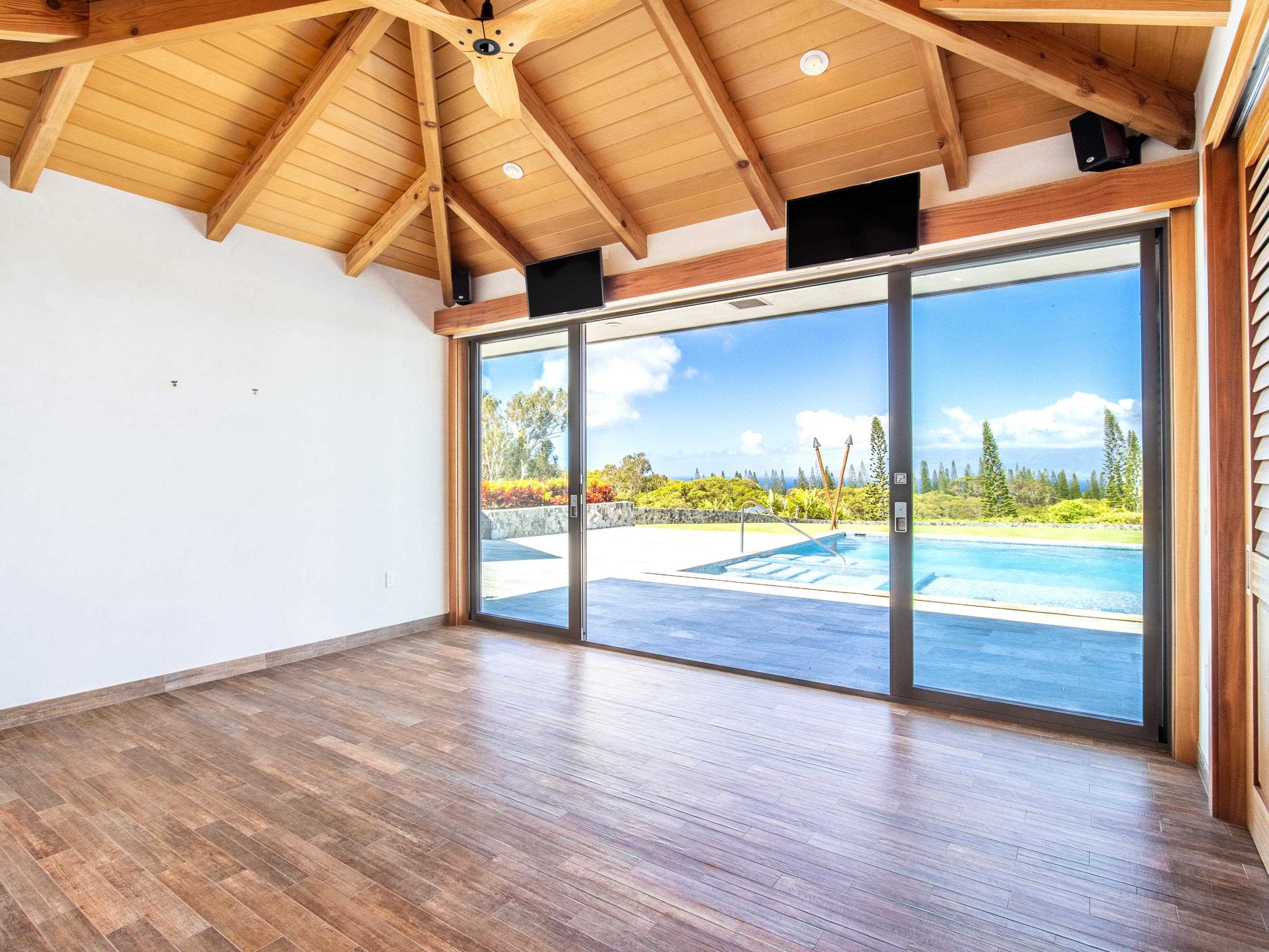 No expense was spared in this immaculate contemporary Hawaiian agricultural estate on over 6.6 acres in one of Hawaii’s finest communities. This secluded estate borders two intersecting ravines providing the intimate sanctuary many now crave. The perfectly natural setting has a private panoramic ocean and sunset view with Molokai providing the backdrop. The hallmarks of this spacious, impeccably finished, 4-bedroom single-level retreat is the meticulous attention to detail throughout, including Madagascar Lemurian and Volga Blue granites, European interior and exterior porcelain flooring and a showcase of wood accents including teak and mahogany giving this home its contemporary yet Hawaiian character. This superior quality home has steel reinforced concrete exterior walls, Fleetwood doors and windows with laminated impact resistant glass, deep overhang entertaining lanais, an oversized pool and spa and a four car garage. A distinguishing feature of the award winning landscape design is a large sustainably maintained orchard with mangoes, avocados, oranges, tangerines, lemons and other delicious fruits. The property is powered by a wholly-owned 132-panel solar system. It is within the Kapalua Resort, and The Kapalua Resort Club offers access to the resort’s world class amenities including two championship golf courses (including The Plantation Course, home of the PGA Tournament of Champions), the award winning Spa Montage, The Tennis Garden, and the Beach Club, among other amenities.
