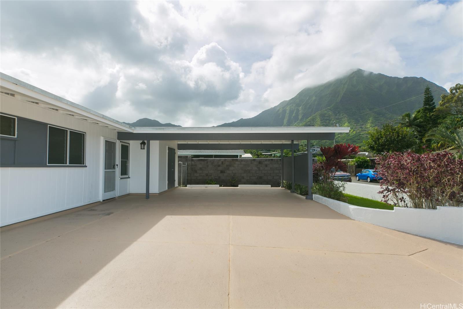 This single level home of 4 bedrooms and 2.5 baths in Maunawili is located on a quiet and private cul-de-sac. Gorgeous views of Mt. Olomana and the Koolau mountain range are the backdrop for this neighborhood. A huge driveway allows for you to park more than 4 cars comfortably and possibly even a boat. Upgrades to the house include windows that were replaced in 2020 and a whole house fan installed in 2019 to help cool down the house. Lemon trees, lilikoi, papaya and other fruit trees in the garden are ready for you to harvest! Schedule a private appointment or request a virtual tour to see this home now!