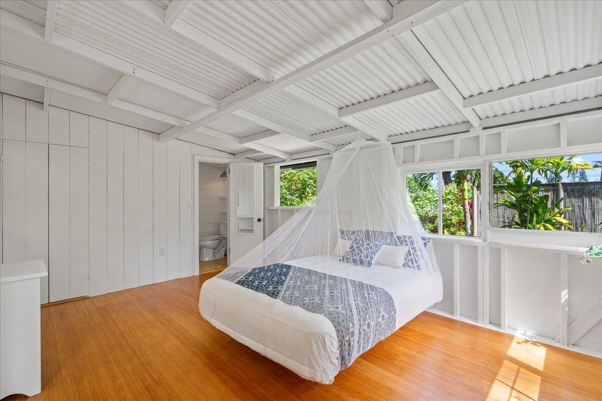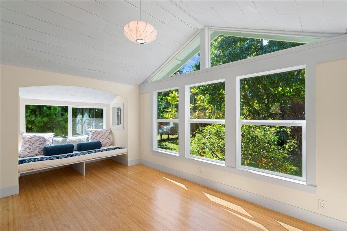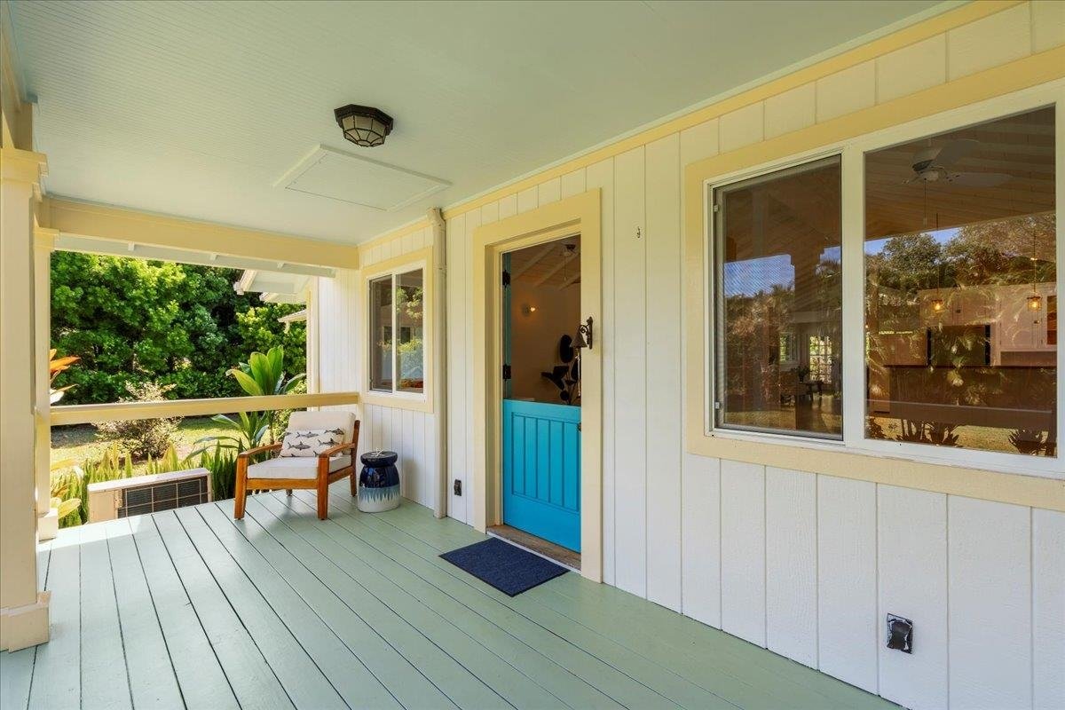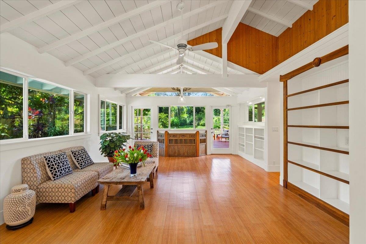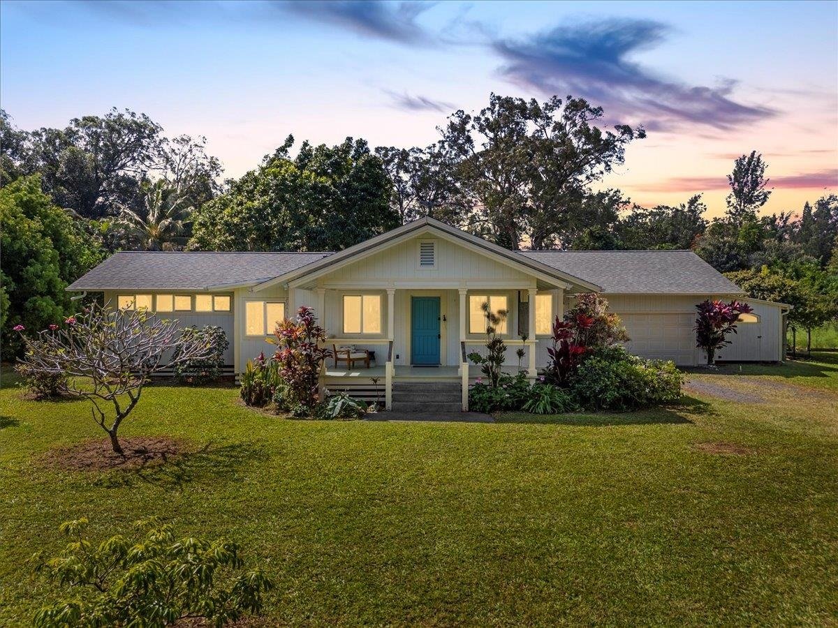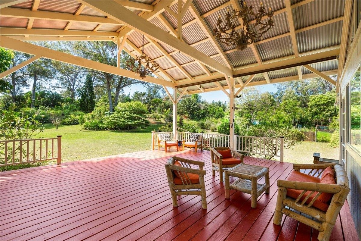 Retreat to a haven of peace and tranquility and enhance your connection with nature on this stunning 2 acre property in Haiku. With soaring ceilings and an expansive open floor plan, the heart of the home is the remarkable 1,248 sq ft main salon. An abundance of light and space create a sense of freedom. Step directly outside onto the 576 sq ft covered lanai, ideal for outdoor dining or simply soaking in the idyllic atmosphere. Originally designed as a 3 bedroom, the floorplan was opened up and converted to a large 1 bedroom with an attached sewing/sunning room. 2 bathrooms and 2 large walk-in closets allow plenty of space for storage and 2 split-ACs will keep you cool during the warm days. The house is surrounded by 2 magical, fully fenced acres with dozens of exotic trees, vibrant flowers, and an organic garden that beckons a sustainable lifestyle. Thoughtfully equipped with Owned Photo Voltaic, solar hot water, a fully insulated roof, split air conditioning, and a garage workshop, this is more than just a home; it's a sanctuary. Separate from the main house is an adorable private guest space with a bathroom. AND this amazing property borders on an EMI trail that leads to a waterfall…tucked away just steps from your own backyard! Schedule a showing and come experience this special property for yourself.