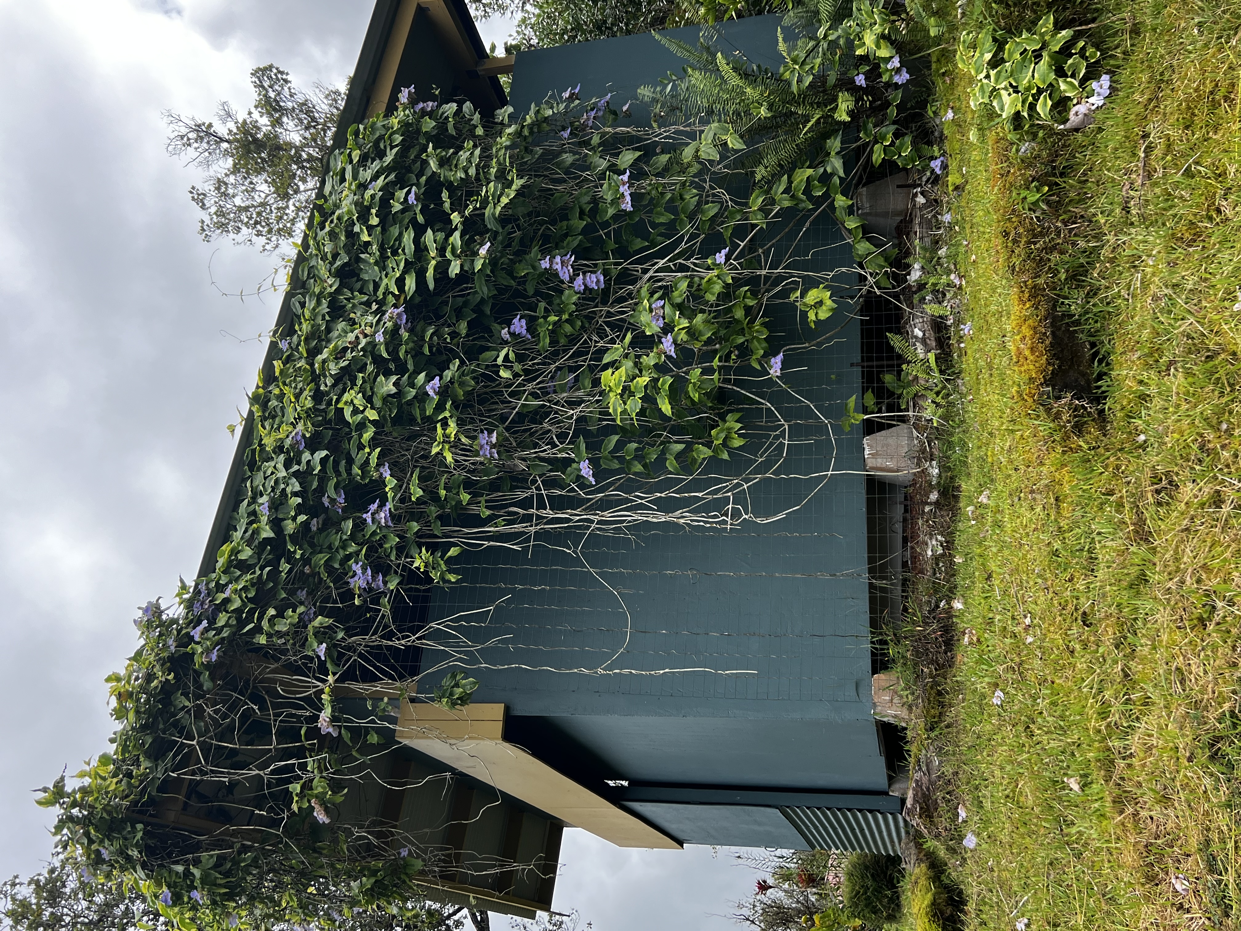 As you enter the driveway, you're greeted by a charming guest house and a 20x40 greenhouse for your own food forest. The property is lined with banana trees, avocados, and a variety of tropical flowers and plants, making it a true gardener’s delight.