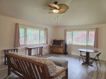 Welcome to this recently remodeled home on Ulei Street in the front of Hawaii's Eden Roc Estates, where the owner has gone to extremes to provide a carefree living experience. Located only three lots away from pavement, this property is perfectly situated for privacy, convenience, and self-sufficiency. Privacy: far enough from the highway to offer the tranquility of the forest surroundings, yet close to paved access on Ohia Ave. Convenience: about four miles from the Volcano Hwy on paved roads with easy northward access to Mountain View, Keaau, and Hilo; southward access to Volcano Village, Volcanoes National Park and the southern tip of the island. Self-Sufficiency: catchment rainwater and photovoltaic systems provide for the property's basic needs. The home has recently been painted inside and out, creating a modern, clean look that is accented with new fixtures, newer appliances, upgraded cabinet hardware, new front entry deck, a refurbished photovoltaic system, new lanai roofing, and a new on-demand water heater. The parcel itself is wonderfully developed: the house sits back from the rural road with large front and back yards where tropical ornamentals, fresh fruit, and vegetables can flourish. The large back lanai (covered porch) is the perfect link between the expansive interior and the mature landscaping (tropical fruit and decorative plants). In addition to the wonderfully remodeled home, the large greenhouse is ready for your projects and plants. An acre is a lot of space for home, garden, orchard, greenhouse, and so much more. Make the most of it: explore the County of Hawaii's further development options: farm dwellings, additional dwelling units, agricultural uses, and ag-based businesses. You won't find another home like this one with so much value offered. This property is truly unique... and it could be yours. No Permits on Record. Permits were applied for, no final inspection.Seller financing. PMM or A/S. Min $85k dn.