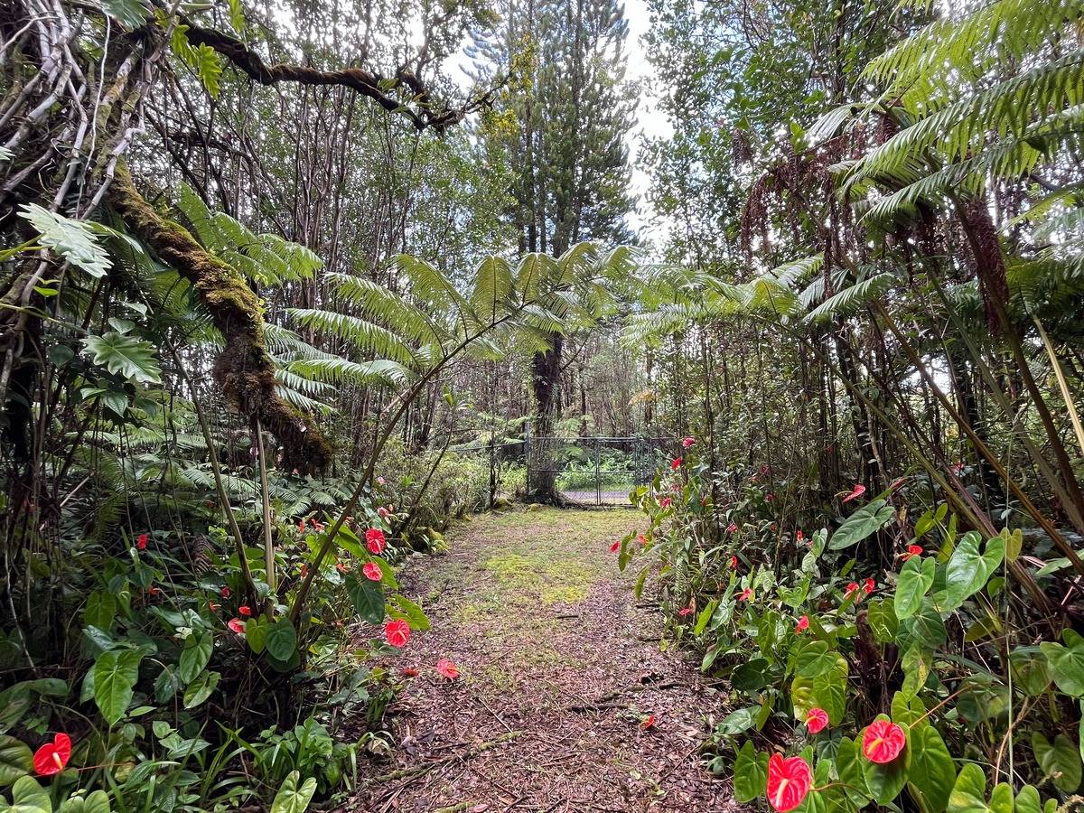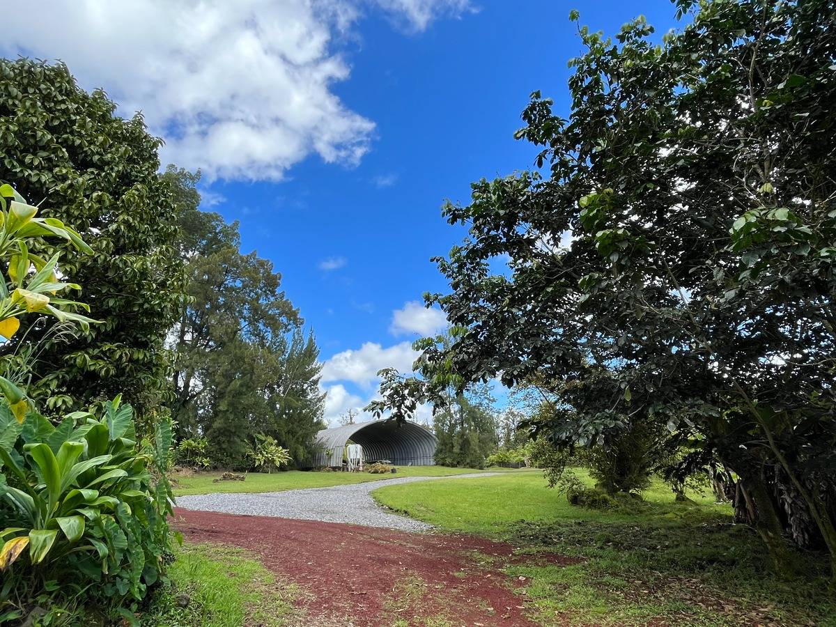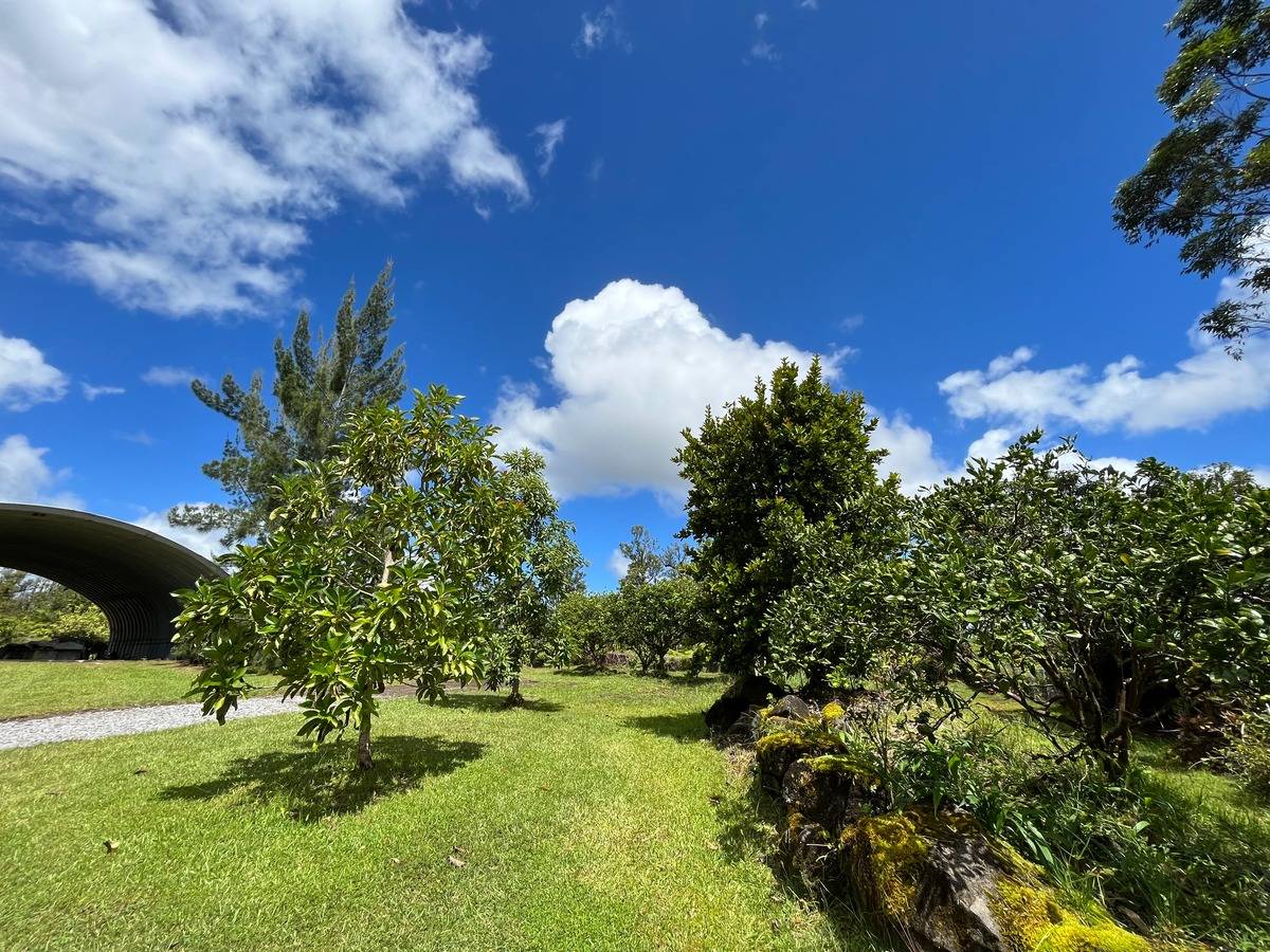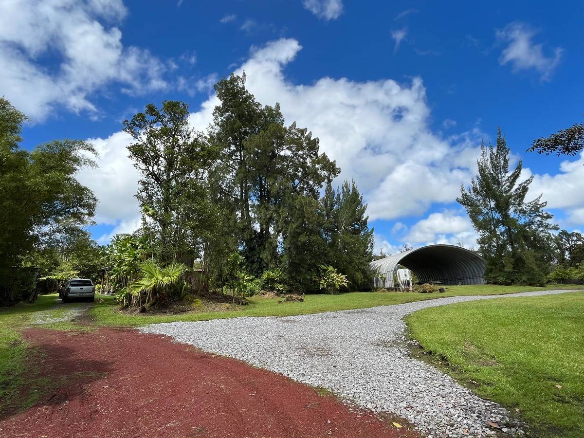If you are looking for privacy, self sufficiency, fruit trees, security, and Beauty; You have found it here. With 2 one acre lots, consolidated into one parcel, completely fenced with 6 foot chainlink, full of fruit trees and tropical flowers; Your Oasis Awaits!Current owner has lived here for 45 years, and has created quite a lovely property with mature landscaping. Private from the road with a berm of natural Ohia forest. There are no visual neighbors from the property. Electricity is available with underground electric which goes to a giant 60 foot quonset hut workshop, high speed internet is available with Hawaiiantel fiber at the road.A cabin is fully functional with two polyethylene 500 gallon water catchment tanks and a full bathroom, with great water pressure. Hot water is provided by a propane on demand hot water heater (there is also a back up water heater, just in case!) The outdoor kitchen is currently set up on the covered front deck. There is a bedroom on the first floor and a second story bedroom as well. This could be the perfect cabin to live in, while you build a larger home on an existing housepad, or call it good and get comfortable!The 60 foot quonset hut, houses the workshop and tools, and can be expanded to 100 feet. The materials are on site to finish the quonset hut and to finish a new 10,000 gallon water catchment tank.Mature fruit-bearing landscaping includes:Bananas of all kinds, star apple tree, Ice cream bean tree, allspice, mt. apple, avocados, Jaboticaba, tangerines, tahitian lime, meyers lemon, oranges both valencia and navel, white guava, coffee, surinam cherry, mulberry, brazillian cherry, iron woods, phoenix palms, queen palms, travelers palms, arica palms, anthiriums, torch ginger, haleconia, and many more treasures await!!Come get away from it all, while still being connected with super high speed internet and see how good it can be to live in East Hawaii.