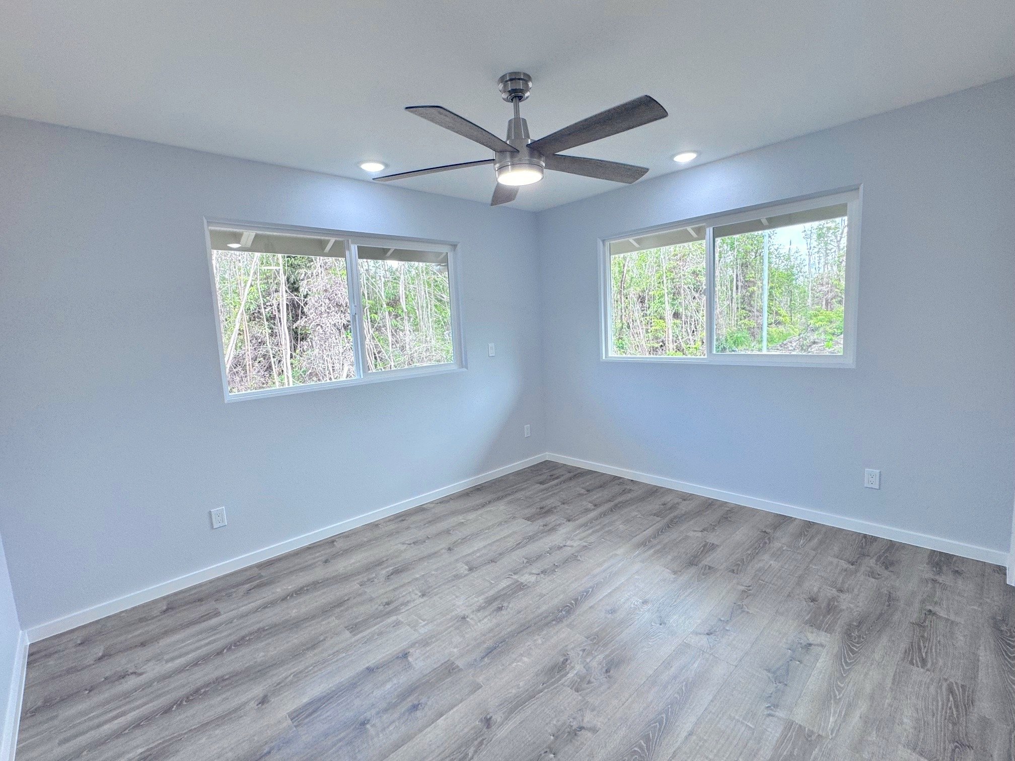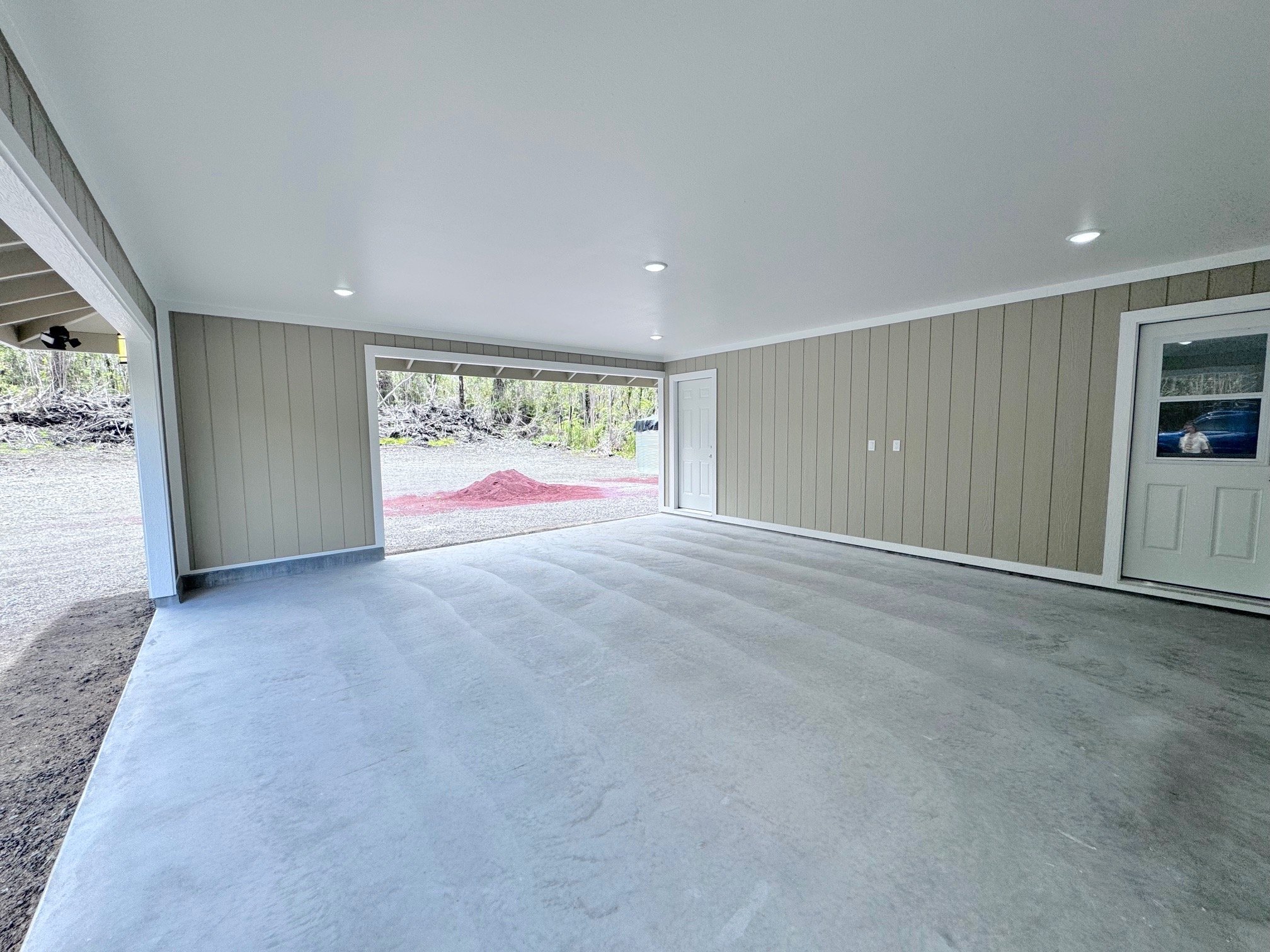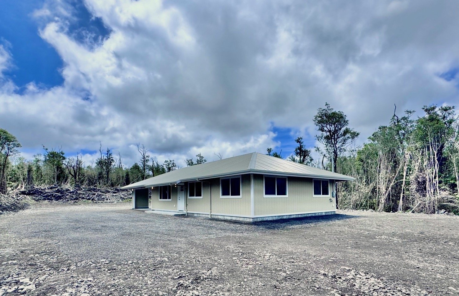 Brand new 2025 build on 3 acres! Three bedroom three bath home located on pavement in cool Fern Forest. Thoughtfully set back from the road, nestled in the Ohi'a forest, the space is quiet and private. The house location was carved out be an easily maintainable yard area but with the sized of this parcel the opportunities are there for farming, orchard or endless creative ideas. Enjoy the temperate climate and this on pavement, low traffic location. This home design is functional and Hawaiian style, with the 3rd full bath and laundry located just behind the carport and off the living area. The three bedrooms and 2 baths located at the other end of the home. There is a spacious open concept living, dining and kitchen area with sliding door to access the back side of the home. Tons of lighting, fans and natural light. This home boasts all the latest amenities and features including: custom tiled showers quartzite counters recessed lighting top of the line new appliances sink disposal lifeproof flooring closet lighting utility sink 3rd full bath new 10k gallon catchment tank custom built in shelving pantry and ample cabinetry and more... Fern Forest Vacation Estates sits at about the 2500 foot elevation and is just a short drive from Volcano Village with access to restaurants, stores, hiking and the Hawaii Volcanos National Park. This is a growing subdivision nestled in the native forest. Enjoy the carefree feeling of a brand new home along with the privacy and space 3 expansive acres can provide!