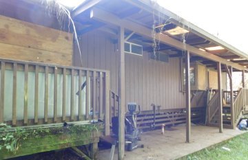 Nestled in the serene Eden Roc Estates this unique 2-bedroom, 2-bathroom tiny/container home offers a truly unforgettable living experience.The property has paved roads going to it and provides expansive private studio upstairs that has a wraparound deck. Needs to be finished, upstairs has a bathroom with a large shower, Enjoy the self-sufficient lifestyle provided by solar power with batteries, a water catchment system, and a cesspool. The 1.5 acres of land offer both privacy and tranquility, with half cleared for your convenience and the other half providing a forested retreat. Cultivate your own fruits and herbs in the small garden, featuring ulu, banana, and kitchen herbs. Raise your own poultry in the chicken house, adding a touch of country living to your tropical paradise.*Cesspool is permitted, Approval to Use issued 4/21/2015 *Approx. 10K Gallon Water Catchment TankThis property is being sold "as is".