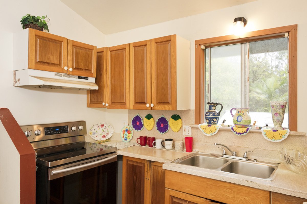 Currently accepting backup offers. Charming furnished, permitted 1-Bedroom 1-Bath detached single-family residence in beautiful Fern Acres, situated at the 1,400-foot elevation where cool breezes and lush greenery thrive.Located on 2 acres, this peaceful property features paved road access, Hawaiian Telcom internet and DIRECTV availability, a gated entry, and a detached carport.Here's your chance to downsize to 512 square feet of comfortable living while enjoying 280 square feet of versatile space behind the 360 square foot carport, ready for a workshop, hobby room, or extra storage. Embrace a simpler lifestyle in a tranquil setting.Enjoy beautiful tropical plantings-guava, lemon, mountain apple, puakinikini, hibiscus, ginger, anthurium, and a mango tree in the back. Approximately 1-acre has been cleared, providing a spacious, usable area for gardening, expansion, or outdoor living.Live here in this loving, private, and peaceful tiny "home sweet home" on Plumeria Street in Mountain View, Hawaii.