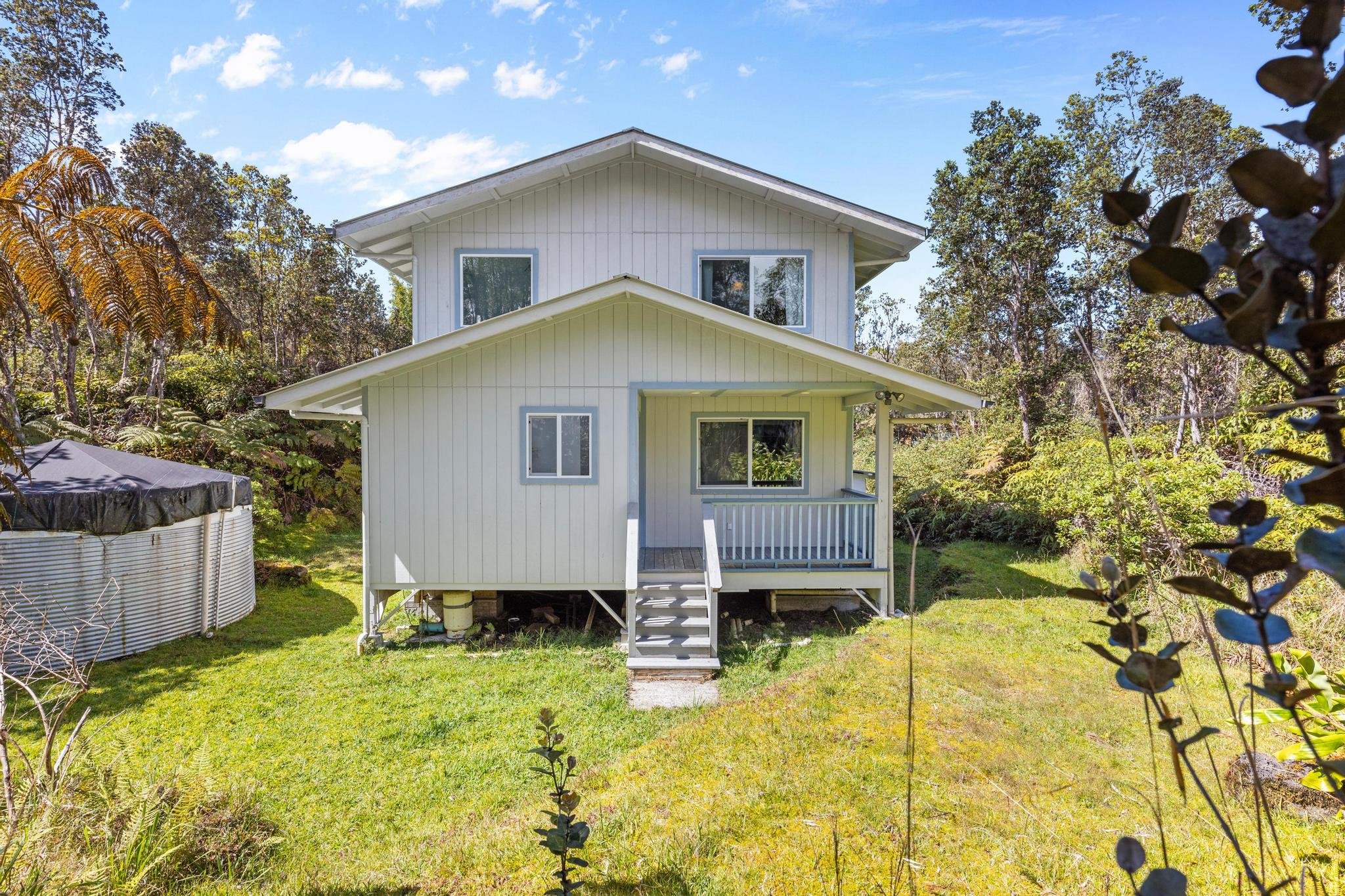 Unlike it's new neighbors with flatten lots and cookie cutter new build homes this property brings you back to what Volcano is all about, unique homes, privacy, greenery, solitude and serenity. 2 living/sitting rooms, 2 bedrooms, and 2 full baths are split between the two floors which offers you room to enjoy this home on your own or invite some guests for a long weekend, the choice is yours.