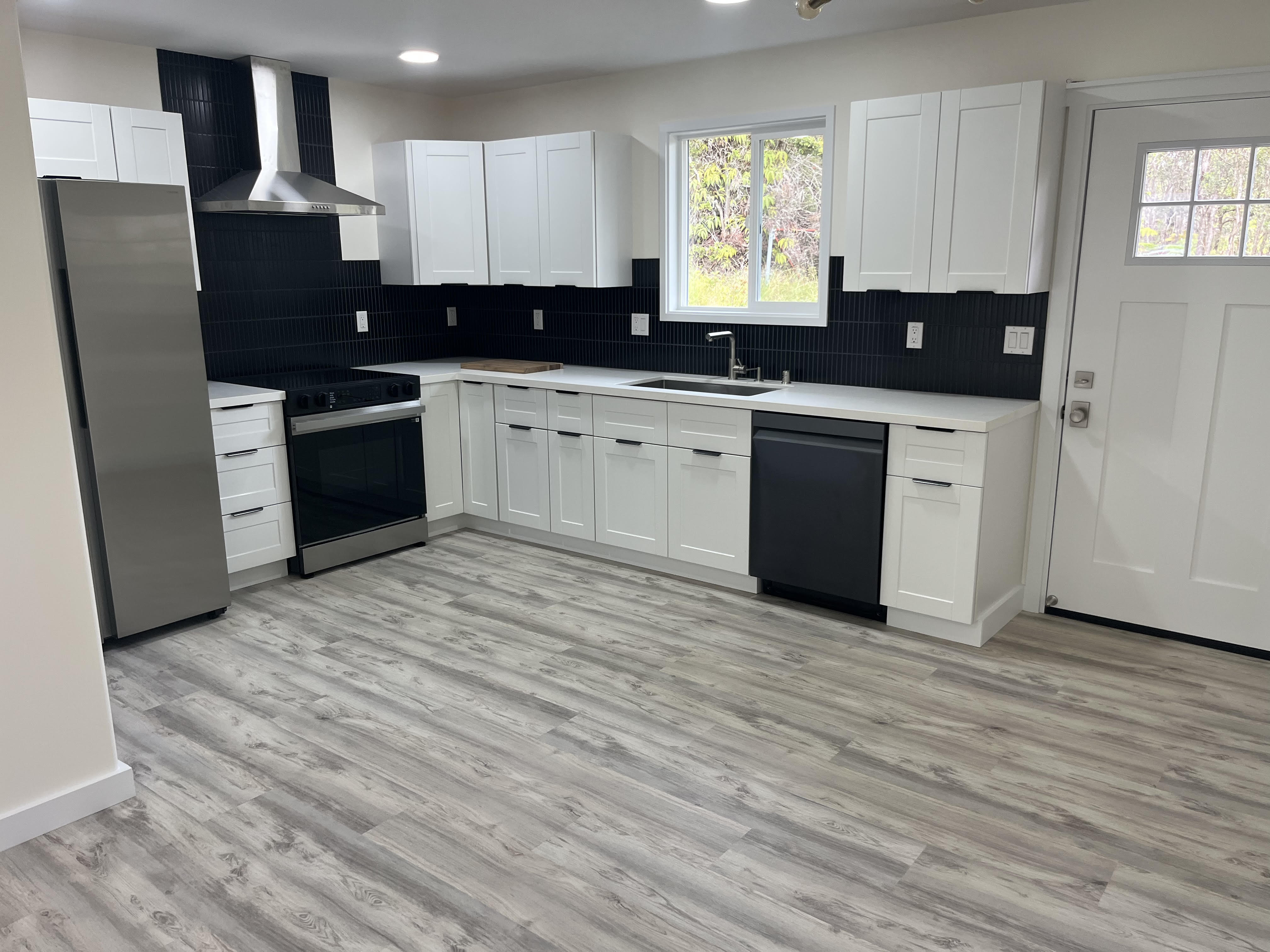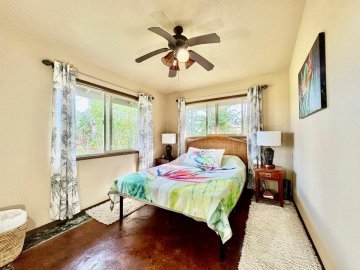 Custom built home conveniently located in a cooler climate. Just minutes from the quaint town of Volcano with dining, national park and art centers. Just off the highway with popular boar statue on property. Land has been ripped and rolled with elevated house pad and excellent drainage. Exquisitely designed home for the discerning home buyer. Water tank is on a cement slab. Exterior cement board siding and soffit. Roof is framed with cantilever attic trusses which overhangs do not block windows and create a large attic space. Interior has custom shelving throughout all of the closets. All trims are hardwood including windows. Upgraded designs in kitchen and bathrooms with quartz counter tops. Convenient attic ladder for attic space with 3/4” plywood floor for durability. LED adjustable lights throughout house. Wall mounted motor for garage door.