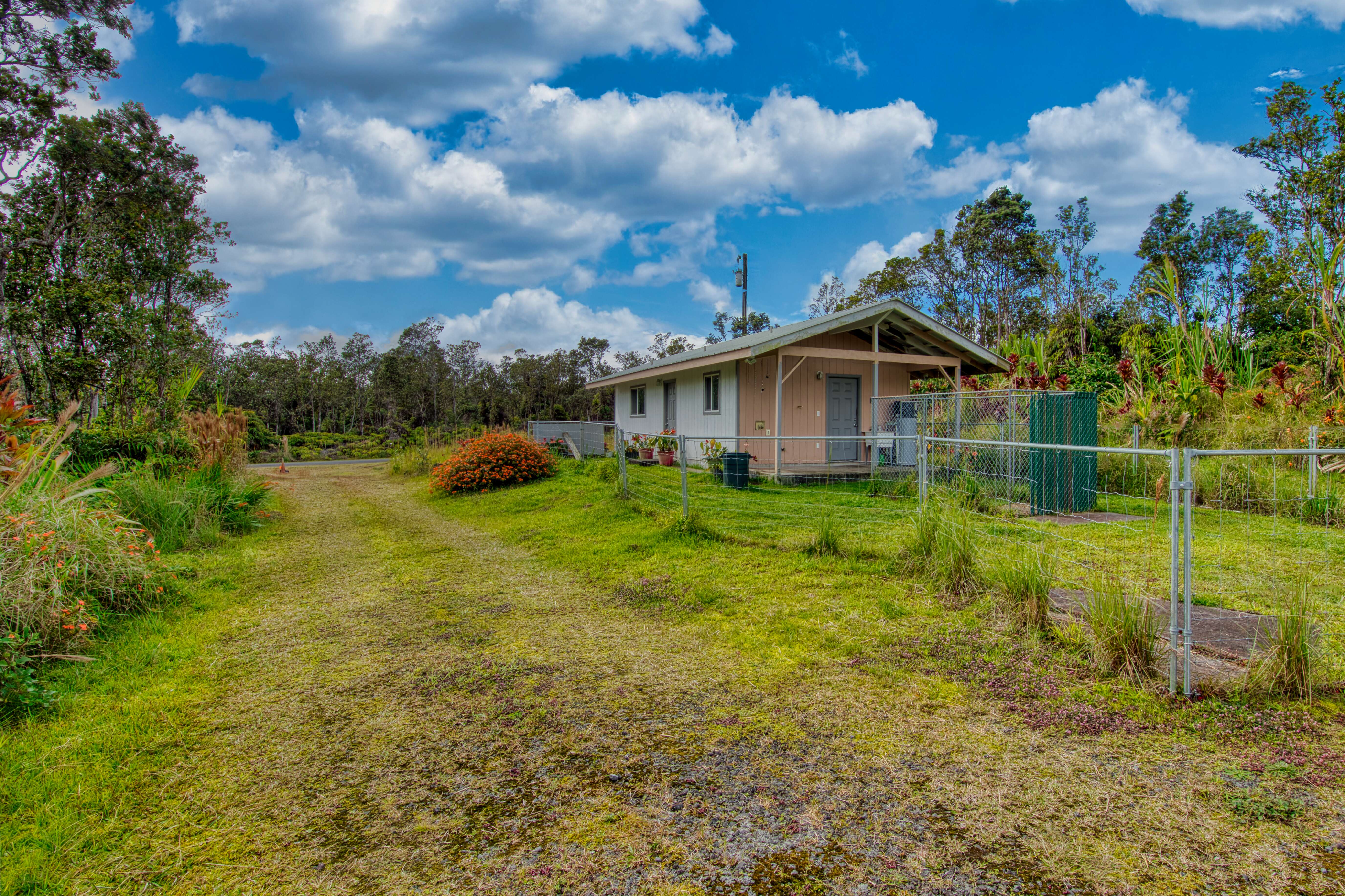 Nestled in the lush landscapes of Royal Hawaiian Estates, just minutes from the iconic Hawaii Volcanoes National Park, this 1-bedroom, 1-bath home offers a rare opportunity to finish a tropical escape exactly the way you envision it. Whether your heart leans toward classic Hawaiiana charm or sleek, modern sophistication, this home is your blank canvas in paradise.Surrounded by native ʻōhiʻa trees and cooled by mountain breezes, the property is ideally located near the Volcano Winery, vibrant farmers markets, and endless hiking and biking trails. Nature lovers and adventurers will love the easy access to the island’s best outdoor activities.Even better, this listing includes an adjacent 1/2 acre parcel—perfect for expansion, a garden oasis, or even your future guest hale.Design, finish, and live your vision in one of the Big Island’s most unique and inspiring communities!