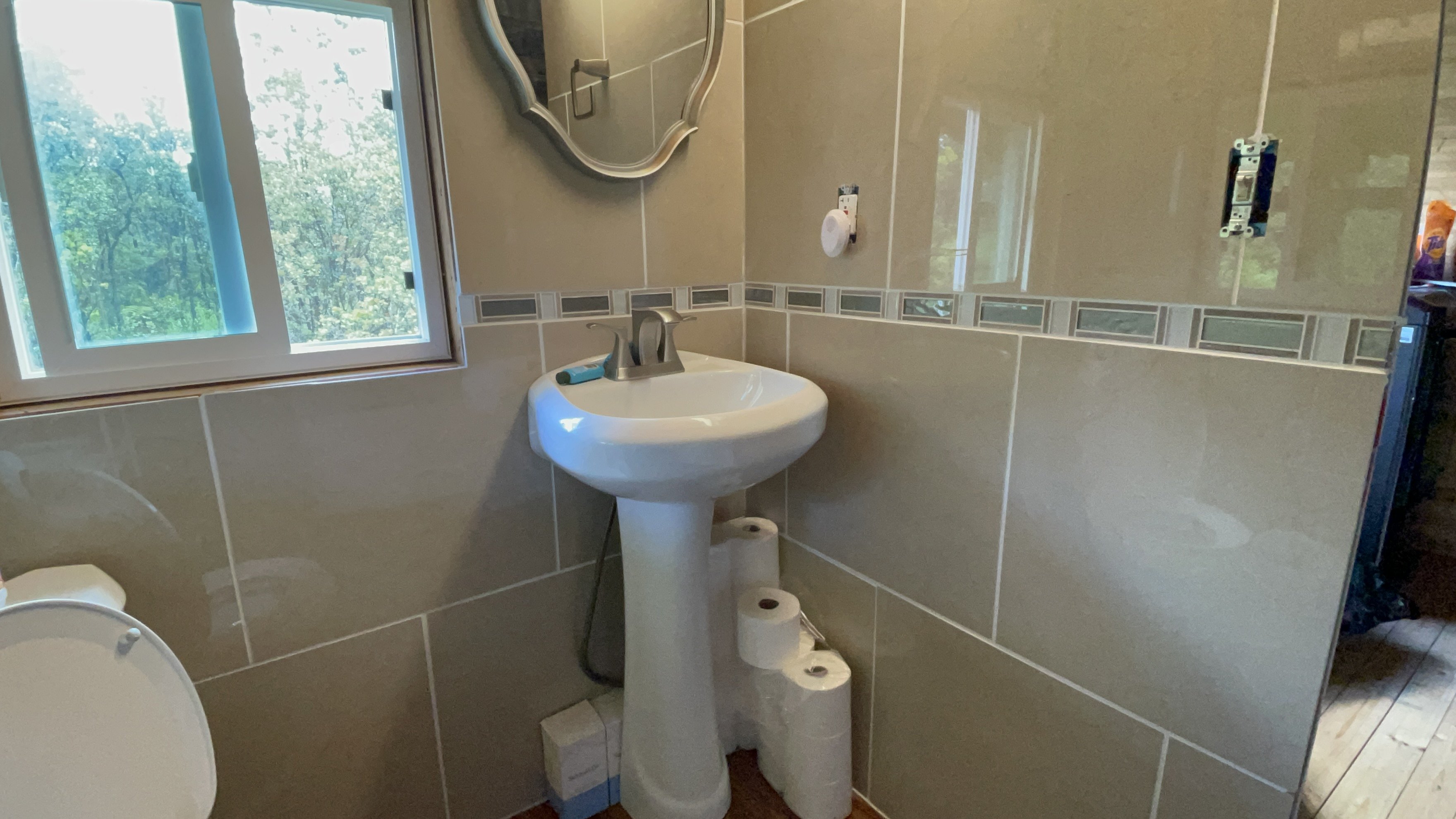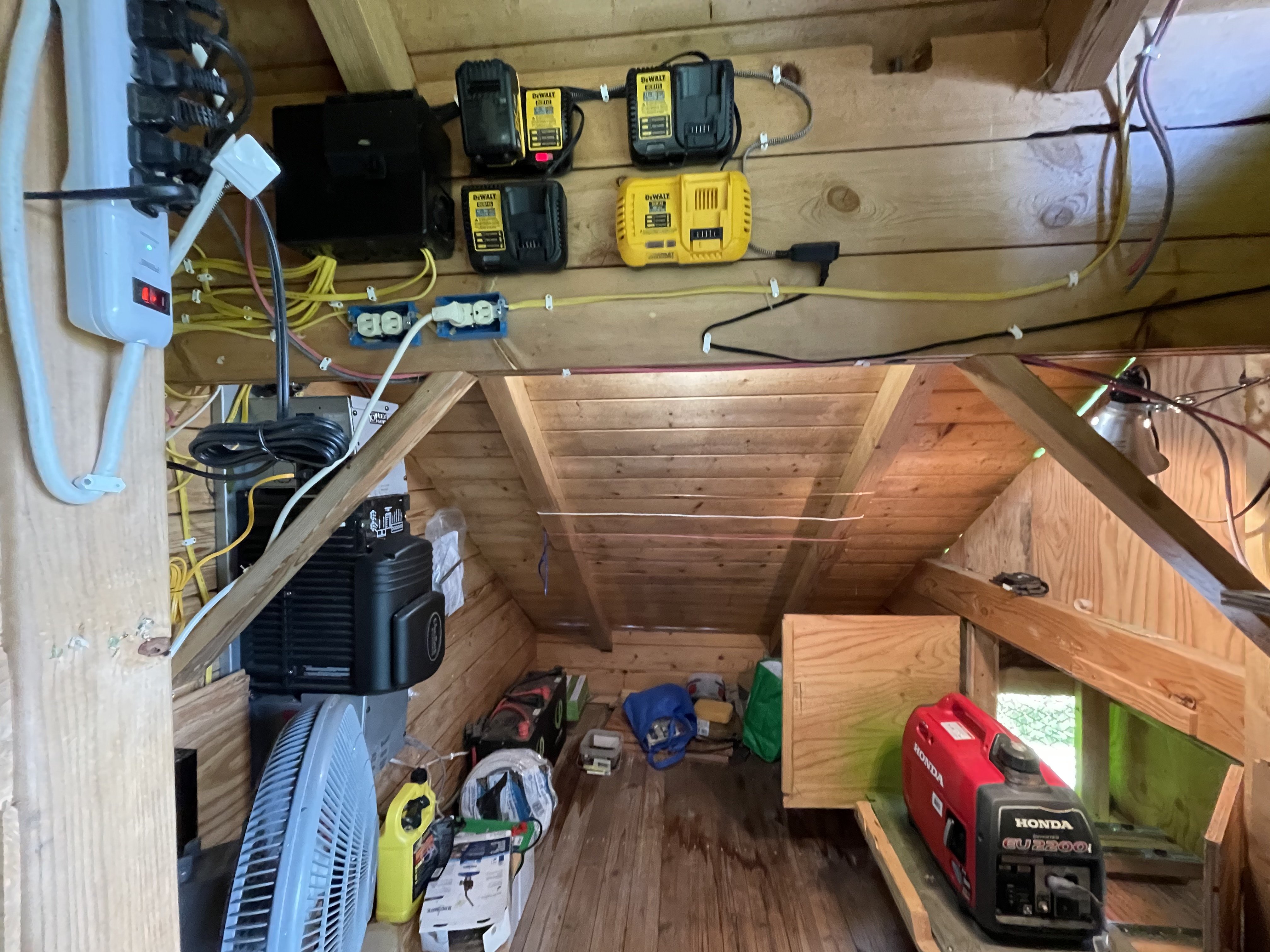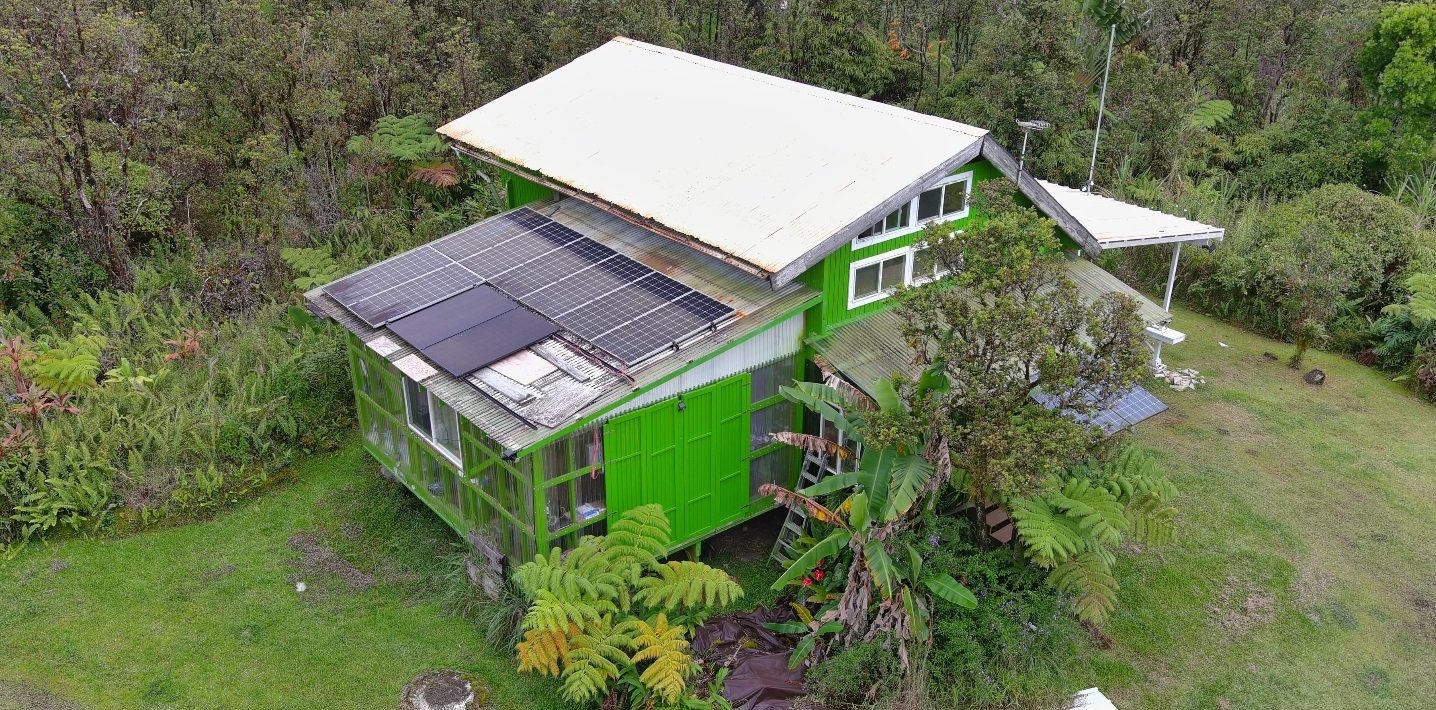 Enjoy over 1700sf of approximate Interior Living area including a spacious custom Greenhouse-type Living room that features walls that open on two-sides with folding doors, welcoming in nature and the cool island breezes during the day, and closing the doors in the evening for those comfy cozy nights .. the Main Suite upstairs offers a peek-a-view of the ocean-horizon in the distance, a full bath with shower/tub and pedestal sink, tankless propane water heater, dryer and a new washer, near the walk-in closet. The second walk-in closet upstairs is where the power is manage/stored.. the off-grid features include: Photovoltaic Panel Battery packs, Honda Generator on a sliding shelf custom closet that is vented to the outside, along with battery meters and surge protectors.
