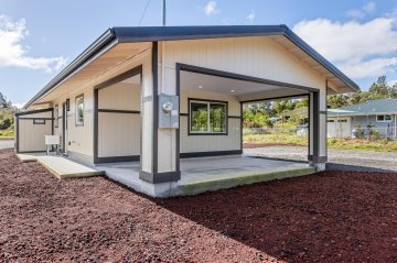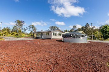 Three bedrooms and two bathrooms in Royal Hawaiian Estates with quality finishes and craftsmanship. Luxury vinyl plank flooring, and lava rock walls. The practical layout features an open living space with the bedrooms accessed by a traditional hallway. The primary bedroom has an en-suite bathroom, while the other two bedrooms share access to the well appointed hallway bathroom. Ample natural light and ventilation, ceiling fans throughout, generous storage space, kitchen appliances, and a large carport make this home easy to live in. Royal Hawaiian Estates is located only a few minutes from all the conveniences of Volcano Village and the spectacular beauty of Hawaii Volcanoes National Park. The Volcano Golf Course is just a little further up the road. Bird Park is the next mile up the road for that perfect high forest experience. If the beach is more to your liking, just follow the highway down into Hilo and the rest of its offerings (University of Hawaii Hilo, Hilo International Airport, the markets, government offices, shopping, and financial services) . The home itself is located close to the front of the neighborhood, adding to the numerous conveniences. It just keeps getting better: this property is located in lava hazard zone 3, meaning homeowners insurance is attainable and affordable. Value like this is a hard thing to come by.