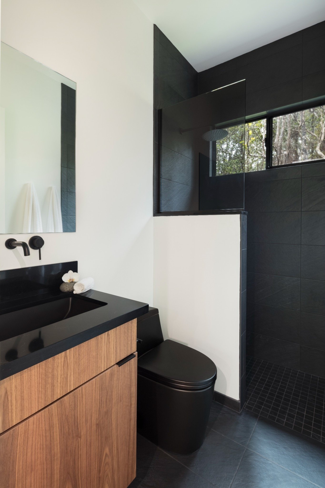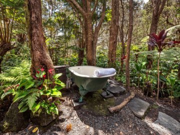 -Bose surround sound system for immersive audio -High-end black quartz with gold veining -Custom mahogany entrance doors (9 ft for main home, 8 ft for studio) -10-ft ceilings in the main home; 9-ft in the studio -Karndean luxury Koa vinyl floors and charcoal porcelain bathroom tile -Matte black kitchen cabinets and walnut bathroom cabinetry -Underground electrical service -Gas Rinnai on-demand water heaters -Ferrocement 10,000-gallon underground catchment system -Whole-home UV and carbon water filtration -Japanese cedar Ofuro hot tub with jets -Four rainfall showers -Samsung Bespoke appliances -Oversized windows