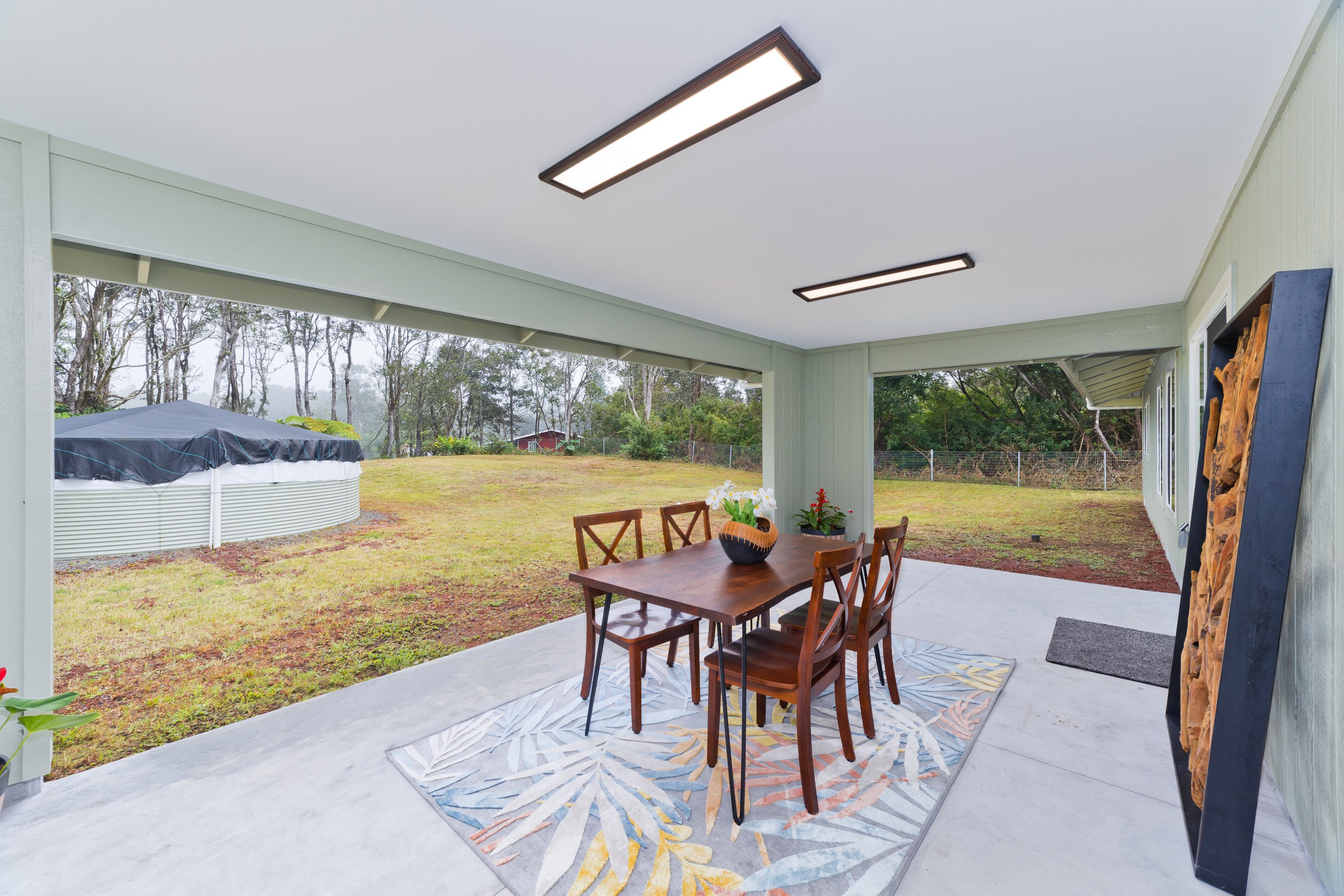 Welcome to this beautifully maintained newer construction single-level home offering the perfect blend of comfort, privacy, and functionality. Featuring 3 bedrooms and 2 full bathrooms, this thoughtfully designed residence is ideal for relaxed island living, whether as a primary residence, vacation getaway, or investment property.Step inside to find a bright and open layout with plenty of natural light and thoughtful touches throughout. The home includes a dedicated laundry room and an oversized 2-car garage, perfect for extra storage, a workshop, or parking large vehicles with ease. The heart of the home boasts a well-appointed kitchen with ample counter space and cabinetry, seamlessly flowing into the living and dining areas to make entertaining a breeze.Outside, the property is fully fenced with a combination of chain link and newer vinyl privacy fencing, complete with a wide driveway gate that provides added security and convenience. The spacious backyard is a blank canvas ready for your vision, whether that includes tropical landscaping, a garden, or a peaceful outdoor retreat.Enjoy added peace of mind with recent updates, including a brand-new water pump and a freshly cleaned catchment tank. This home is serviced by overhead power and is move-in ready with no deferred maintenance.Location is key, just 5 minutes from the entrance to Hawaii Volcanoes National Park, where you can explore hiking trails, scenic lookouts, and cultural landmarks. You'll also find nearby conveniences including restaurants, a convenience store, and the refuse transfer station, all within a short drive.If you're seeking a clean, newer home in a lush, upcountry setting with room to grow, relax, and enjoy Hawaii living, this one is a must-see. Don't miss your opportunity to own a well-cared-for property in one of the Big Island's most unique and peaceful communities!Listing price is below the tax assessed value.
