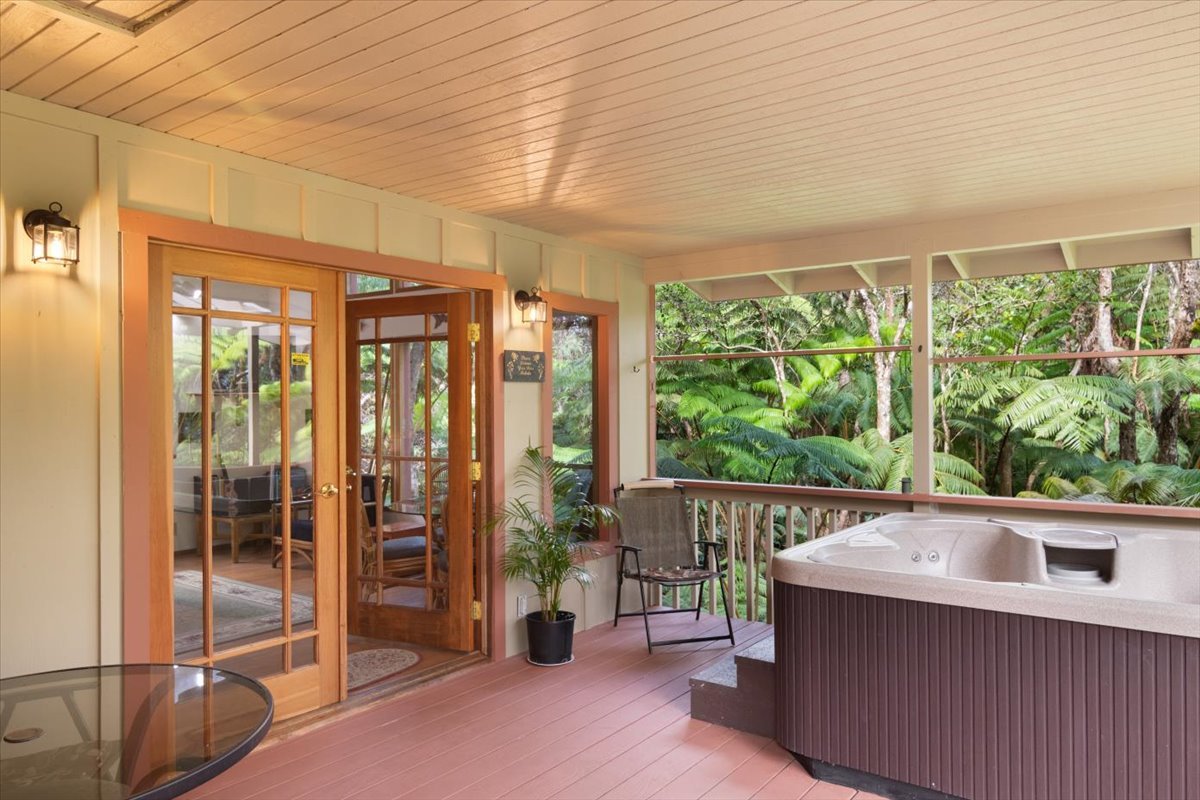 Volcano Village, just a short drive away, offers a variety of amenities, including restaurants, cafes, art galleries, and the renowned Hawaii Volcanoes National Park, known for its hiking trails and volcanic landscapes. This home presents a unique opportunity to experience the beauty and tranquility of Volcano living.
