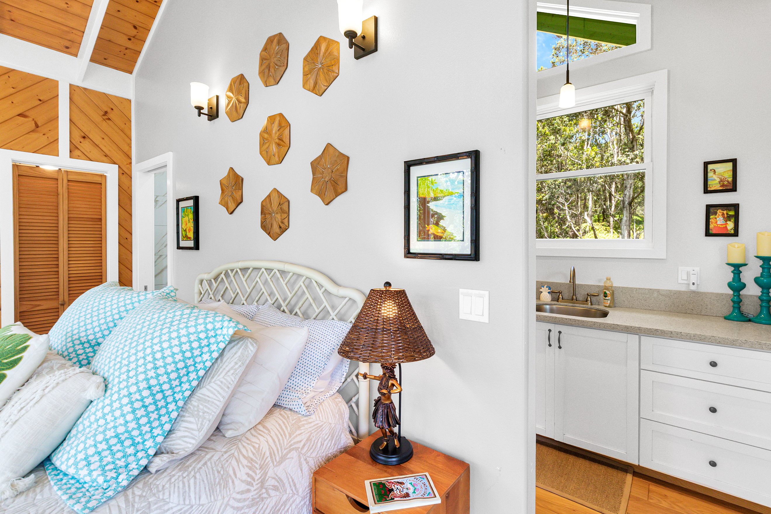 THIS LICENSED STVR is like living in a tree house! It is a charming cottage with the main living area up in the trees and a convenient patio/BBQ area underneath for covered outdoor space.Tucked back on the lot you have maximum privacy from the street. Sit on the upper deck and watch birds flitting in the trees. With over 135sqft of covered deck above and a large covered patio underneath, the home provides ample indoor/outdoor areas to enjoy the cool climate and native rainforest of Volcano.You are minutes to Volcano Village for restaurants, supplies and Farmer Markets as well as activities at Cooper Center and Volcano Art Center. A few miles up the road is Volcano Golf Course and Hawaii Volcanoes National Park for hiking, lava viewing and interpretive tours. With over a million visitors a year, this is one of the most popular visitor destinations in the State of Hawaii.Equally valuable is the County Fire & Ambulance Station in the National Park. For insurance purposes and safety for visitors, you are within 5 miles of medical/fire response!Virtual Tour available at tool bar.