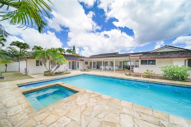 Looking for a great value in one of Honolulu’s most coveted neighborhoods? Visit this single-level home on a large lot at the peak of Koloa St. home! The modest front appearance opens up to a large private backyard with patio & pool. Appreciate the indoor/outdoor feel of the oversized covered outdoor patio, perfect for entertaining family and friends. Enjoy tranquil views from the master bedroom and large family room which open up to a sparkling pool & hot tub. Experience privacy in each bedroom separated by common living areas. The vaulted ceilings in the living room and gorgeous oakwood floors are reminiscent of old Hawaii while the PV panels contribute to an eco-friendly lifestyle. Minutes from Kahala Beach & Kahala Mall to shop, dine, & more! You’ll love this exquisite Kahala home!