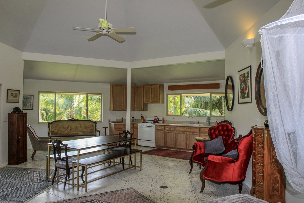 Enjoy a self-sufficient, farm life, on this beautiful 10+ acre, property. Magic is in the air here! Daily life consists of open spaces, blooming flowers & fruiting trees, accompanied by nature's soundtrack of bird song & background ocean waves. The coast & Opihikao tide pools are minutes away; approx. 0.6 miles to swimmable beach. - Old-growth mango & design-planted landscaping w/mature palms. - Layout consists of five, permitted structures. Three are hexagonal w/private lanais & combined space of approx. 2,000+ sqft., plus potential for extension. Two are permitted as efficiency farm dwellings w/full kitchens & baths. The third is permitted as an agricultural structure, w/full bath, & three outer rooms, radiating around an open center space. Structure #4: custom, concrete block, 3-room, utility building, houses connections for solar system, laundry, & bathroom, w/adjacent outdoor shower. Structure #5; "The Longhouse", an approx. 40' x 20', pavilion, perfect for gatherings, hula, workspace, or packing area; includes 8 ft. disco ball w/electric hoist! - Added perk: 32' x 96' greenhouse & adorable fruit stand structure. - Utility building connects to underground electric throughout property. - Survey & Termite Inspection completed. - Enrolled in the 10-year Agricultural Dedication Program; for reduced tax bill! - In addition to the mature orchard trees, the Seller planted 30 soursop, 30 Tahitian Lime, 60 Samoan and Fiji Dwarf Coconuts, 10 Bananas (apple variety and others) & 200 yellow lilikoi vines (on longan trees). - Property is fully fenced & gated, ideal for livestock & to help reduce pig intrusion. - Two permitted cesspools. - Three, discretely placed catchment tanks ensure ample water supply. - Sale includes generator & misc. garden tools. The Seller has put loving, sweat equity & monetary improvements into this majestic fruit farm, and it's ready for a Buyer to reap the fruits of their labor.
