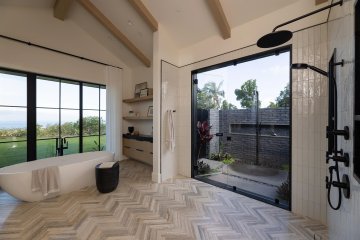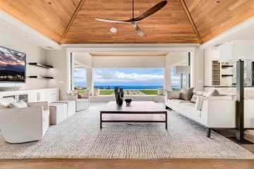 Atop the exclusive and private enclave of homes at The Ridge at Wailea, sits a masterpiece of modern architecture and design. A select few will experience the spectacular ocean views and the artistic flare of this residence as a livable sculpture. As you enter a large, covered entry, the striking black magma stone surrounds a tropical courtyard with a modern gate revealing an impressive steel and stone spiral staircase that welcomes you to another level of luxury and into another dimension of living. From the moment you enter this 5,000+ sq. ft. property, you will be struck by the floor-to-ceiling wall of windows and doors, filling the home with natural light and breathtaking views from south of Molokini to the majestic West Maui Mountains. Designed by Guy Dreier Designs and built by Trend Builders, the modern flair of this 4 bedroom, 4.5 bath estate is enhanced by sculptural shapes, dramatic lines, and organic spaces. Seamless integration of the expansive indoor and outdoor spaces serves to further enhance the open-air, island lifestyle. The remarkable layout features multi car parking and garage, media, living, dining areas, guest bedrooms with private lanais, and 2 master wings. The south wing has an exquisite master and spa-like bath, indoor/outdoor showers, a walk-in closet, and coastal views from a private lanai, an office/guest suite, laundry room, and elevator for privacy from the main living area. The north wing has a gracious master suite with expansive ocean views, indoor/outdoor shower, walk-in closet, poolside lanai, and the open-air kitchen for premier entertaining. With a large island, pantry, sunken bar with intimate seating areas, Miele wine unit, and other high-end appliances, the lavish chef’s kitchen offers guests an elegant entertaining experience. At the heart of this ultra-contemporary oasis is an outdoor lanai featuring a stunning Avant Gard pool with spa, gas fire pit for cozy evenings, a built-in barbecue, and the ultimate outdoor dining and entertaining area. Featuring sleek finishes, soaring high ceilings, Quartzite slab stone counters, Poliform systems throughout, this home has been designed with the highest attention to detail creating an air of sophistication. This is the perfect balance of single level living and contemporary comfort setting this home apart from rest. Listing Broker has a recorded interest in the property and is licensed in the State of Hawaii.