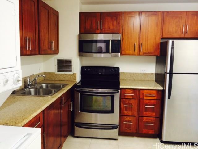 Sorry, No showings at this time. Renovated 2-bedroom, 1-bath CORNER condo with desirable end parking stall. Secured, pet-friendly building convenient to shops, restaurants, services and bus lines. W/D in unit, granite countertops, SS appliances, wood laminate and ceramic tile floors, split AC and ceiling fans. Close to freeway. Some electrical and plumbing must be corrected. Sold As-Is.