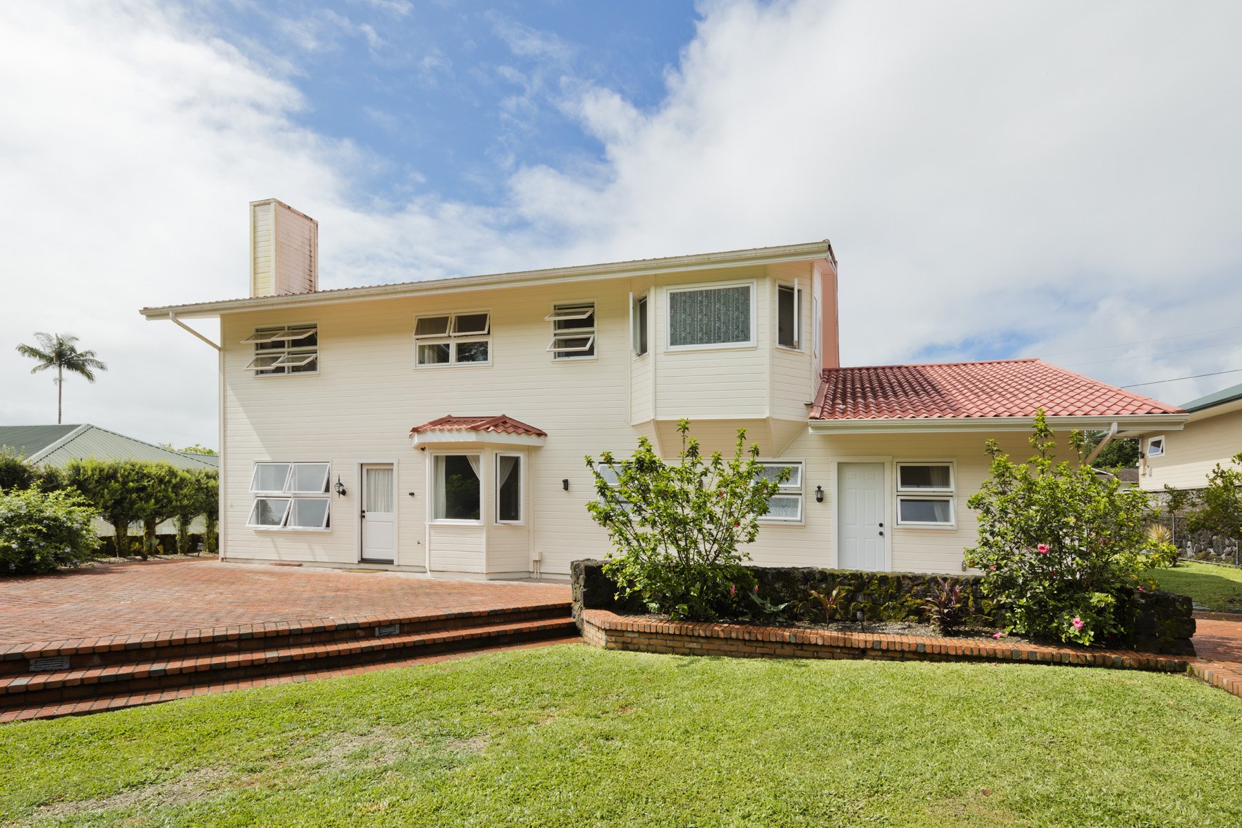 Located in the Ainako neighborhood, just above E B DeSilva Elementary School, this beautifully maintained 4-bedroom, 3-bath home blends timeless elegance with everyday comfort. Set behind a stately wrought iron gate, the property features a fully fenced and landscaped lot backing up to State forest land for added privacy and natural beauty.