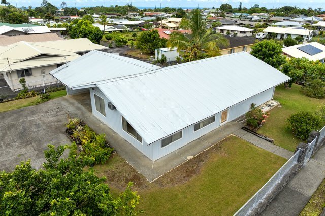Home is located in one of the most desirable areas to live in Hilo! Close to all conveniences, yet quiet and peaceful with nice neighbors. Lovingly-landscaped w/beautiful rock wall fencing. Well-maintained over the years. Roof replaced twice. Conveniently-located laundry room in carport right outside the kitchen. Doing the laundry & cooking go together! :-) Kitchen w/solid wood cabinets, stainless steel double sinks, and breakfast counter/ bar. Open concept w/dining area & very pleasant cheerful living room adjacent. Spacious family room with built-in cabinets can serve as hobby room , children's play room, or whatever you wish. Master bedroom w/full bath. 2nd full bathroom for family & guests. Mountain views w/glow from volcano when erupting! Welcome home to your comfortable safe haven!
