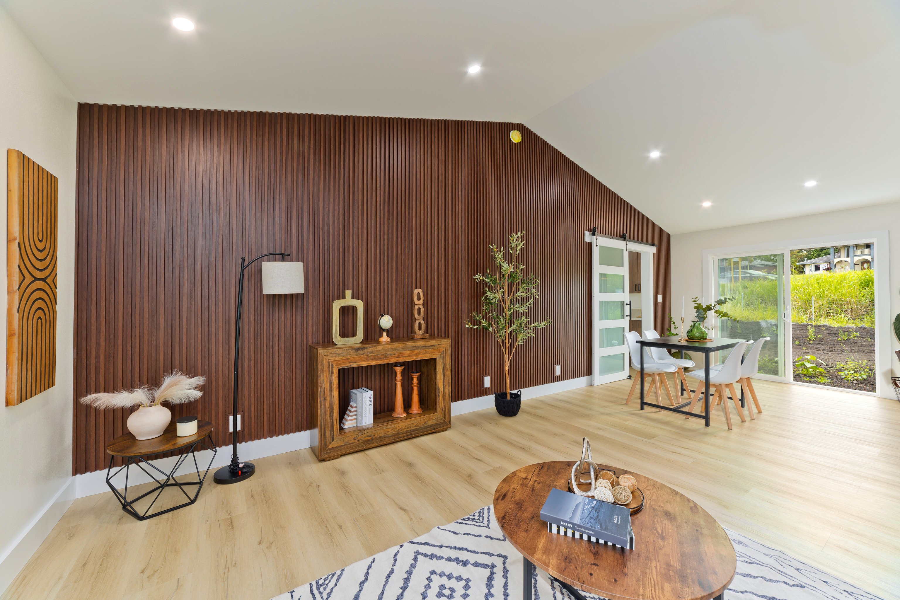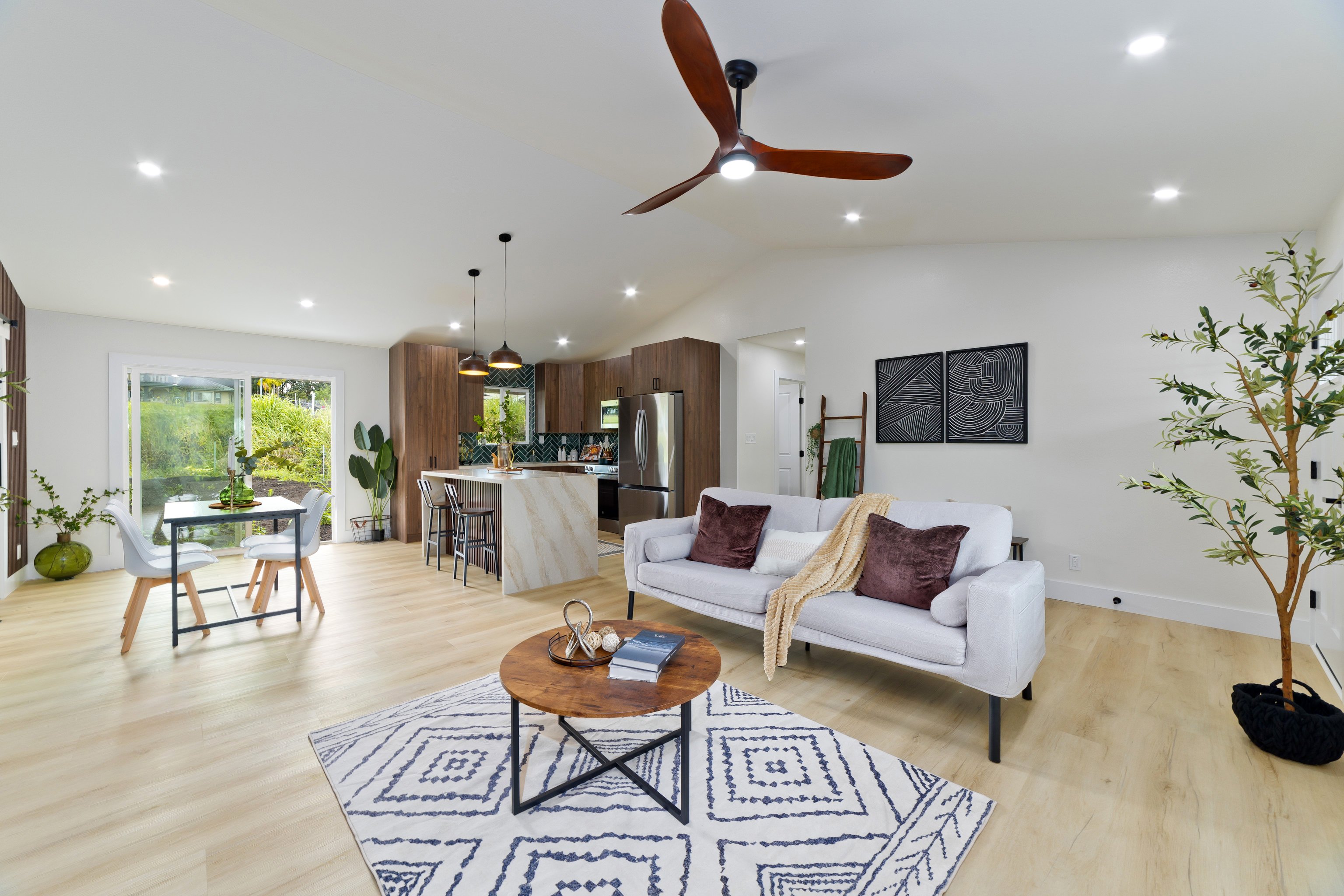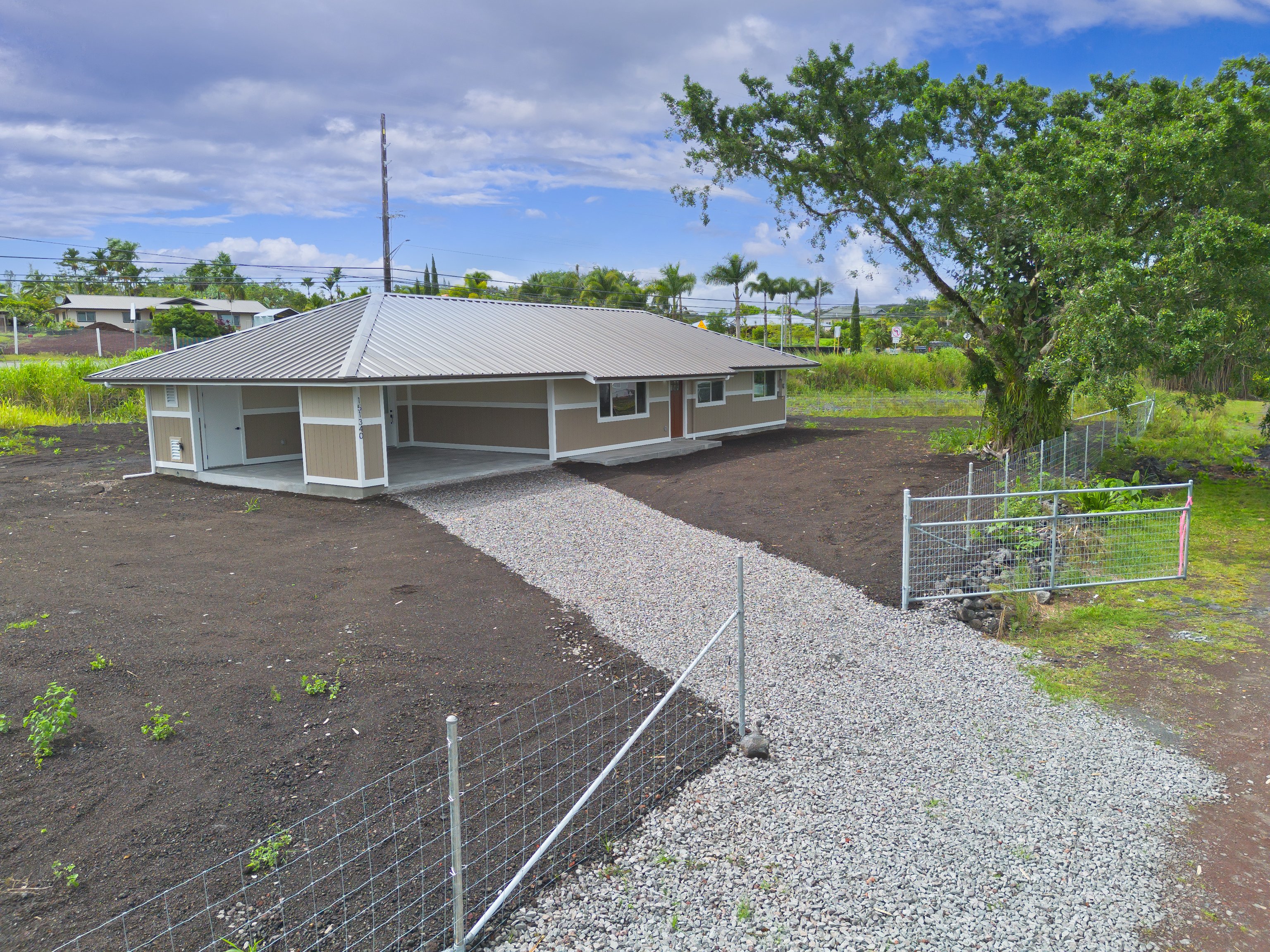 Experience the essence of island living in this charming 3-bedroom, 3-bathroom home set on almost an acre lot in beautiful Hawaii. This property is partially fenced which provides you the convenience of privacy and security.As you step inside, you'll be greeted by a spacious open floor plan that combines the dining, kitchen, and living areas perfect for both entertaining and casual family living. The kitchen features modern appliances, plenty of counter and storage space, a waterfall granite island.The master suite is complete with an ensuite bathroom that boasts a walk-in shower and contemporary finishes. The two additional bedrooms are well-proportioned, offering ample space for family members or guests. A second full bathroom ensures convenience and comfort for everyone.The laundry room equipped with a brand new LG washer and dryer, offers great storage and counter space, in addition to the third bathroom. Come home from the beach and wash off without tracking sand through the home.Outside is a blank canvas for your imagination. Perfect for gardening, outdoor gatherings, or simply enjoying the serene surroundings. You'll find a newly installed 10,000-gallon water catchment system. Additionally, due to the property's location, homeowners will have the option to connect to county water services if preferred.Located in a sought-after area, this home is just a short drive to shopping, dining, and recreational activities. Whether you're looking for a serene retreat or a place to create lasting memories, this home is the perfect blend of comfort and island beauty.Don’t miss the opportunity to call this Hawaiian paradise your home!