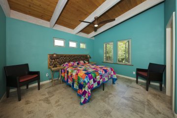 The large primary ensuite features a spacious walk-in closet, a split a/c and soaking tub in the bathroom to help you wind down after a long day. Down a central hallway are two additional rooms and a shared bath. Each room has private access to the breezy wrap around lanai and you'll be pleased to discover special touches of Hawaiian koa wood trim throughout that warms the space. Outside, a detached carport with oversized storage room makes for a great workshop or place to tuck away all your adventure gear!