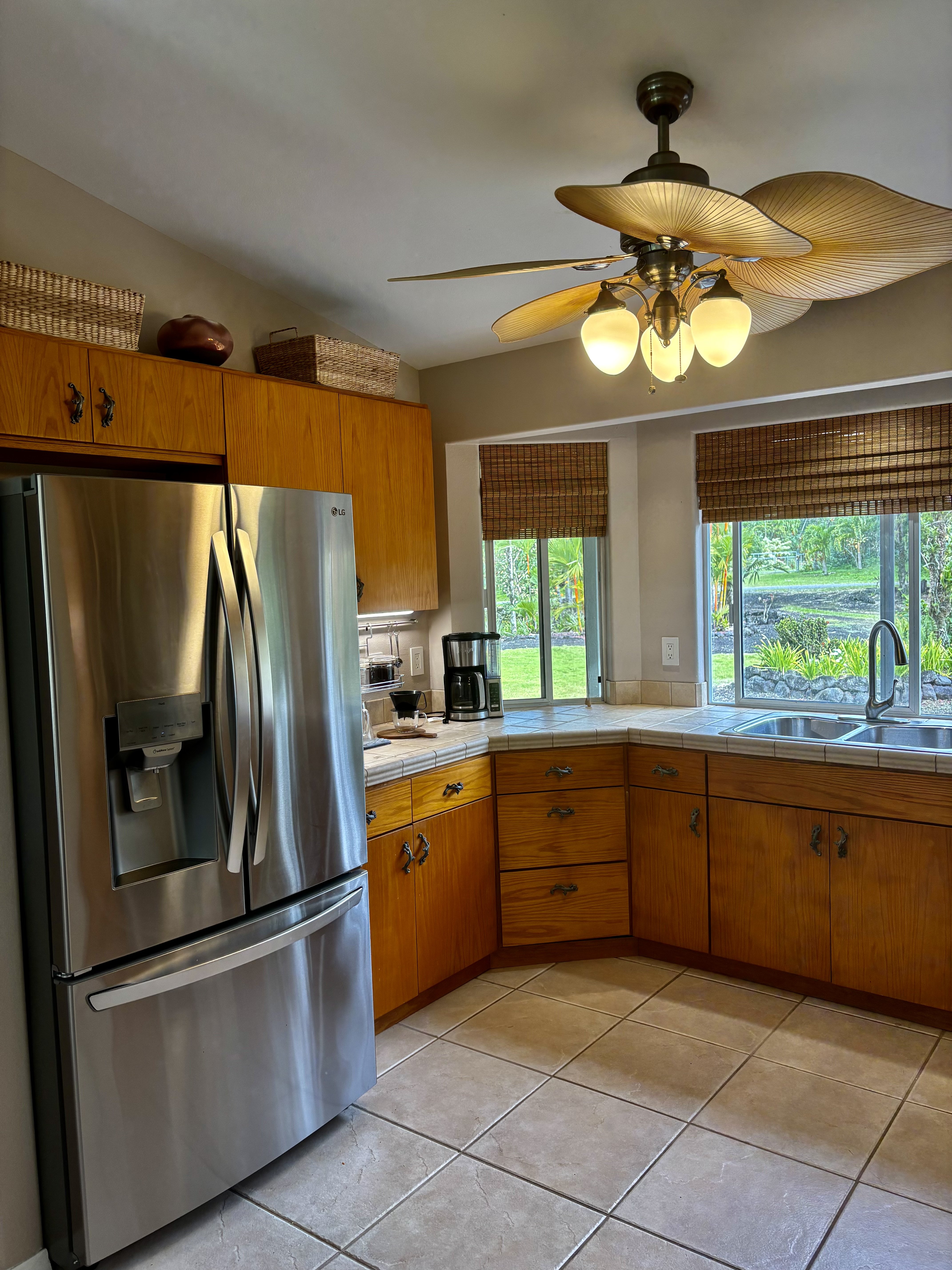If you are looking for a Fully Turn Key Beautifully Maintained comfortable 3 bedroom 3 bath home on the big island? Look no further for here it is! Property is located off of Kaloli on the dead end side ten blocks from the Ocean. This home has been thoughtfully & lovingly upgraded with so many bonus features including : *Tropical Ceiling fans with recessed lighting and surround sound wired in all main rooms, * Kitchen has all LG Appliances including built in microwave lots of counter space and cabinets. * 2 built in pantries including a big walk in pantry, * Lots of storage, cabinet and closet space with shelving. * Sliding glass doors leading to outside from living room and master bedroom. * Porcelain tile throughout home, * Front door entry is semi formal, tiled and covered with security spot lights, * Property is fenced on three sides with gated fencing on both sides of home to keep pets safe and secure, * lots of outdoor patio area area including huge carport area adding more space. **The best part is Home is Fully Turn Key providing everything you need to comfortably move in including linens, kitchenware, tools, riding lawn mower, generator and more. Yard has been well maintained and landscaped with chicken coop, storage sheds and greenhouse. Yard hosts a huge Mango tree and bananas as well as many decorative flowering plants. Lots of room for new owner to add gardens, fruit trees and more. Property comes with riding mower and 3 trailers: 3rd trailer is just for the 25 gallon sprayer perfect tools for yard maintenance as well as three compost bins for the avid gardener.. * All four corners still have original pins and are easily identified.This area is close to Keaau and Pahoa Villages both areas offer shopping, schools, churches, medical services and more. Hilo Town is approx 20 minutes away. For more information please visit www.hppoa.org