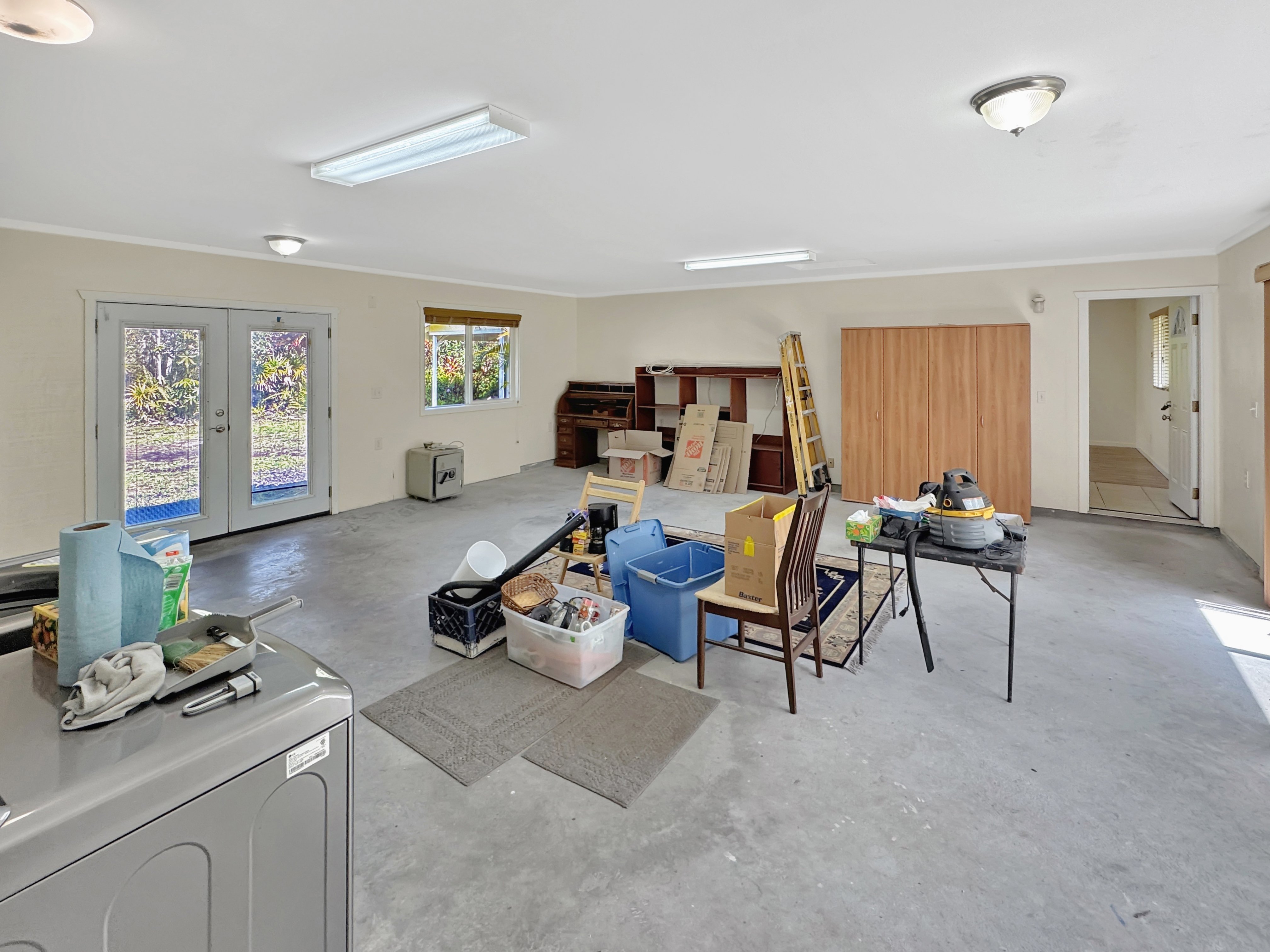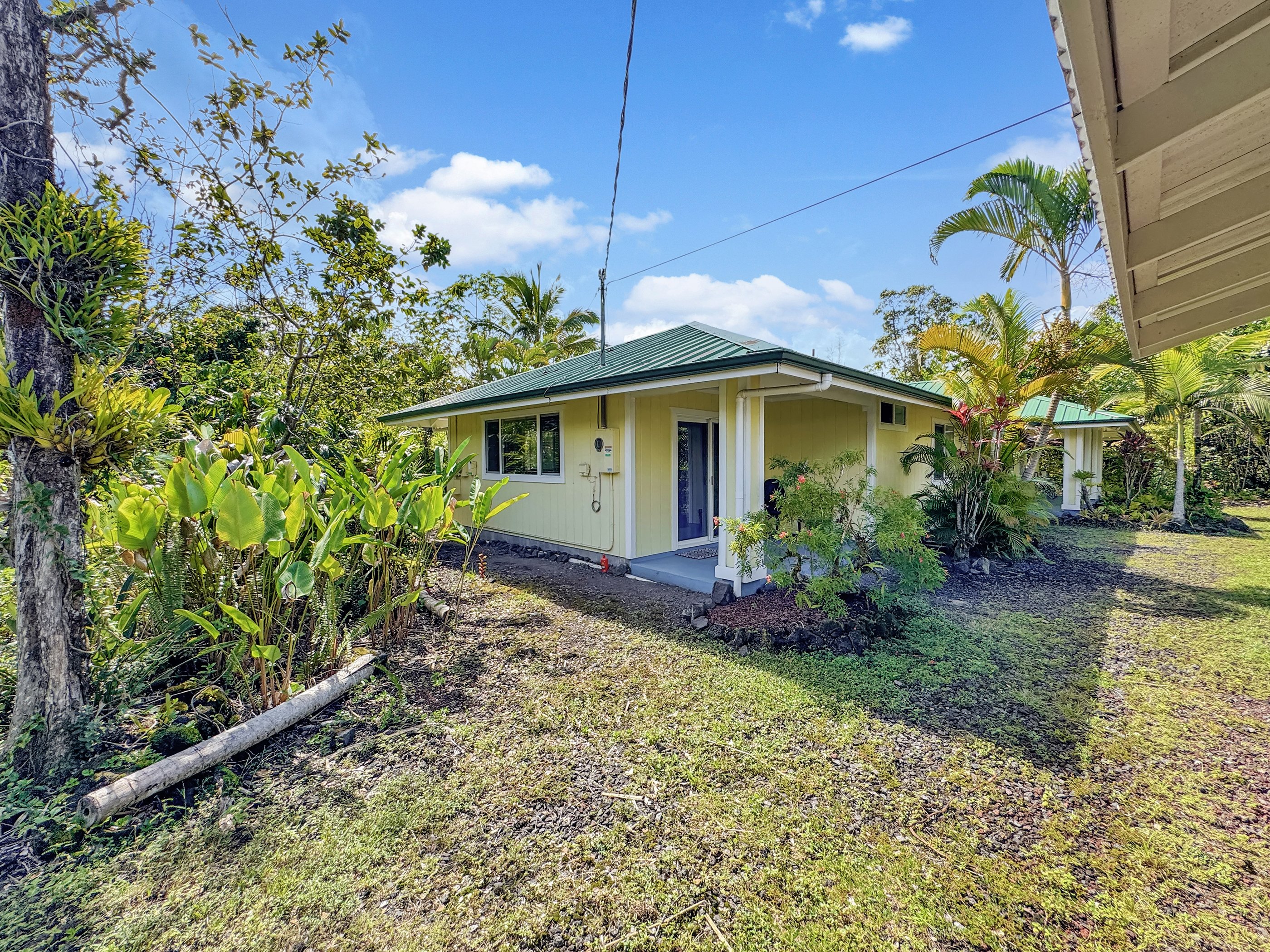 Nestled on a lush one-acre parcel in the serene Hawaiian Paradise Park subdivision, this charming three-bedroom, two-bathroom home on 11th Avenue offers a perfect blend of tropical tranquility and modern convenience. Step through the secure front boundary, featuring a stately rock wall and automatic gate, and discover a private oasis brimming with ornamental plants and a bountiful array of fruit trees, including coconut, avocado, guava, lychee, starfruit, lemon, cacao, and various citrus varieties—ideal for farm-to-table living right in your backyard.The thoughtfully designed single-level residence boasts a versatile layout, with two cozy bedrooms and a full bathroom on one side, providing ample space for family or guests. At the heart of the home lies a spacious converted carport, now transformed into a welcoming living area that seamlessly connects the indoors with the island's natural beauty. On the opposite side, a private one-bedroom, one-bathroom suite offers flexibility for extended family, a home office, or rental potential.Eco-conscious features elevate this property, including 18 photovoltaic panels for sustainable energy and a UV water filtration system ensuring pure, fresh water throughout. Whether you're seeking a peaceful retreat or a productive homestead, this Hawaiian gem invites you to embrace the aloha lifestyle.Information herein deemed reliable but not guaranteed. Buyer and buyers agent to do their own due diligence on all pertinent facts