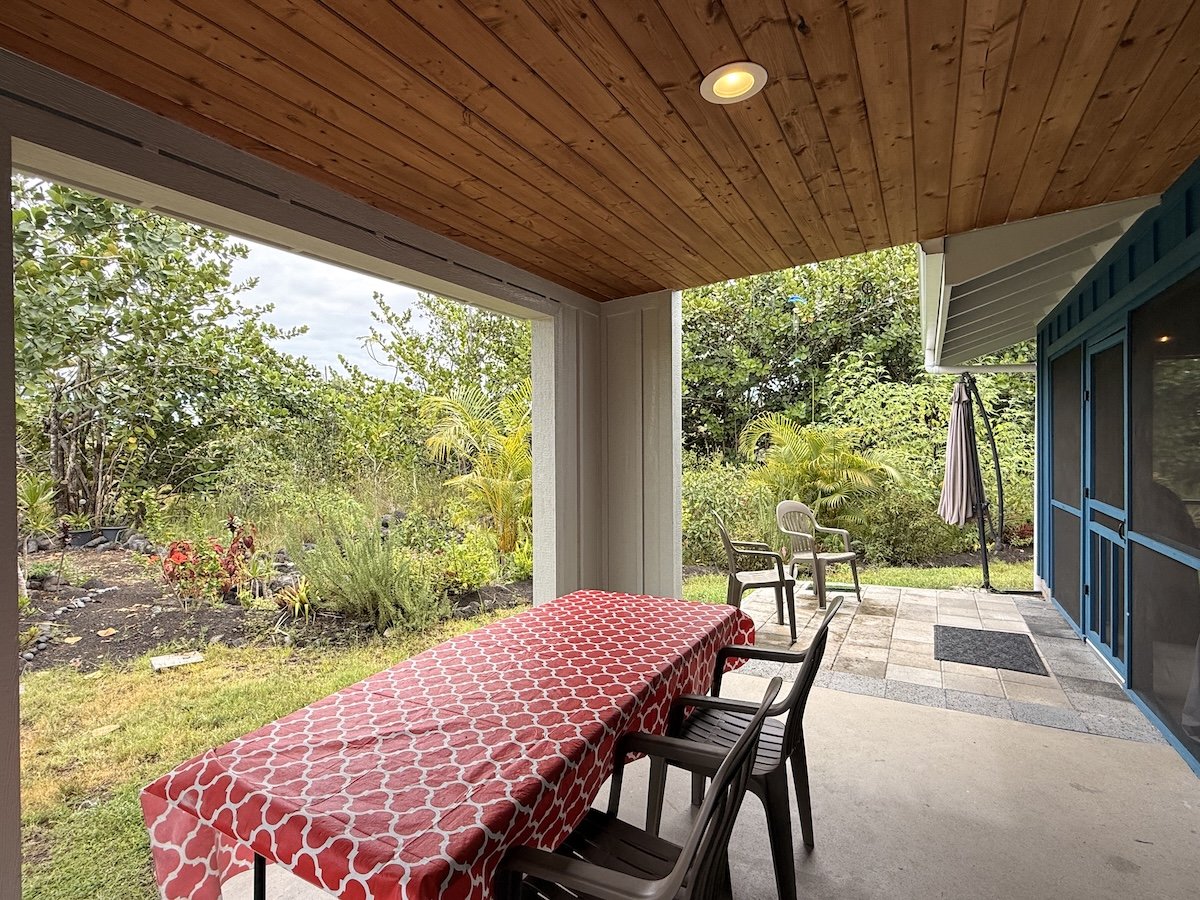 Built in 2023 by a well respected local contractor who is known for unique finishes and attention to detail, this affordably priced home in popular Hawaiian Paradise Park is packed with custom upgrades. Inside you will find floating cabinets, mango slab bathroom counter tops, and a custom kitchen complete with farmhouse sink, quartz counters, and nearly new stainless steel appliances. Sliding doors take you to the open air back lanai, or out to the expansive screened lanai, the perfect place for entertaining or just taking advantage of Hawaii’s indoor/outdoor lifestyle.