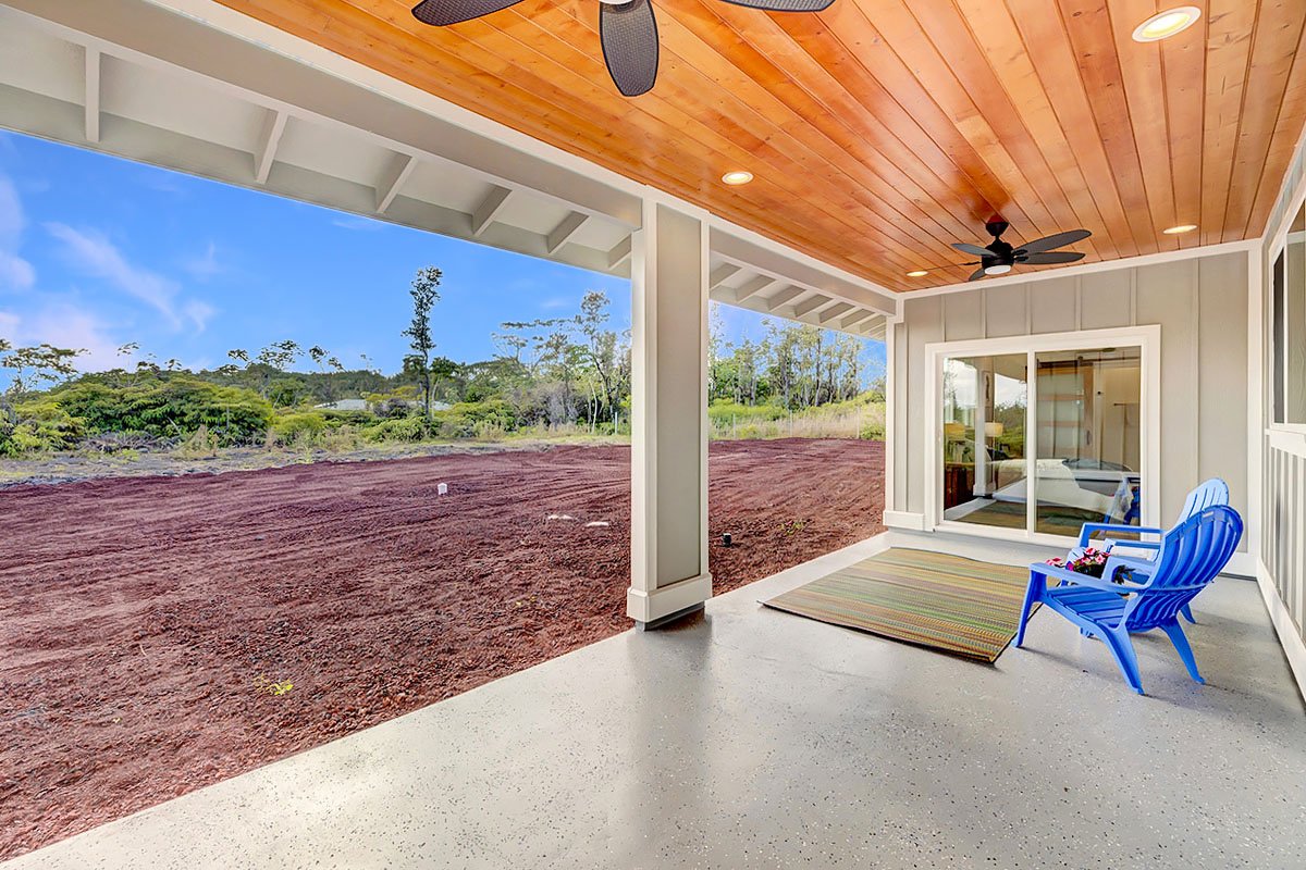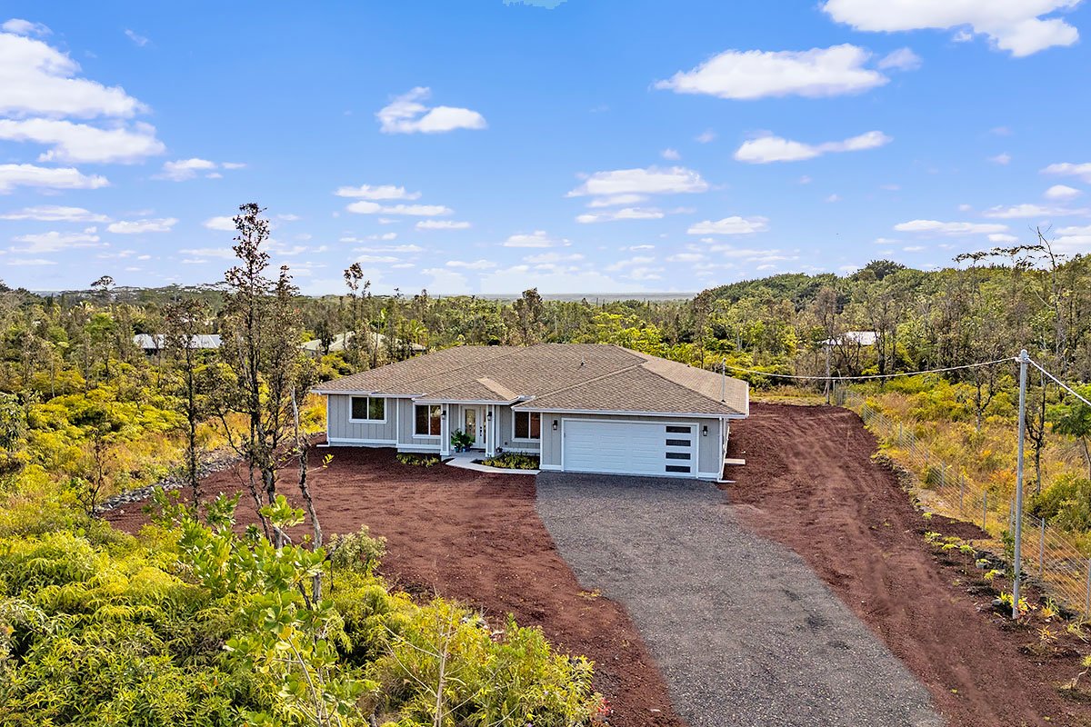 Discover an exceptional opportunity in the oceanside community of Hawaiian Paradise Park on the East side of the Big Island of Hawaiʻi. This custom-built, single-level home offers 1,973 square feet of thoughtfully designed living space on a private 1-acre lot along 2nd Avenue, surrounded by other quality custom homes and located just a short distance from the ocean. This inviting residence features 3 spacious bedrooms and 2.5 bathrooms. The primary suite is a true retreat, offering a large en-suite bathroom with a large walk-in shower accented by custom tile to the ceiling, private water closet area, and dual sinks. The generous walk-in closet provides excellent storage. The open, split floor plan enhances privacy and comfort, with the two guest bedrooms featuring large picture windows with greenery views, and one with a built-in desk area—ideal for guests or a home office. The well-appointed kitchen showcases shaker-style wood cabinetry, stainless steel appliances, quartz countertops, and a large island with pendant lighting and bar seating, making it perfect for everyday living and entertaining. There is an extra-large panty you will love! Interior features include nine-foot walls with soffit ceilings, tongue-and-groove pine ceiling accents, recessed lighting, and durable vinyl and ceramic flooring throughout. Step outside to a large covered back lanai, offering a peaceful space to relax and enjoy the surroundings. Practical amenities include a spacious attached two-car garage with additional storage, a finished floor and a 220-volt electric charger. There is a large, dedicated laundry room with more storage. The home is serviced by a private well with UV water filtration, features Certified Presidential Shingle roofing for longevity, and Smart Board siding for durability. The expansive one-acre lot provides a blank canvas to create your own tropical oasis while enjoying proximity to the ocean and the lifestyle Hawaiian Paradise Park has to offer.