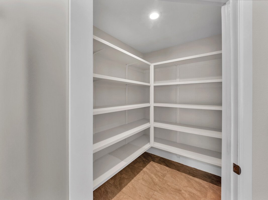 Step inside to discover an inviting open-layout, highlighted by vaulted ceilings that create an airy, spacious feel. The kitchen is a chef's delight, featuring elegant Quartz countertops, soft closure drawers, and a suite of Kenmore appliances including a range, refrigerator, and dishwasher. A large walk-in pantry offers ample storage for all your culinary needs.