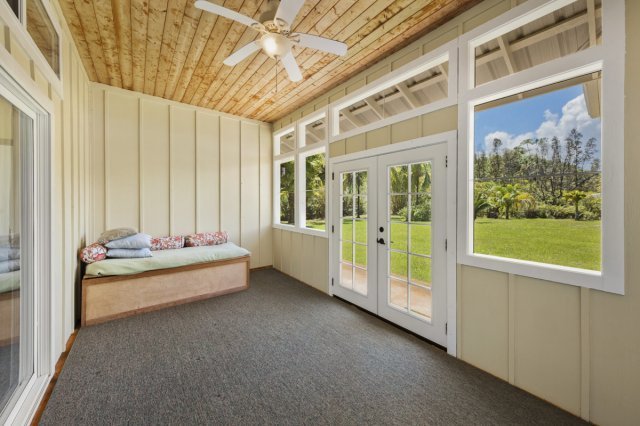 Welcome to your dream home in Hawaiian Paradise Park’s sought-after “sunbelt” —just three blocks from the ocean! This move-in-ready, custom-built home is nestled on a fully landscaped 1-acre lot with a gated entrance framed by striking lava rock pillars and a palm-lined winding driveway that ensures both privacy and a grand sense of arrival.Designed for both comfort and function, the impeccably maintained 2-bedroom, 2-bath home features a desirable split floor plan with spacious ensuites on opposite sides of the home—perfect for added privacy. The newly renovated kitchen offers sleek modern finishes, generous counter space, an island for prep or casual meals, a pantry, and stainless steel appliances including a French door refrigerator, slide-in gas range/oven, dishwasher, and in-home laundry.Bright and breezy, the home features 10-ft ceilings, clerestory windows, 39 brand new window panes, ceiling fans, and polished concrete floors that stay cool year-round. A flex space off the living area offers versatility for an office, hobby room, play space, or potential third bedroom. The sunroom serves as a seamless indoor-outdoor transition, perfect for relaxing or entertaining.Outdoors, you'll find mature tropical fruit trees, exotic palms, and a lush green lawn thoughtfully arranged to allow space for a future in-ground pool. A 500 sq. ft. detached outbuilding offers extra space for a workshop, art studio, or storage. Additional highlights include a private water well and a new on-demand water heater.Prime Location- Only a mile away from the stunning oceanfront park at the bottom of the subdivision—ideal for walks, picnics, fishing, biking, or seasonal whale watching. Conveniently located: 5 miles to Orchidland General Store; 8.7 miles to Keaau; 9.7 miles to Puna Kai Shopping Center; 16.5 miles to Hilo.This exceptional property offers the perfect blend of privacy, comfort, and coastal living. Shown by appointment. Virtual Staging.