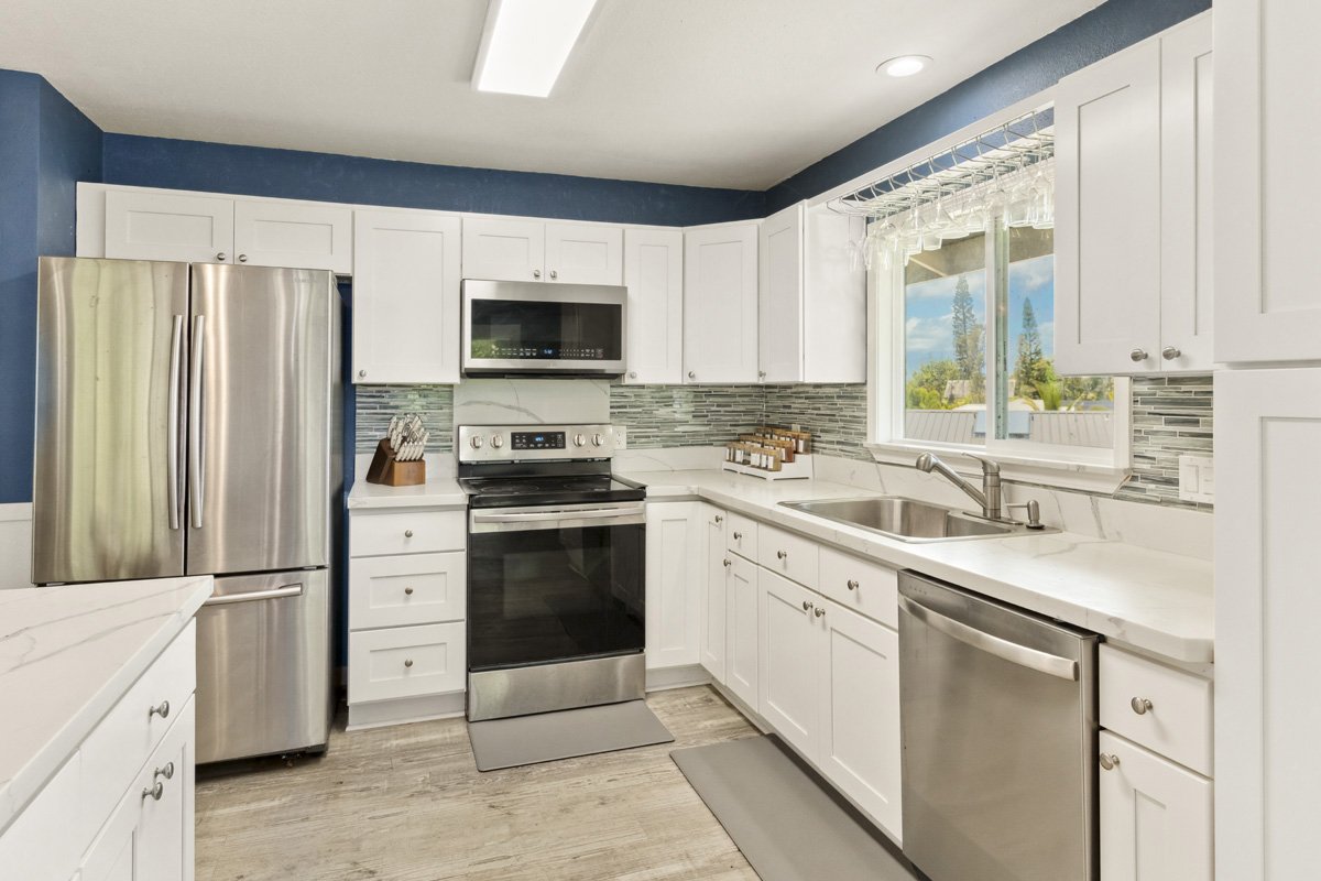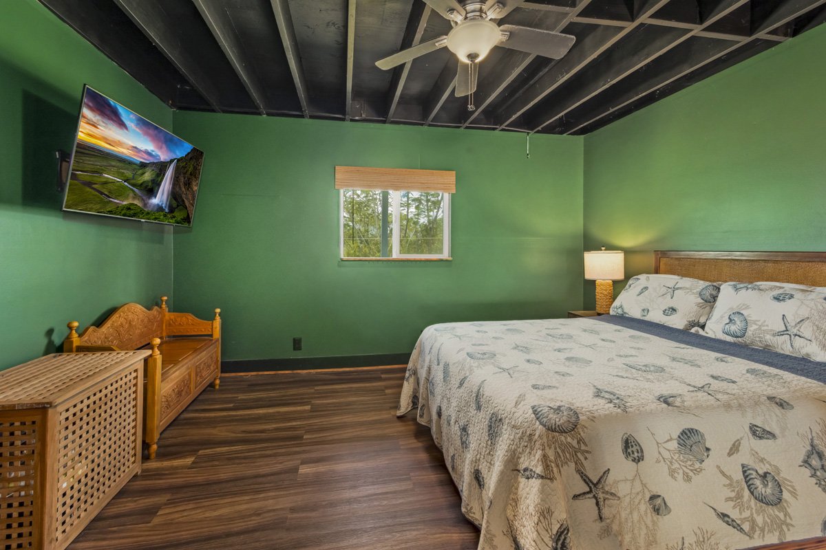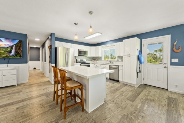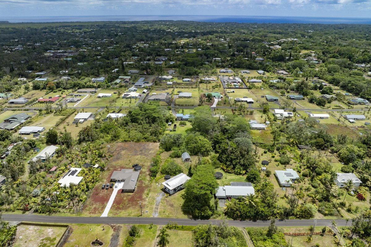 Located in highly sought after Hawaiian Paradise Park community, this turn-key 4 bedroom 3 bathroom residence showcases high end finishes with a light drenched open concept floor plan.A complete home remodel was performed in 2020 including roof, gutters, paint, windows, LPV flooring, appliances, counters & cabinets, bathrooms, lighting, water filtration, water heater.Located on 28th Ave, which is a paved road w/newer well maintained homes & quick access to the 130 thru-way, makes your commute to Hilo a breeze. The main level boasts 3 lg bdrms & 2 updated bathrooms. The open & bright kitchen boasts stainless steel appliances, marbled quartz countertops, a large prep-island & ample white cabinetry. Open concept great-room w/ LTV flooring, wall to wall windows w/a 3-sided wrap around lanai lets you breathe in the fresh air & tropical foliage....even a view of Mauna Kea on clear days! The lovely primary en-suite includes a dual sink vanity & wall length closet space.The ground level features a newer Ohana w/a private entrance boasting 1 bdrm & 1 bath...perfect for guests, multi-gen living, long term rental income or a hosted short-term vacation rental (STVR history available). A separate laundry room adjacent w/ brand new GE Profile high-end washer/dryer & another separate finished shop-closet that securely locks to store your valuable tools. An oversized two car extra deep & tall carport w/plenty of room for a gym, or host parties, Hawaiian style...in the carport!Partially off-grid, with a water catchment system, county power, and 408 sq ft greenhouse makes this an ideal property for those seeking a more self-sufficient economical lifestyle without giving up modern comforts. The serene acre is partially cleared allowing room to expand....build an additional dwelling unit/Ohana, sports court or self-sustaining garden. Minutes to Kea‘au & a short drive to Hilo for beaches, shopping & the airport. Plus EcoShield bi/mo pest contract!