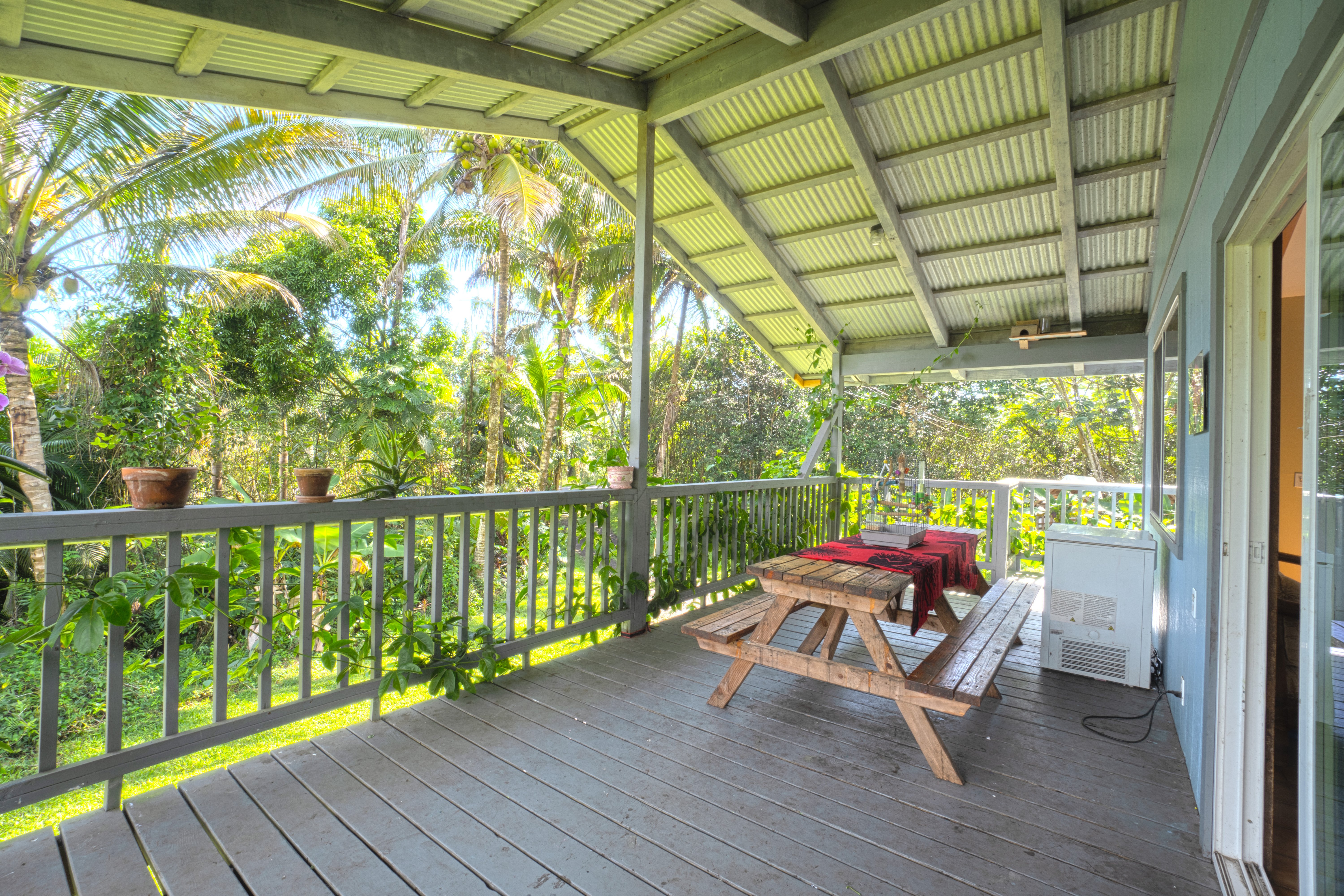 Nestled at the top of a knoll on an acre of land this two-story home is located in the middle of Hawaiian Paradise Park and surrounded by the privacy of old growth jungle. With three bedrooms and two bathrooms upstairs and two additional (Unpermitted) bedrooms downstairs, there is plenty of room for large and extended family or guests. Upstairs has an open floor plan with a large kitchen, living room, dining area, and connecting lanai. The kitchen features stainless steel appliances, new countertops, and plenty of cupboard space. Out on the lanai is a wonderful place to relax, watch the sunrise or sunset, listen to the birds, and occasionally the ocean. A five minute drive will take you directly to the shore with various trails and tide pools to explore. Bathrooms have been remodeled with new flooring, toilets, vanities, and fresh paint. The whole house has been freshly painted inside and out. Downstairs is a carport area including a hot tub. There is also a laundry/workshop area with space to expand to a sixth bedroom. Windows and doors have already been purchased and can be included with the sale. Two large rooms have already been fully finished in the downstairs and both have separate entrances. Outside there are numerous edible plants including banana, orange, butter avocado, and coconut. There is also a chicken coop with a fenced chicken run.Per Nanawale Community Association there is a $435/year Road Maintenance Fee and a one-time $300 transfer fee per lot.