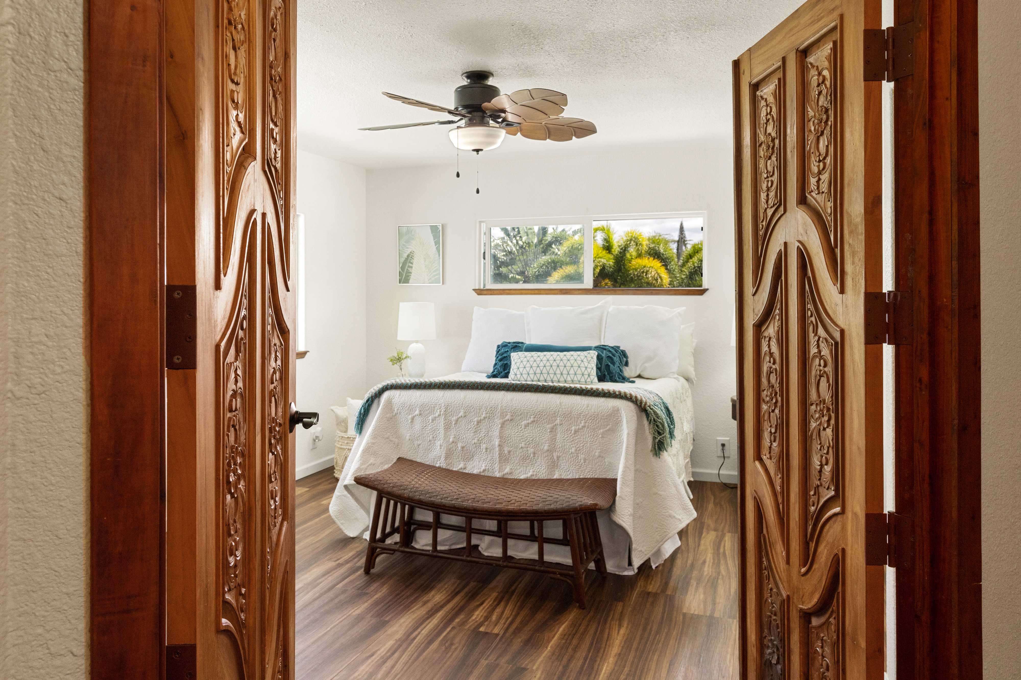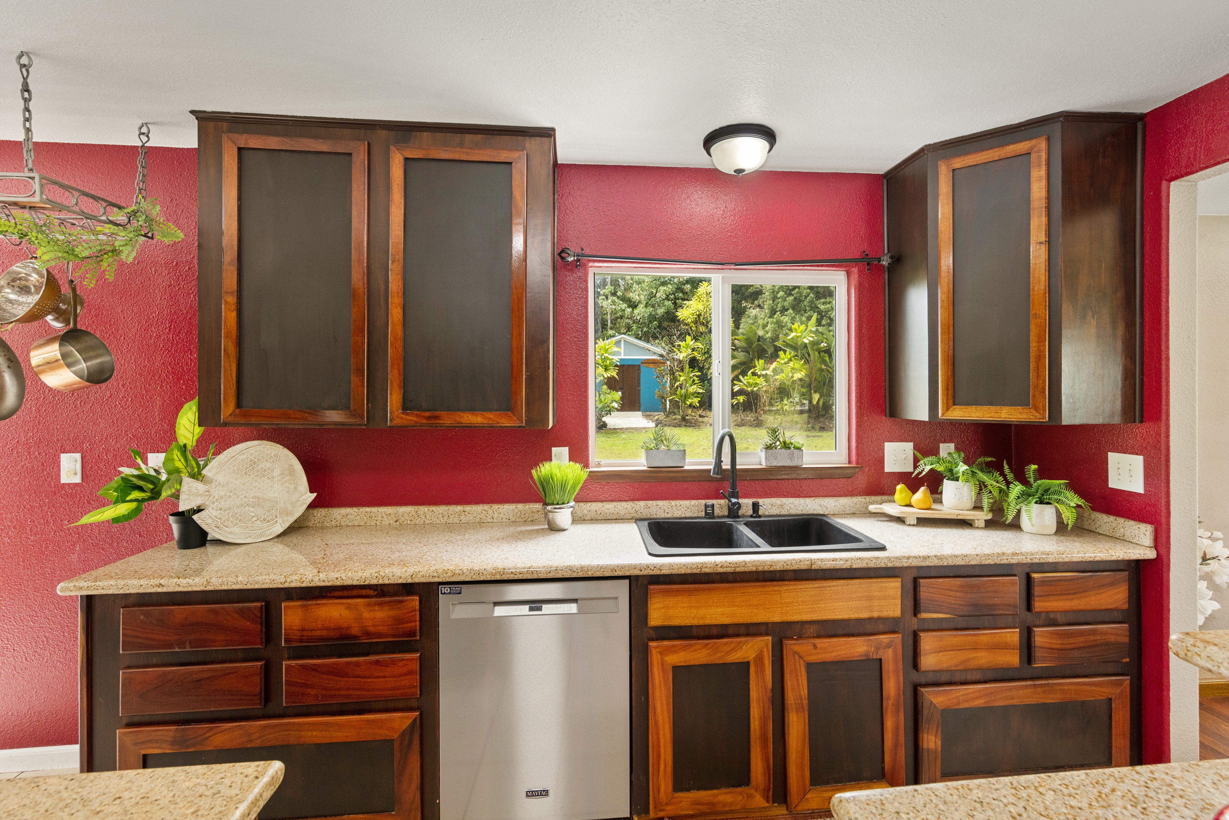 Discover your tropical retreat with this spacious 4-bedroom home poised on a beautiful landscaped residence in Hawaiian Paradise Park. This property offers a serene escape, surrounded by the natural beauty of East Hawaiʻi for those seeking a tropical island lifestyle.Your gated sanctuary is enveloped by tropical flora, mature landscaping, and an abundance of fruit trees and shrubs, including lychee, key lime, lime, mango, mountain apple, pineapple, Meyer’s lemon, clementine, coconut (including Samoan varieties), apple banana, and Cavendish banana. Ornamental flowers and trees such as puakenikeni, hibiscus, plumeria, hapu’u fern, Christmas palms, fan palms, and three varieties of Thai leaves for a personal edible and aesthetic garden.Fully fenced with stylish rock walls, the generous 1-acre lot ensures privacy and offers ample space for outdoor activities, gardening, or simply enjoying your home’s tranquil ambiance.Inside, the home’s open layout features a welcoming entertainment-size living area. The spacious kitchen connects seamlessly to a cozy breakfast den, ideal for casual meals away from the living room. Feature amenities include UV-filtered well water (no catchment), on-demand hot water, and a custom shed for storage or projects.Daily conveniences are just a short drive away. The Puna Kai Shopping Center and Keaau Center provide grocery stores for all your essentials. Nearby dining options range from authentic Hawaiian plate lunches to classic pizza, zesty Thai cuisine, and eclectic fusion flavors from local food trucks, offering a world of tastes minutes from home. For more variety, Hilo, just 30 minutes away, features shopping, home improvement stores, dining, and cultural attractions. Nature lovers can explore Hawaiʻi Volcanoes National Park, approximately 40 minutes away, with its breathtaking landscapes a natural hikes.