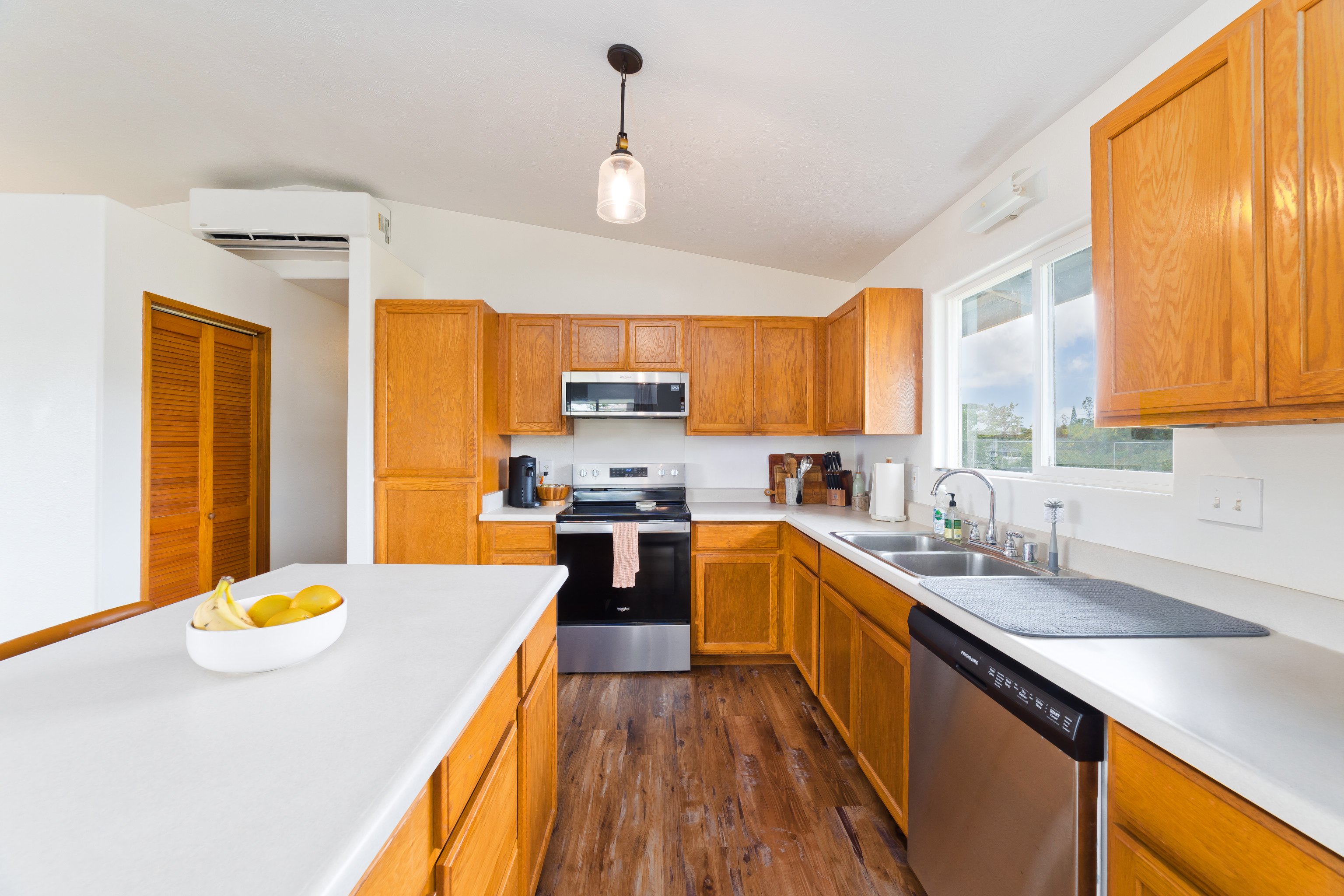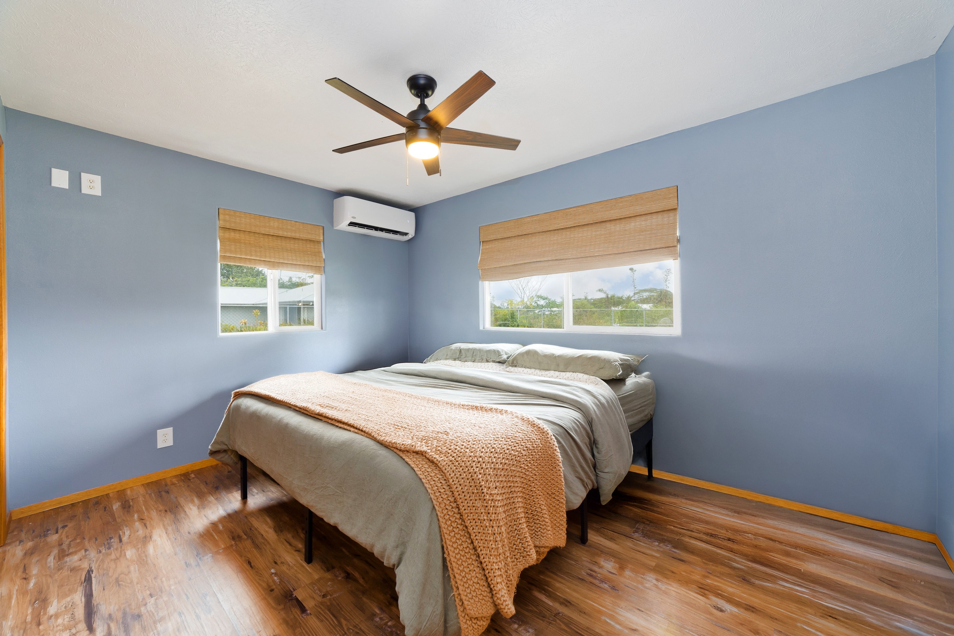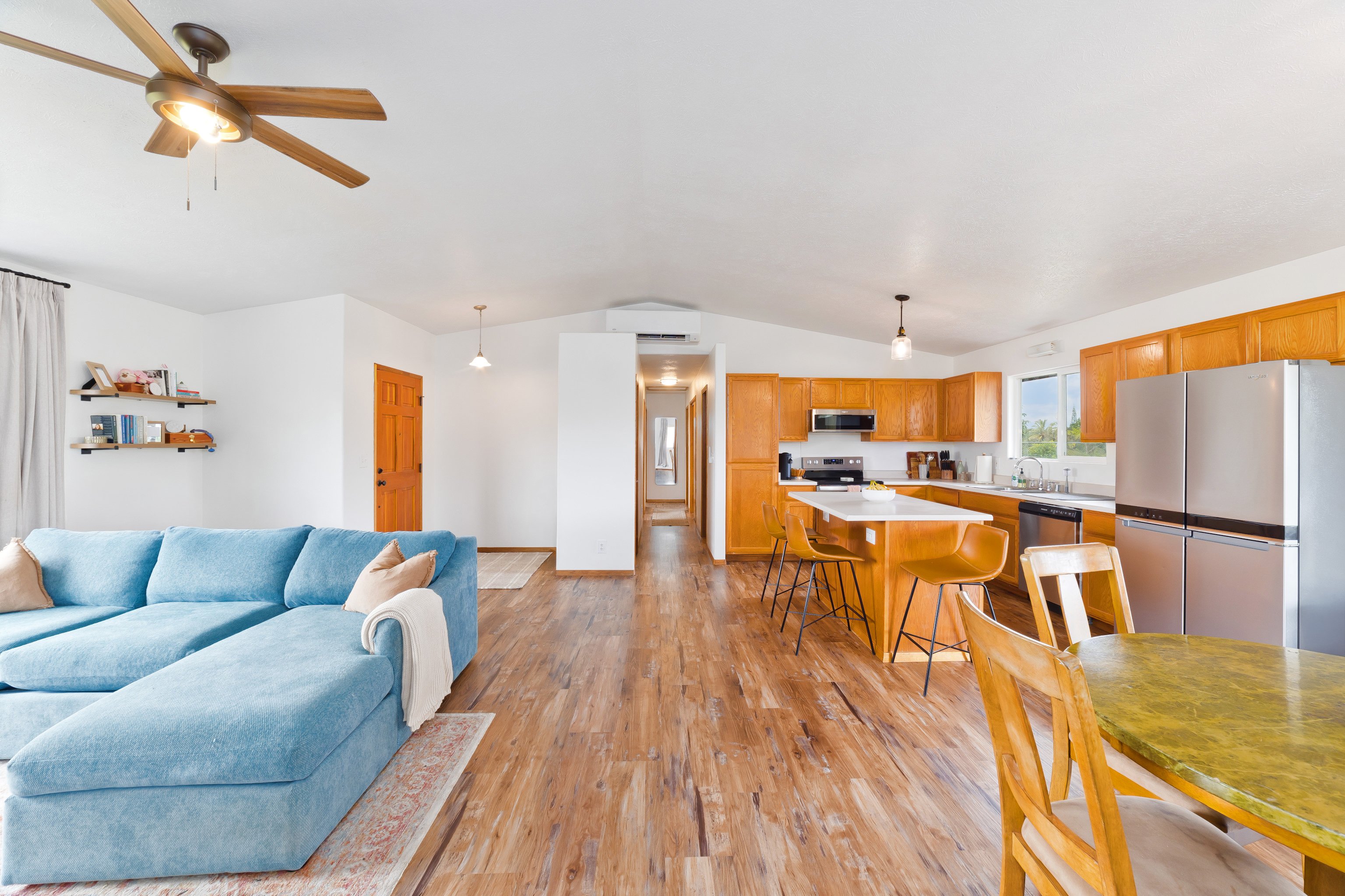 Welcome home to this beautifully maintained 3-bedroom, 3-bath residence on 8th Avenue in the desirable Hawaiian Paradise Park subdivision. This home offers comfort, convenience, and the true essence of island living — move-in ready and thoughtfully updated throughout.Step inside to find upgraded flooring and a bright, open layout designed for entertaining. Split AC units in the main living areas and bedrooms keep the interior cool year-round, while a freshly painted exterior lends a modern touch that blends perfectly with the tropical surroundings.Outside, you’ll appreciate the previously cleared acre and fully fenced area in the back-yard, ready for you to create your dream garden or even build an Accessory Dwelling Unit (ADU) if you choose. Stakes are visible, and there are no large trees to worry about — offering both safety and flexibility for future expansion. The laundry area and additional bath are conveniently located just off the carport, perfect for easy cleanup after yard work or island adventures.Recent updates include a new catchment liner and cover plus a freshly coated roof for added peace of mind. Nestled among other well-maintained homes and located just off the pavement near Paradise Drive, this property provides an ideal blend of privacy and community.This HPP gem is truly a must-see — beautifully updated, perfectly maintained, and ready for your next island chapter.