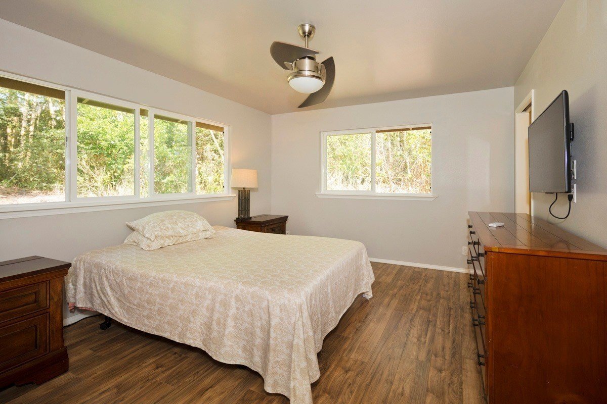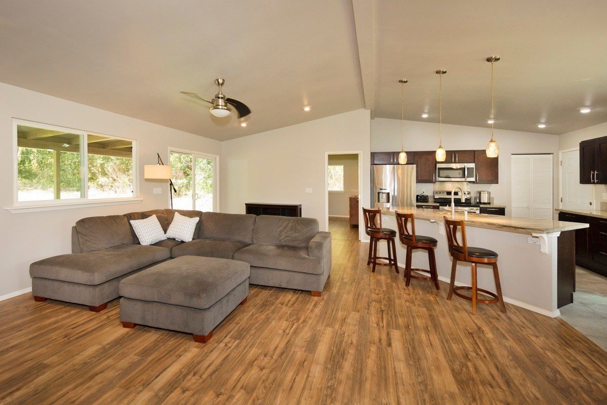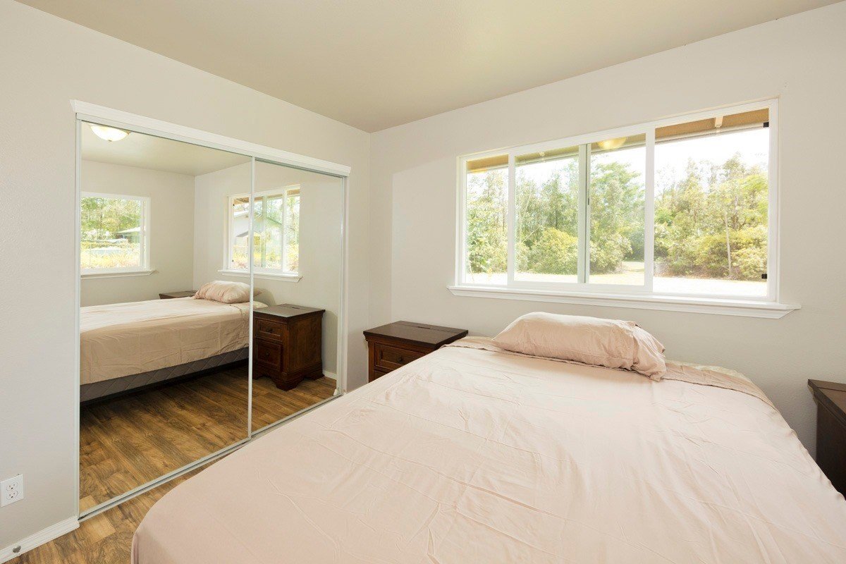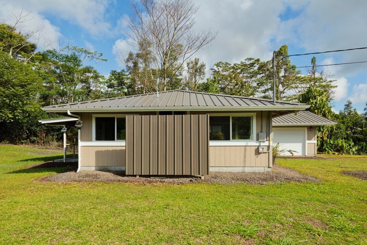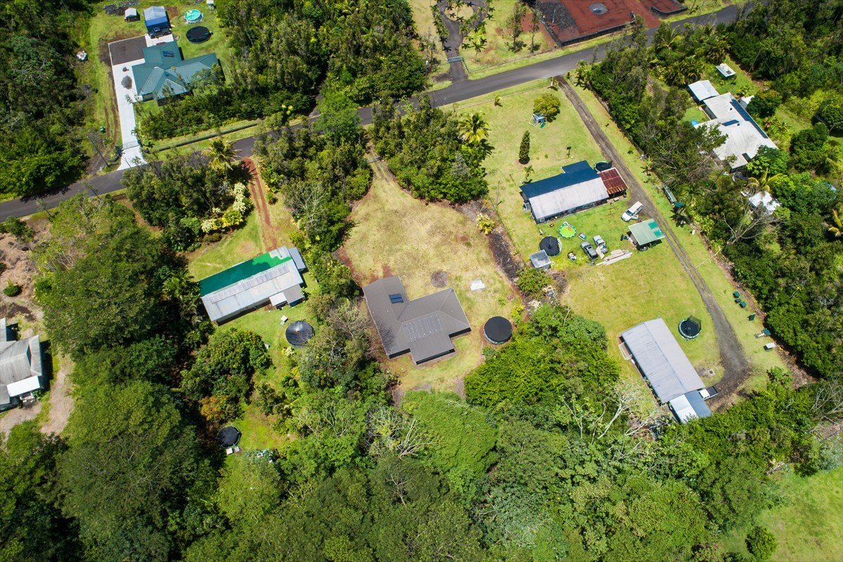 Lovely single-level home in a great location of Hawaiian Paradise Park. The home has a large, inviting open floor plan with a sizable kitchen island that includes seating and cabinetry. The kitchen is a focal point with elegant granite countertops and stainless steel appliances. Included is a convenient pantry and plenty of cabinet space. Modern lighting provides a tasteful, relaxing atmosphere.The separate master bedroom suite has a spacious spa-like master bath and a beautiful tiled walk-in shower & large soaking tub. Two guest bedrooms are located on the other side of the home with a guest bath.Also included with the home is the furniture. Bring your suitcase and move in! In addition there is a newer riding lawnmower and generator (see photos).There is also a lava tube on the property. For liability reasons, listing agent must be present during showings.