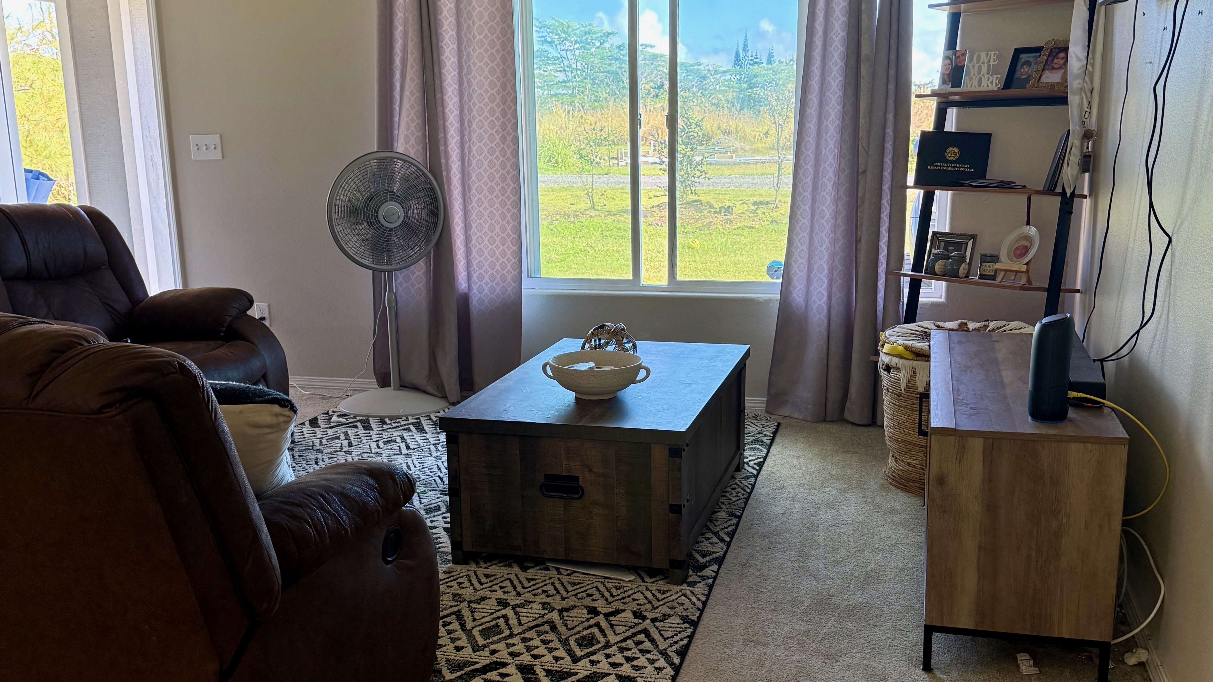 This HPM kit home is located on 6th Avenue in Hawaiian Paradise Park, just a few houses down from Kaloli Drive, offering a desirable location in the HPP Sunbelt with refreshing ocean breezes. The property features a cleared and graded lot, with a wire fence enclosing the backyard only—creating a contained space ideal for pets or little ones. A thoughtful portion of the lot has been hand-cleared to preserve natural beauty, including approximately ¼ acre of ʻōhiʻa forest retained in the rear-right portion of the property, as well as ōhiʻa maintained along the front right-of-way. The remainder of the lot is open and ready for additional landscaping, gardening, or future development, offering a nice balance of usable space and native surroundings. This spacious 3-bedroom, 2-bath home offers a comfortable and practical floor plan. The open-concept living room flows into the kitchen and dining area, creating a bright and functional living space. The living room and bedrooms feature carpet, while the kitchen and dining area are finished with durable vinyl flooring. The bedrooms are generously sized, making the home well-suited for full-time living, extended stays, or rental use. Built approximately five years ago, the home still feels fresh and modern, offering ease of maintenance and everyday comfort. Additional features include a 2-car garage, providing secure parking and extra storage. With its excellent Sunbelt location, preserved ʻōhiʻa, thoughtful layout, and room to expand, this property presents a great opportunity to enjoy island living in a well-established neighborhood.