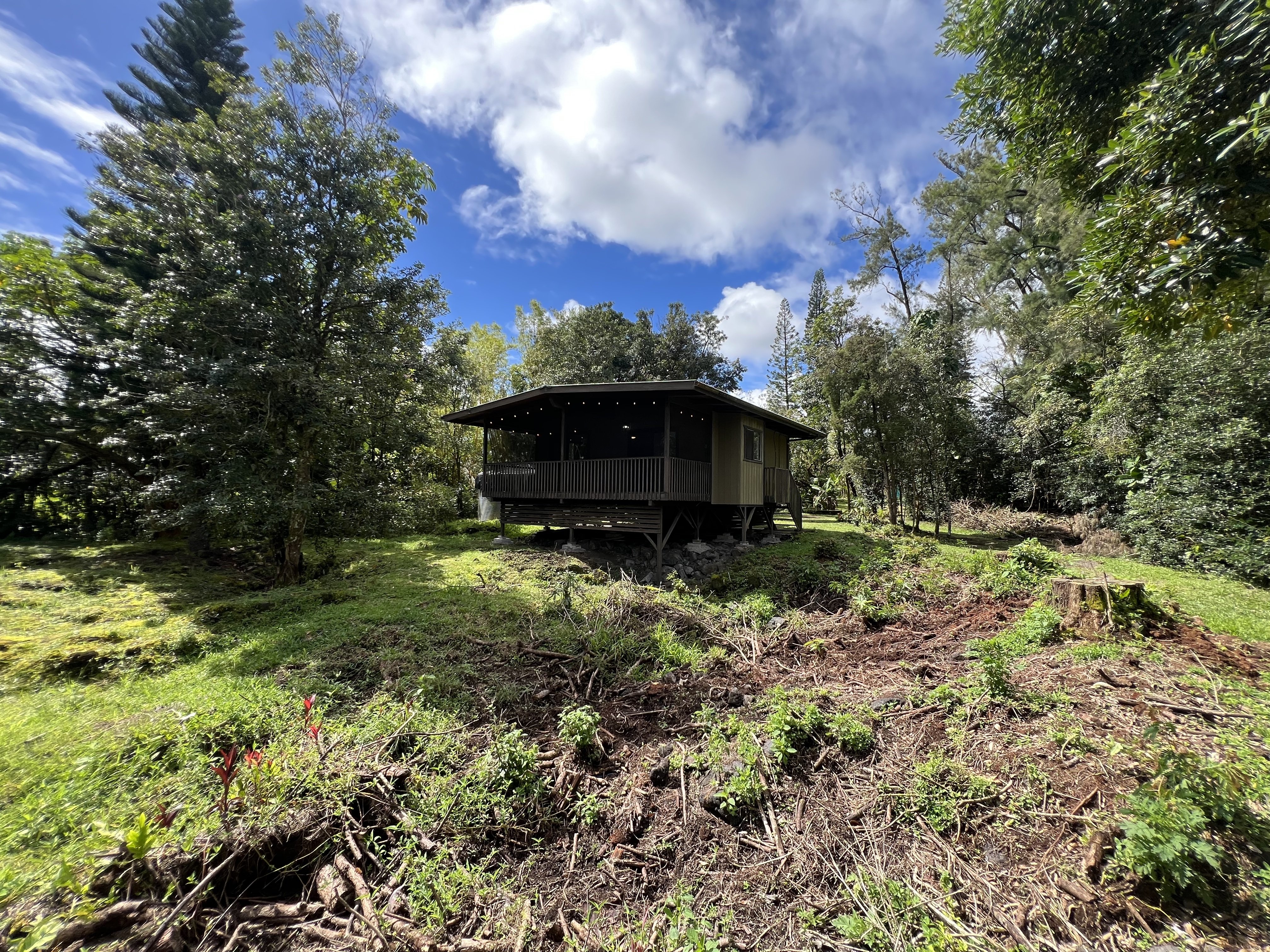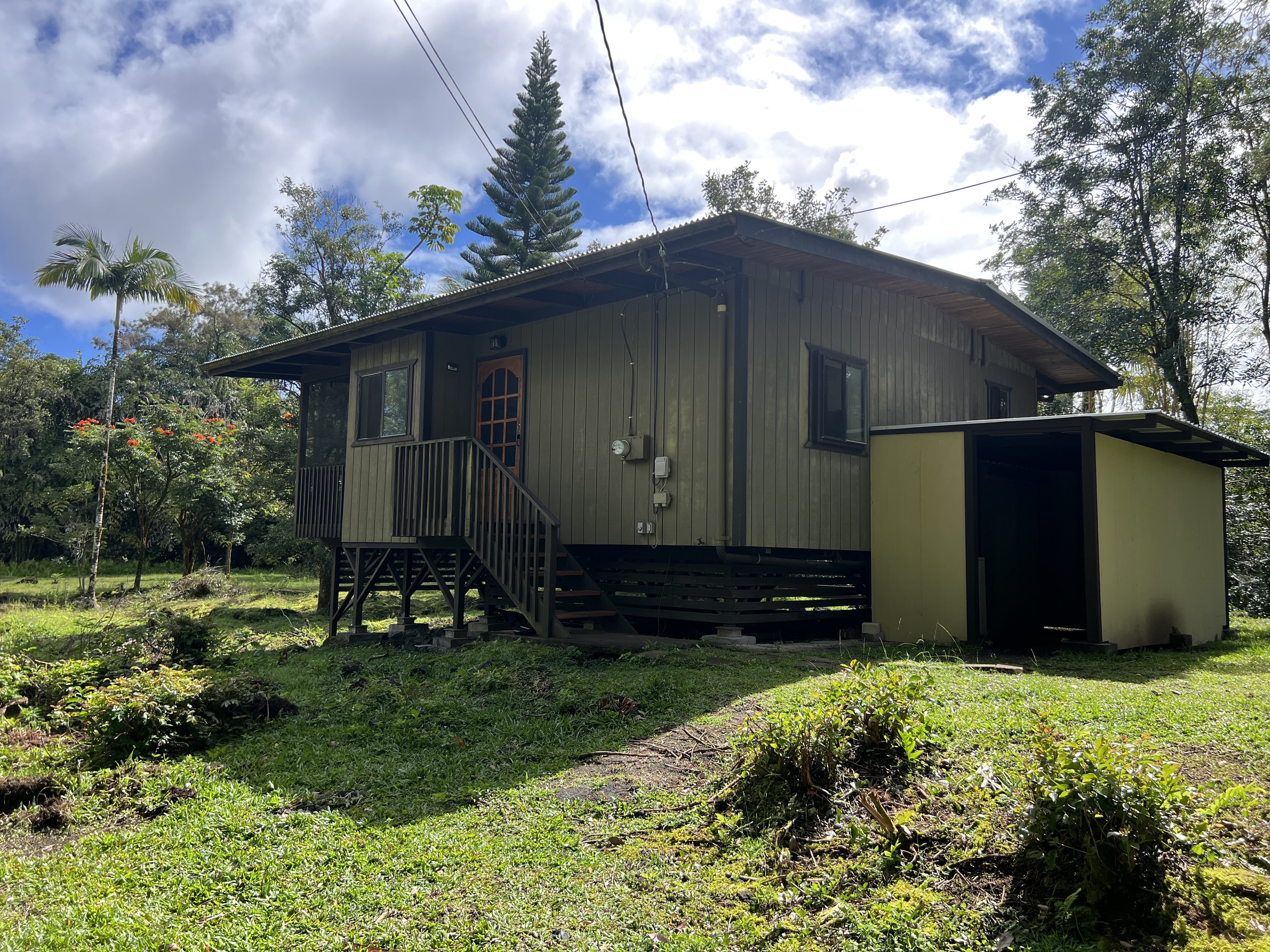 Charming Jungalow Home in Hawaiian Paradise Park Nestled on a peaceful 1-acre lot in Hawaiian Paradise Park, this recently renovated home offers the perfect blend of modern amenities and tropical charm. Located on a quiet dead-end road off Maku'u Drive, this home provides 540 sq ft of interior space and 192 sq ft of lanai, making it an ideal retreat in a tranquil setting.2023 Renovations & Modern Upgrades include:The updated kitchen features new appliances, including a refrigerator, stove, dishwasher, and garbage disposal. Solid wood cabinets and butcher block countertops add warmth and style, while under-cabinet lighting creates a cozy atmosphere. A sleek kitchen faucet and contemporary light fixture complete the modern look. Vinyl plank flooring flows throughout the home, and fresh interior paint offers a clean, updated feel. The bathroom has been refreshed with a new sink, faucet, light fixture, and toilet for a modern touch.The home also includes important upgrades, such as a new hot water heater, Tilo’s water filtration system, and a new water pump. A 10,000-gallon water catchment tank was replaced just 1.5 years ago, ensuring a reliable water supply.Enjoy the outdoors on the screened-in lanai, perfect for relaxing or entertaining. The front and back lanai lights have been replaced, adding charm and functionality. The 1-acre lot offers ample space for gardening and sustainable living, all surrounded by the natural beauty of Hawaii.Conveniently located just 10 minutes from Pahoa and Kea'au, and 25 minutes from Hilo, this home is fully permitted and move-in ready. Whether as a vacation home, rental property, or cozy year-round residence, this home has everything you need.Seller offering $2000 Seller credit with full price offer! Inspection Report included in sale.