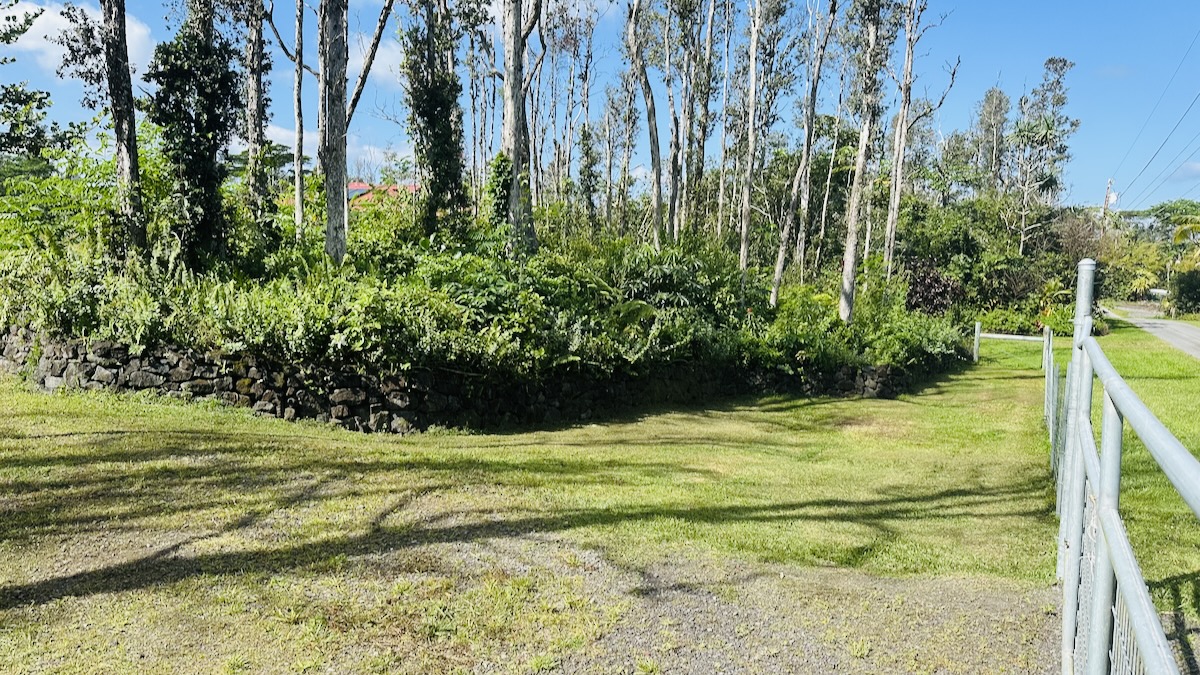 Own your own gorgeous 1 ac parcel so close to the ocean you can hear the waves crashing on the shore! Partially cleared this lot has driveway and flat a place for your new home. A carport is already in place to provide you with a shady place to work. Also on the property is a new (2.5 yo) catchment tank that provides you with water. Property is fully fenced and includes rock walls and several rock lined garden beds complete with white pineapple, mamaki, native Hawaiian Hibiscus and more. Located on a dead end road, there is little traffic and old growth Ohia tress provide some privacy from the road. Bring your dreams and your builder! Why wait?