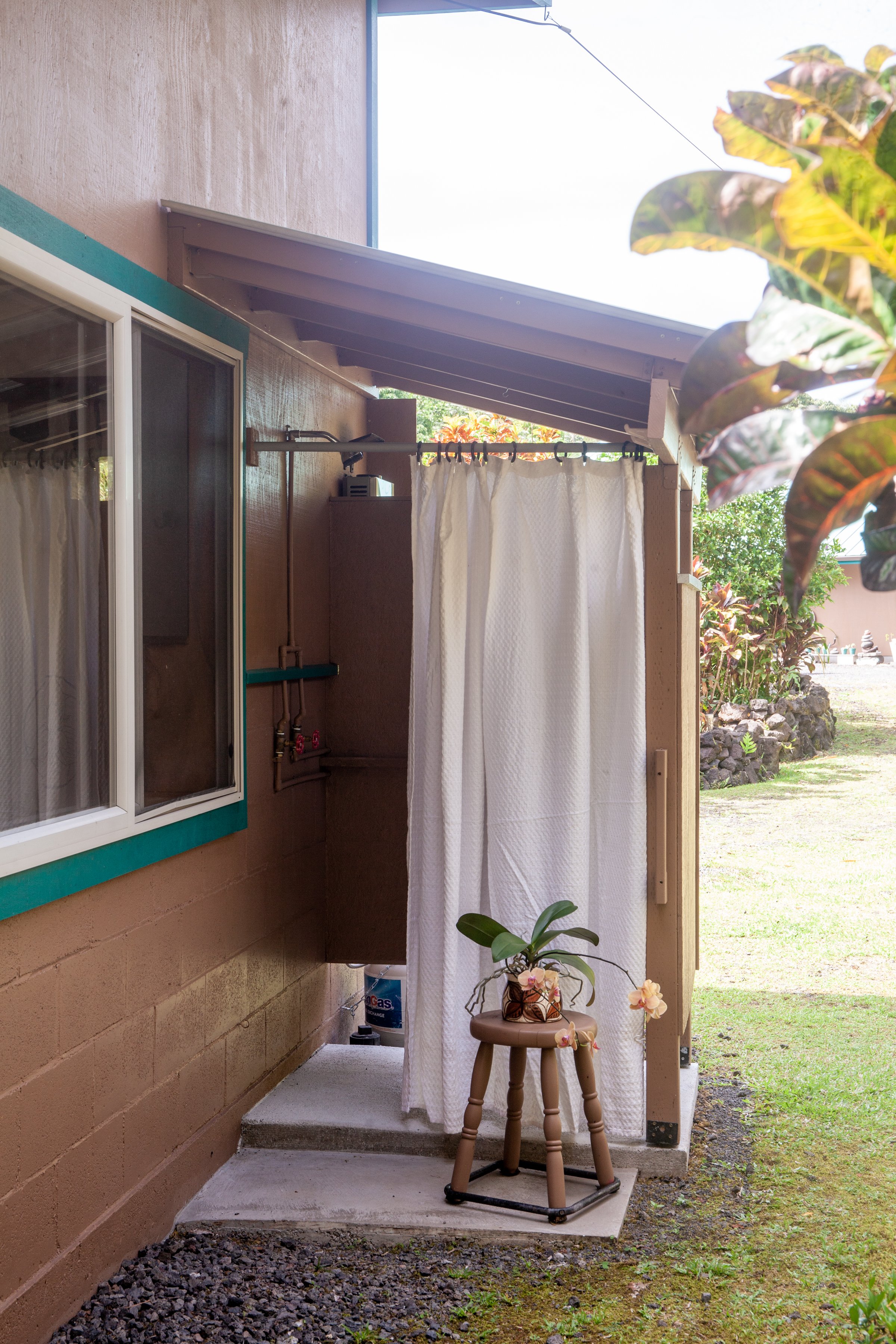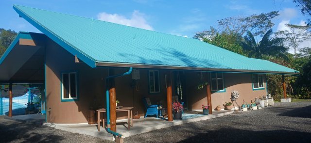 Price Reduced – Island Oasis Retreat Experience island living in this unique, artistically designed home located in Hawaiian Paradise Park’s sunny “sun belt.” Just a mile from the ocean and safely out of the tsunami zone (lava zone 3, fully insurable), this private retreat sits at the back of a landscaped, fully fenced 1-acre lot on a quiet dead-end road. The custom “clerestory” home features bamboo mat ceilings, Ohia posts, rounded front walls, and three lanais for relaxed indoor-outdoor living. The 1-bed, 1-bath layout includes a grand bedroom with soaring 15' ceilings, a clawfoot tub, outdoor shower, and an open kitchen/living space that flows onto a large lanai—perfect for dining and entertaining. Property highlights include: 1,847 sq. ft. slab foundation with wide eaves Carport + separate standalone carport 6,500-gallon water tank, freshly painted standing seam roof, new gutters Updated solar with inverter & lithium batteries (HELCO power available at the gate) Additional structures: Ohana (320 sq. ft., permitted): kitchenette, toilet, outdoor shower, solar + water. Shop (16’x20’, permitted): covered workspace, generator house, backup tank, screened room. A 12'x16' free standing screen room with laundry area. The fully fenced lot offers privacy and abundance with raised garden beds, a chicken coop, and a wide variety of tropical fruits—avocado, coconut, mango, lychee, citrus, cacao, cinnamon, cashew, breadfruit and more.