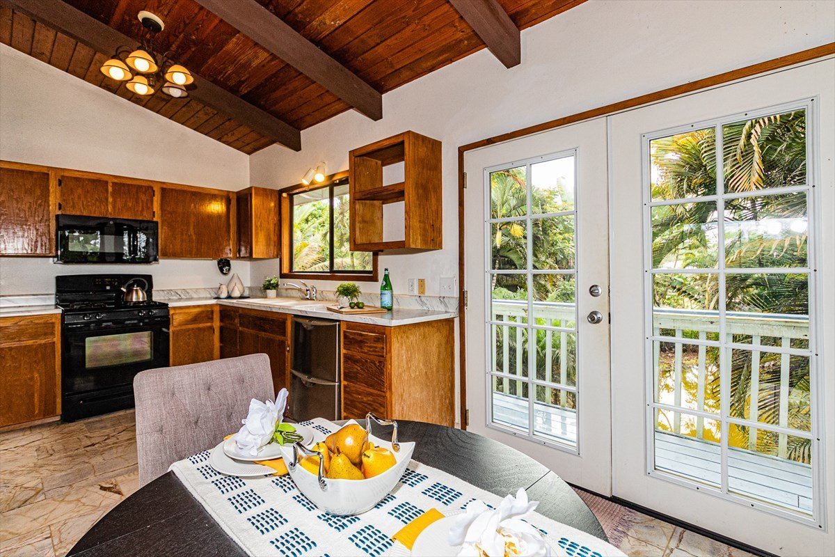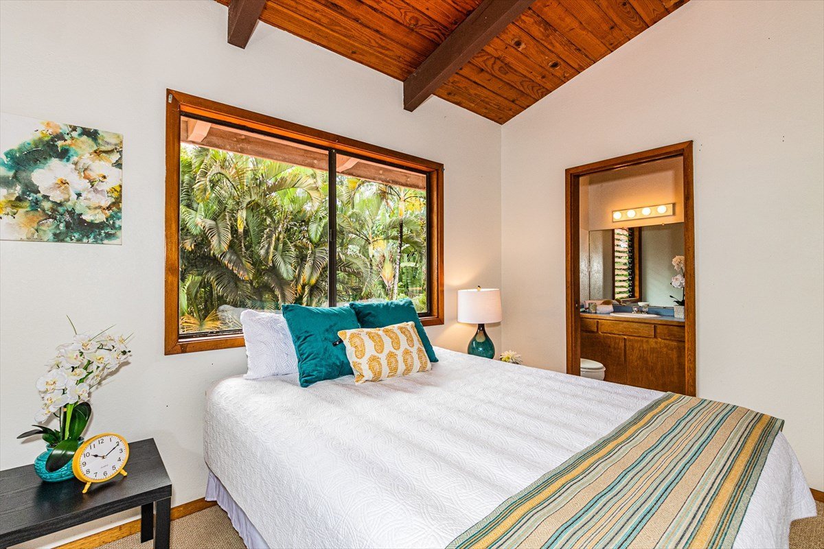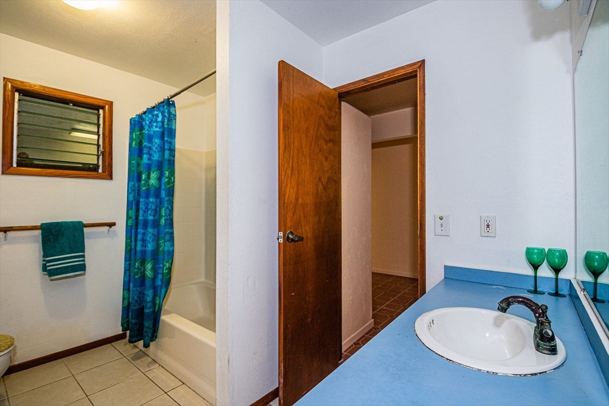 Multi-use property with 2 legal living areas offers the opportunity for extended family living or either short (hosted) or long term rental use. Priced almost $100,000 under assessment, the main dwelling features 5 bedrooms, a lower level family room, huge upper lanai, upgraded kitchen and new carpeting. With open beamed ceilings, the upper level also houses 3 bedrooms ,a large living room and a second laundry area (not currently used). The lower level master spans the width of the home and second bedroom/office along with a laundry room make this a flexible area that could be handicap accessible. Separated by mature tropical growth, a charming Ohana unit with bay window, full kitchen, living room, 1 bedroom and rear carport is located as you enter the property. Each unit is separately metered, has it's own catchment and wastewater system . Overall, it a well-developed property that offers superior privacy and large spaces. It's just waiting for a new owner to love it to it's full potential!