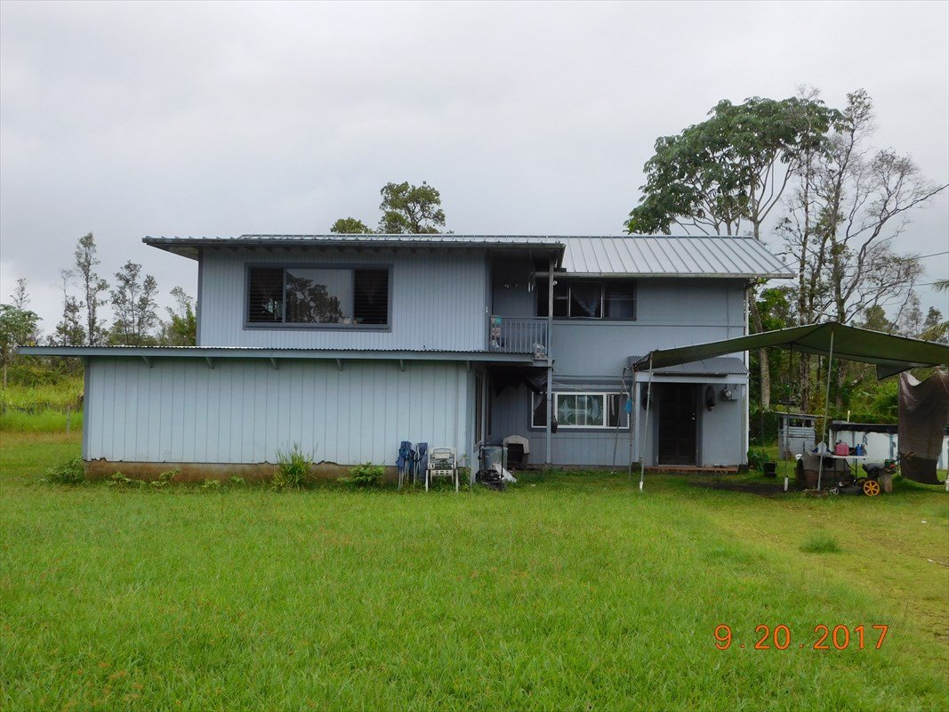Reduced for quick sale! This home is not to be missed. Over 3000 square feet of living area. 5 bedrooms with 3 bathrooms, several living spaces upstairs and down! Room to spread out! Upstairs bathroom and kitchen were updated in 2008. Downstairs bathroom floor was redone in 2008. Be sure to check out the great tub in the downstairs bathroom. New roof installed in 2011 and new lining and cover for catchment tank installed in 2015. A newer water heater was installed in June 2017 as well. Enjoy a cool evening around the wood burning stove downstairs and entertain your friends and family in the downstairs bar area. The home does need some TLC but is waiting to shine again for you! Home is conveniently located close to Hwy 130 for easy access to shopping and ammenities. Just a few short miles from Keeau and Pahoa and 20 minutes from Hilo.