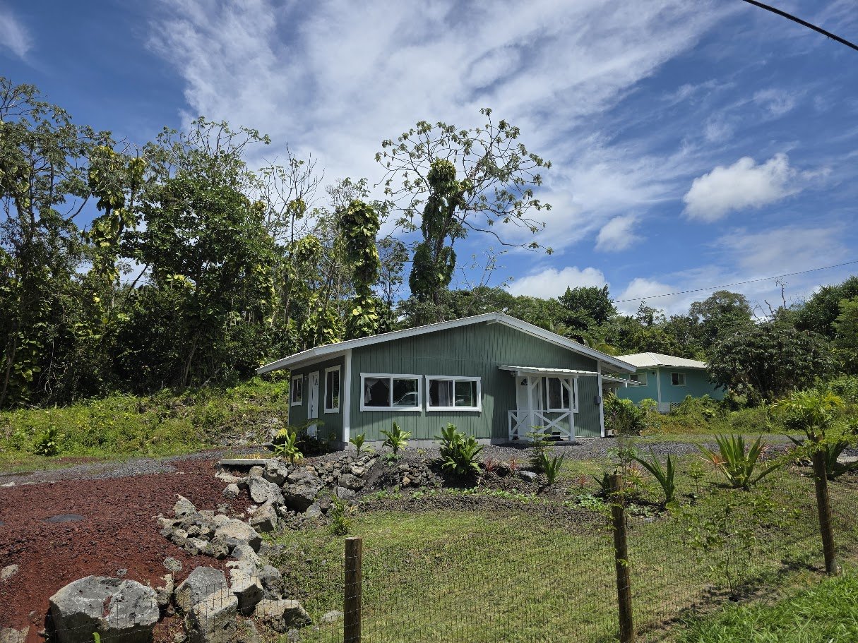 Located just minutes from Kahakai Park and Government Beach Road, this residence has wonderful walking and ocean views. This newly built 1 bedroom home has sustainable living with metered water and a large array of solar panels. The house contains high speed internet with Spectrum. It sits on a corner lot with two gated driveways to accommodate any kind of vehicle. It also had a newly installed mailbox. Enjoy the property with premium 18in tile flooring and a high gloss tile walk-in shower. The home is equipped with all necessary appliances, including washer and dryer, propane stove and a propane dryer. It also has a tankless water heater. Look up and see the tounge grove naught pine ceiling coated with teal oil. Enjoy outdoor living in Hawaii with a large patio with utility sink and a yard that has been tastefully landscaped with a variety of fruits and vegetables. This house is just waiting for the right buyer to make it the home of their dreams.