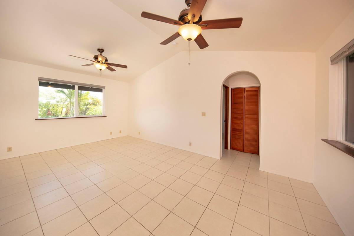 This 3 bedroom, 2 bath home with 1,192 square feet of living area sits perched above the surrounding area on 9,100 square feet of land. You'll never miss the cool breezes this house catches due to it's position above the roads and surrounding vegetation.Tile floor runs throughout the house. A spacious open floorplan connects the living room with the kitchen and the hallway leading to two of the bedrooms. A full bathroom lies between the two bedrooms connected by the hallway. The kitchen includes an electric stovetop/oven, dishwasher & refrigerator. The laundry room, complete with washer, dryer and basin, sits between the kitchen and the garage. The entrance to the master bedroom is on the opposite side of the living room giving plenty of distance from the other rooms. The master bedroom has a sizeable walk-in closet, along with a bathroom including a toilet, tub & shower.Gorgeous rock walls in front and back of property. Entire yard is immaculately landscaped. Get ready to grill on your lava rock BBQ while enjoying the sea breeze and ocean view in the back yard.A covered lanai in the front of the house offers a place to relax while being protected from the elements. Lush palms line the rock wall in the front yard, providing a bit of privacy from the quiet cul-de-sac. Access to the driveway is protected by a beautiful automatic gate.