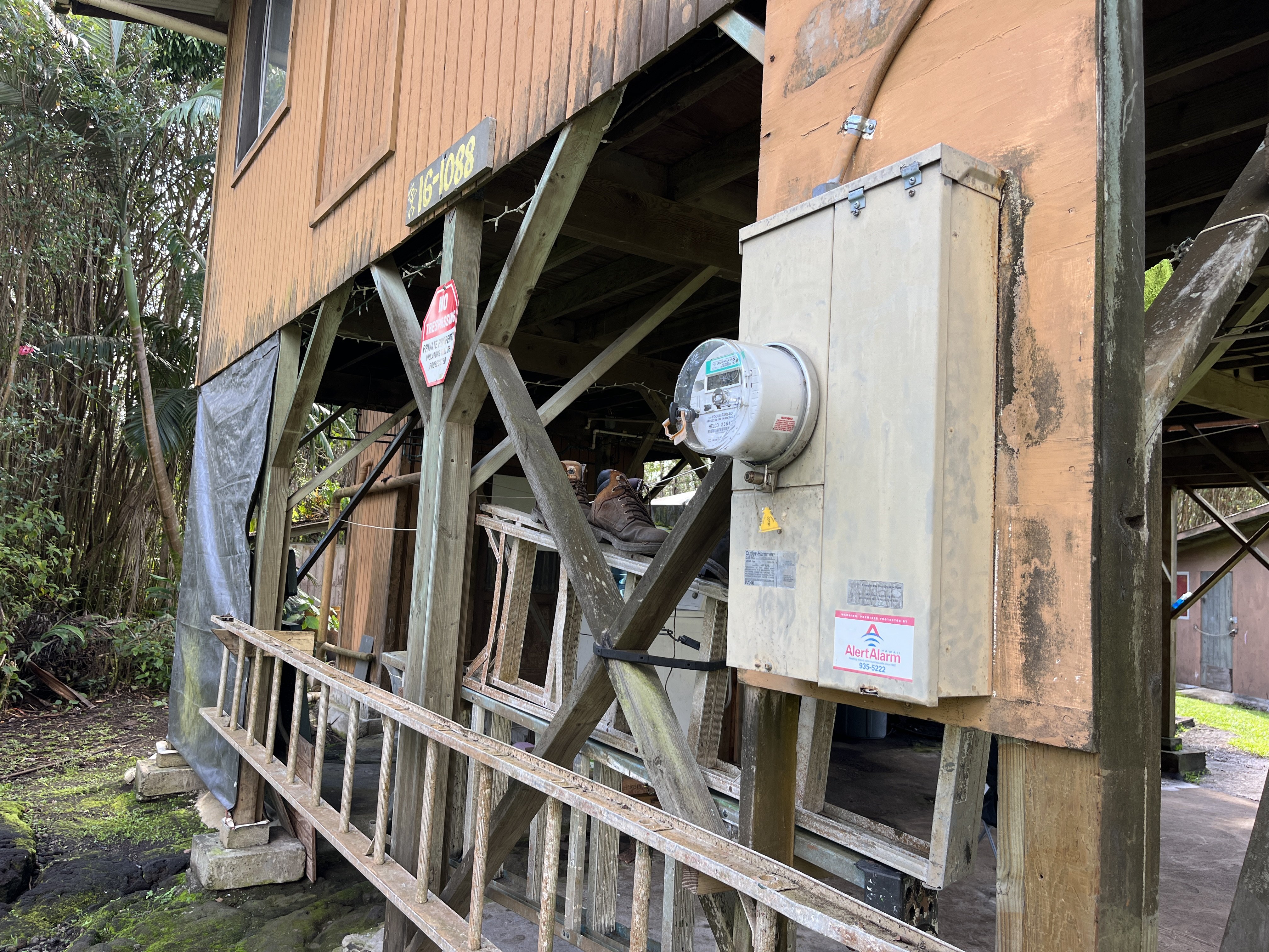 Discover the potential of this cozy 1-bedroom, 1-bath cabin located near the front of Hawaiian Acres, offering convenient access and some of the subdivision’s best weather for growing fruit trees or simply enjoying laid-back island living. Set on three lush acres, this property offers privacy, space, and a beautiful canvas to create your ideal Big Island retreat. The 344 sq ft open-concept upper level combining bedroom and living area is ready for flooring and drywall for a fresh finish.Other Home Details *Full bathroom with flushing toilet, tub, and shower *Kitchen currently located on the deck—bring it inside or enclose the deck with screens or windows to expand indoor living space *Grid power connected and internet available making it easy to work remotely or stream entertainment. *Cool, shaded area beneath the home, ideal for relaxing on warm days *Laundry room with washer hookup located under the home *Level parking area beside the home, ready for your own carport canopyProperty Highlights *Three acres of lush Ohia forest, offering privacy and natural beauty *Home is set back from the road for privacy and security *Trails extending from the grassy backyard into the surrounding forest *Two detached storage sheds, including one large enough to convert into a workshop or studio *Permitted as an accessory dwelling, with a permitted workshop, giving you a strong foundation for future improvements *Excellent location just one road off paved Moho near the front of the subdivision *Great climate for orchards, gardening, and outdoor living *Endless potential to upgrade, expand, and personalize *Ideal for anyone seeking a fixer-upper with solid structure and room to grow***Completed efficiency dwelling permit opens possibilities for future building/expansion. Cash sale onlyPlease visit HawaiianAcres.org for more info on Hawaiian Acres Tenant occupied; allow 48 hr notice for showings