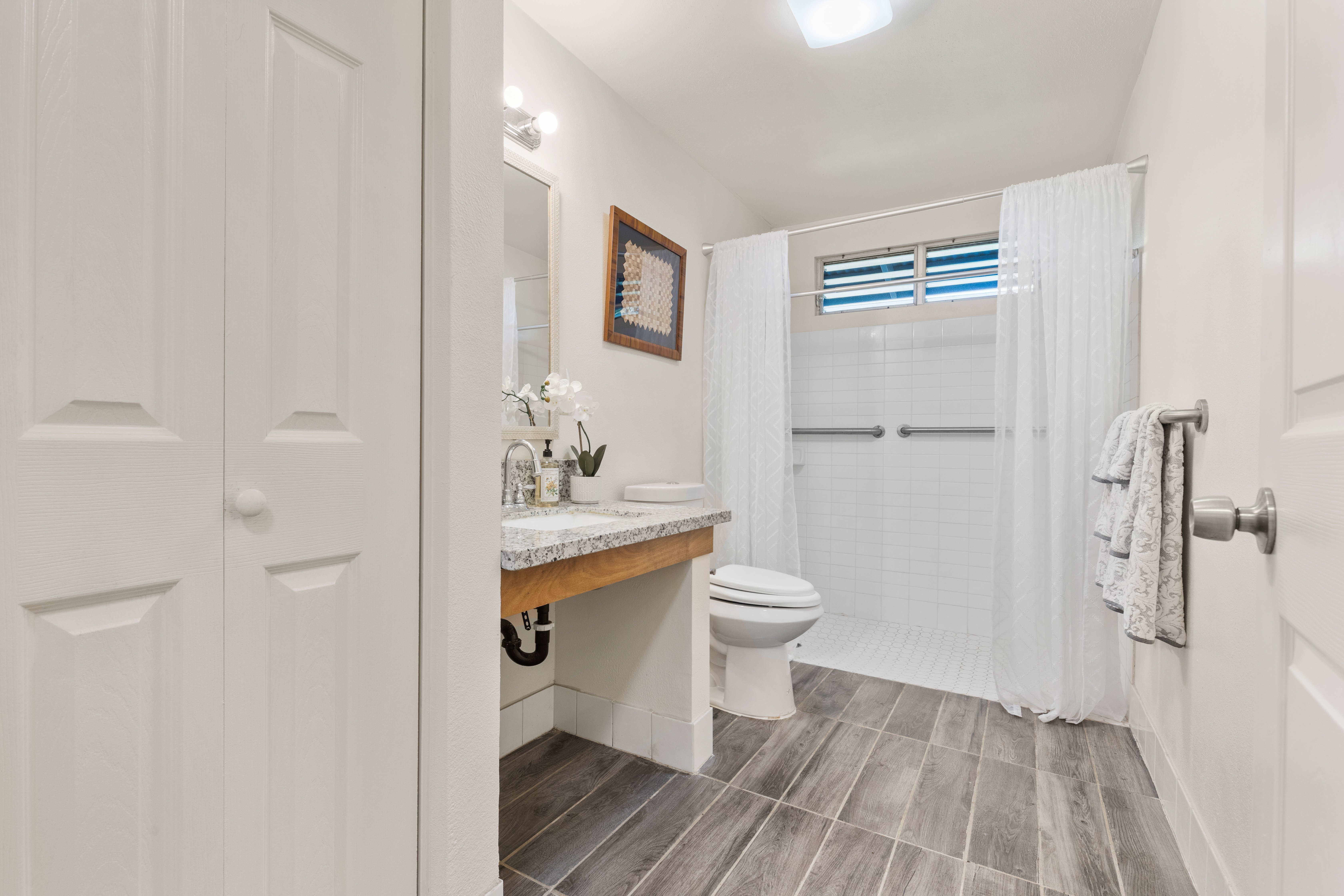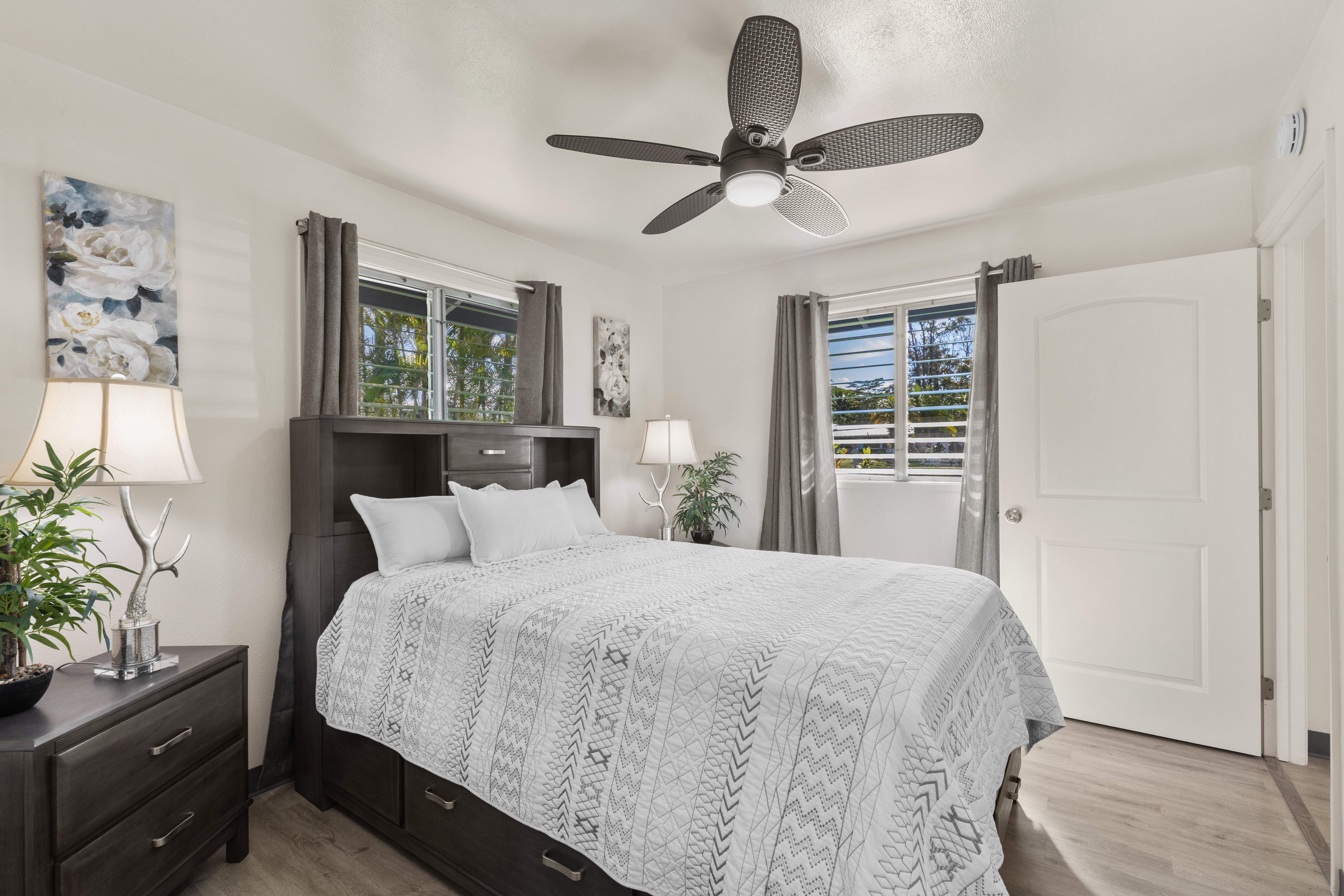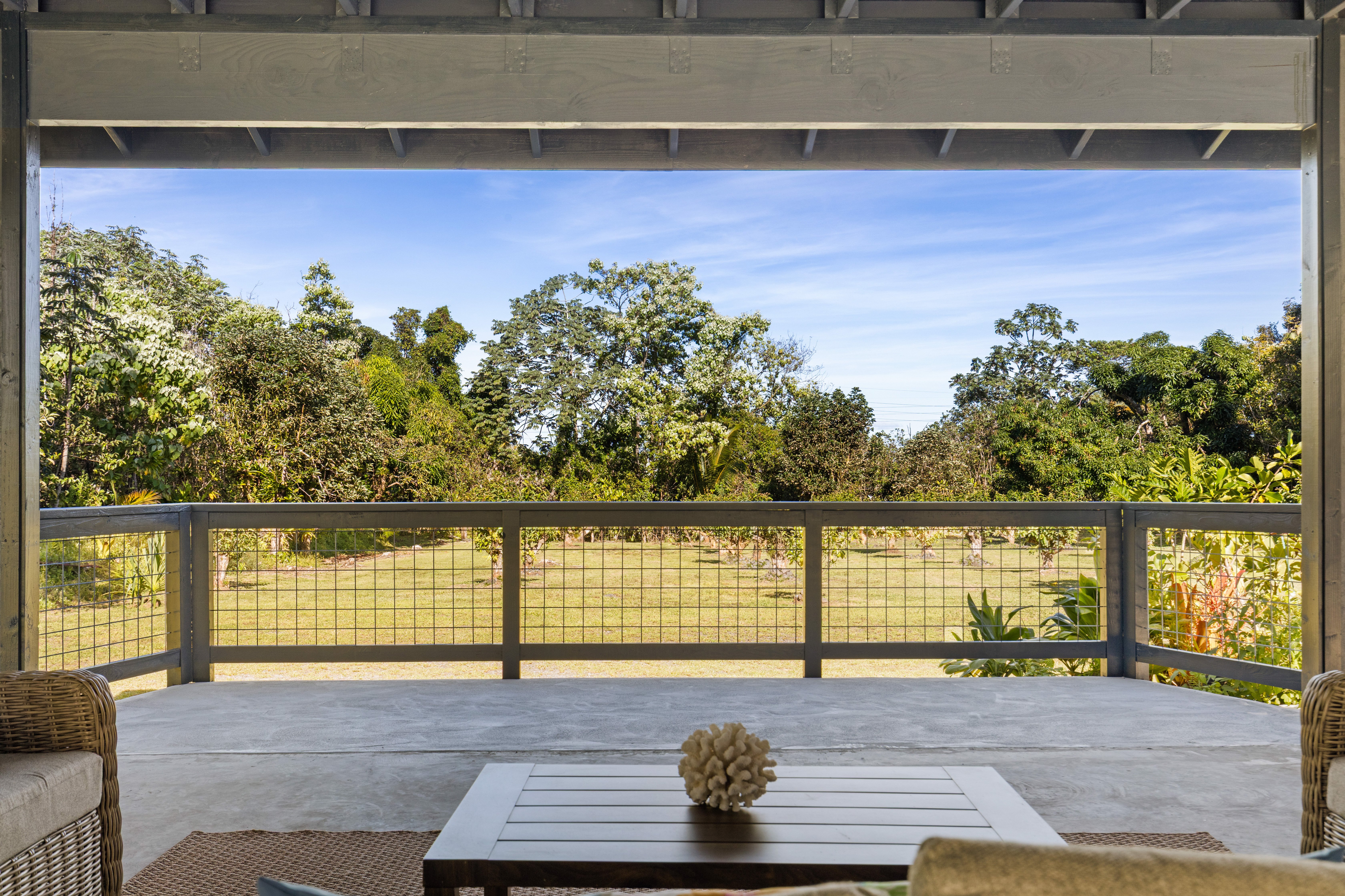Experience the true essence of island living in this freshly renewed and fully fenced, ADA-friendly home, restored with deep aloha, pride, and intention into every detail. At the heart of the property is the stunning open-air Kau Hale—a cherished gathering space designed for paʻina, weaving workshops, quiet morning coffee, and cultural connection. Thoughtfully built with a center drain for easy cleanup and positioned to overlook a myriad of trees, this pavilion feels like an outdoor living room embraced by nature.Set on a beautifully cleared acre, the property itself feels like a peaceful sanctuary—surrounded by mature fruit trees, native plants, cooling breezes, and the comforting scent of the forest after rain.The home’s thoughtful design offers multiple entry points, creating a sense of flow, privacy, and effortless indoor-outdoor living. One entry opens to a private bedroom, another to the second living area, one welcomes you into the front kitchen and living space, and another leads into the dining room that adjoins the second living area—perfect for family living or hosting gatherings of all sizes.Inside, the home has been refreshed with modern upgrades, including new flooring, updated fixtures, and improved spacing for smooth movement throughout. Wide doorways and accessible bathroom features add comfort and ease, while warm natural light fills every room, highlighting subtle Hawaiian touches and inviting relaxation.A spacious extra room could be your fourth bedroom complete with its own bathroom, or tailor this generous space into a guest suite, personal gym, studio, or workshop. Its versatility adds sophistication and expands the homes overall functionality.Move-in ready and rich with heart, this unique home offers accessibility, serenity, and the perfect setting to grow roots. A lovingly renovated island haven ready to welcome its next ʻohana.